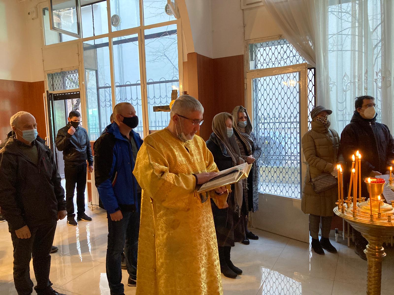 По прочтении Священного Писания, после сугубой ектении, иереей Святослав вознес молитву о прекращении распространения пагубного поветрия коронавирусной инфекции. Перед выносом Святых Даров к прихожанам обратился настоятель прихода иерей Димитрий, поздравив молящихся с Торжеством Православия. Отец Димитрий поведал об истории возникновения празднуемого церковного торжества.