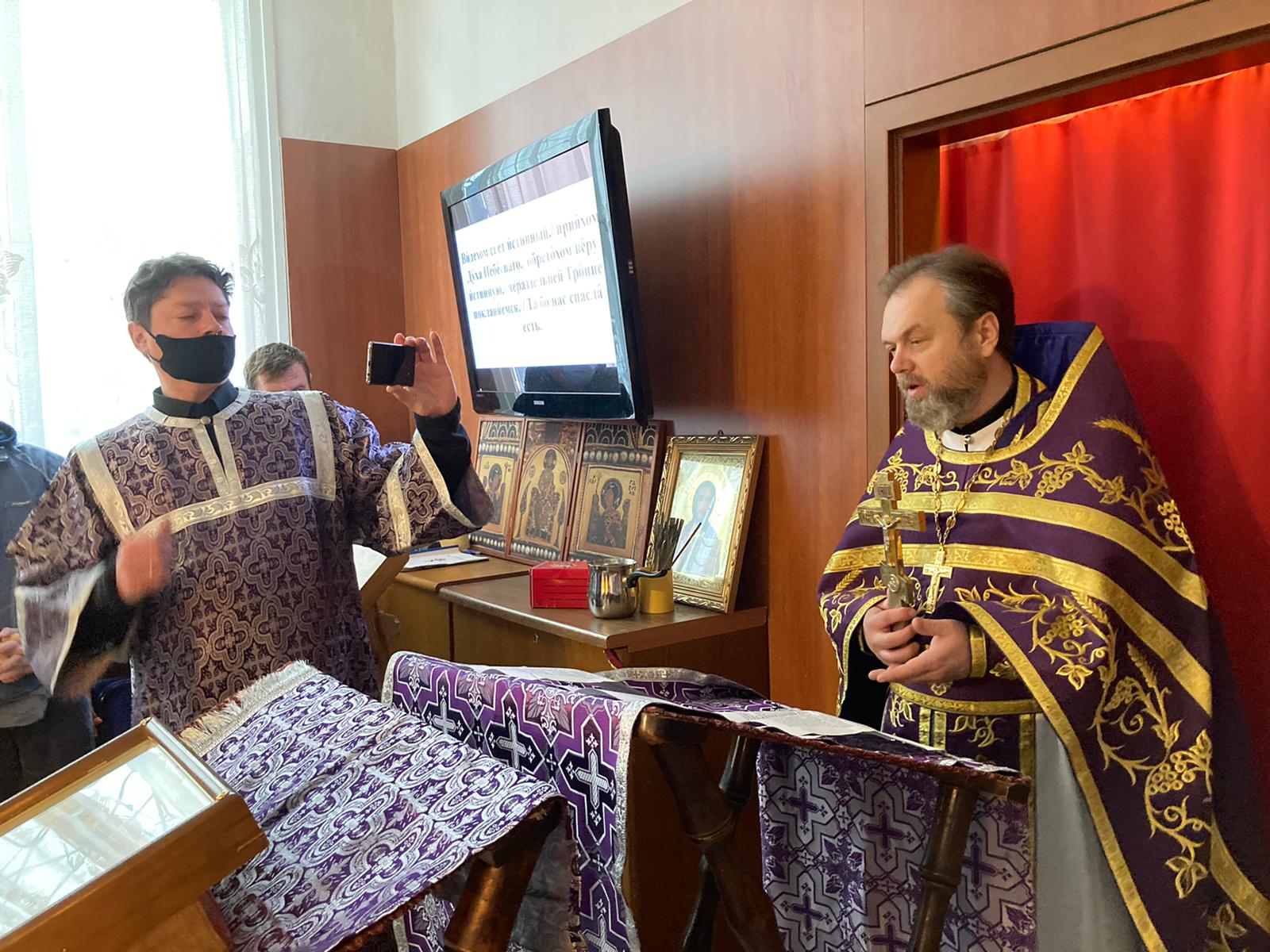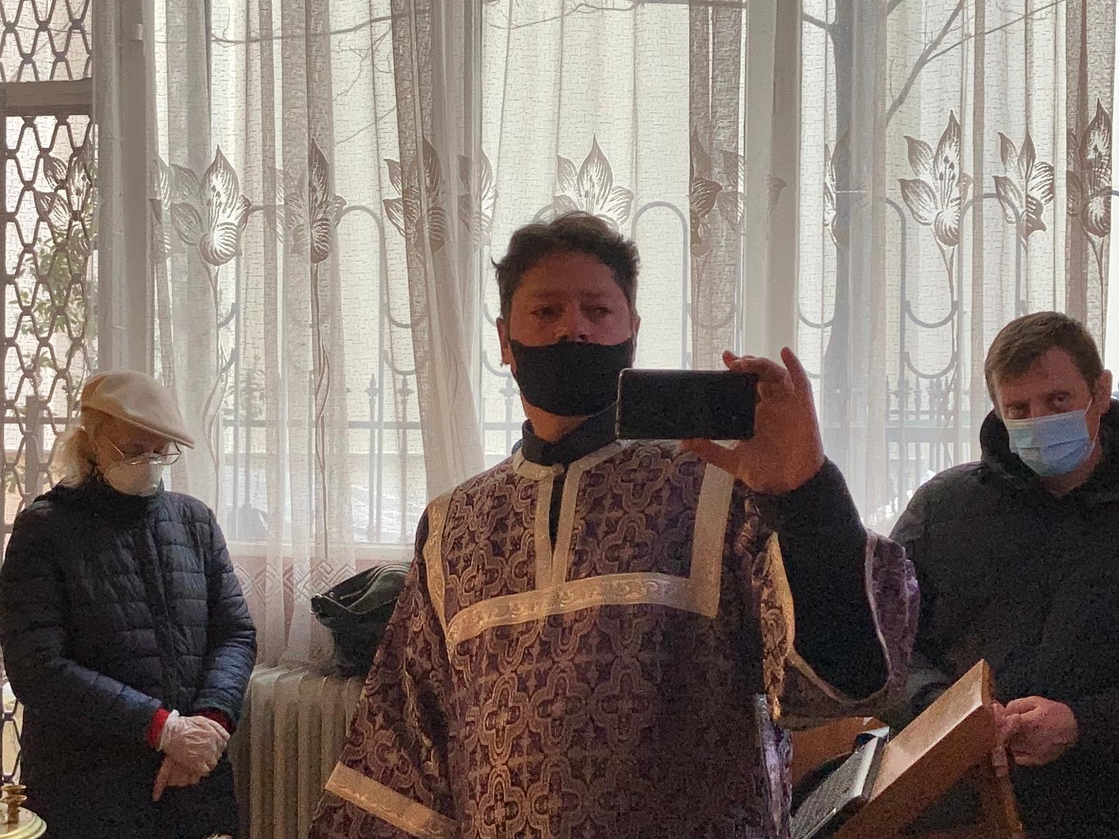 Богослужение продолжилось молитвой иерея Святослава о прекращении распространения пагубного поветрия коронавирусной инфекции.