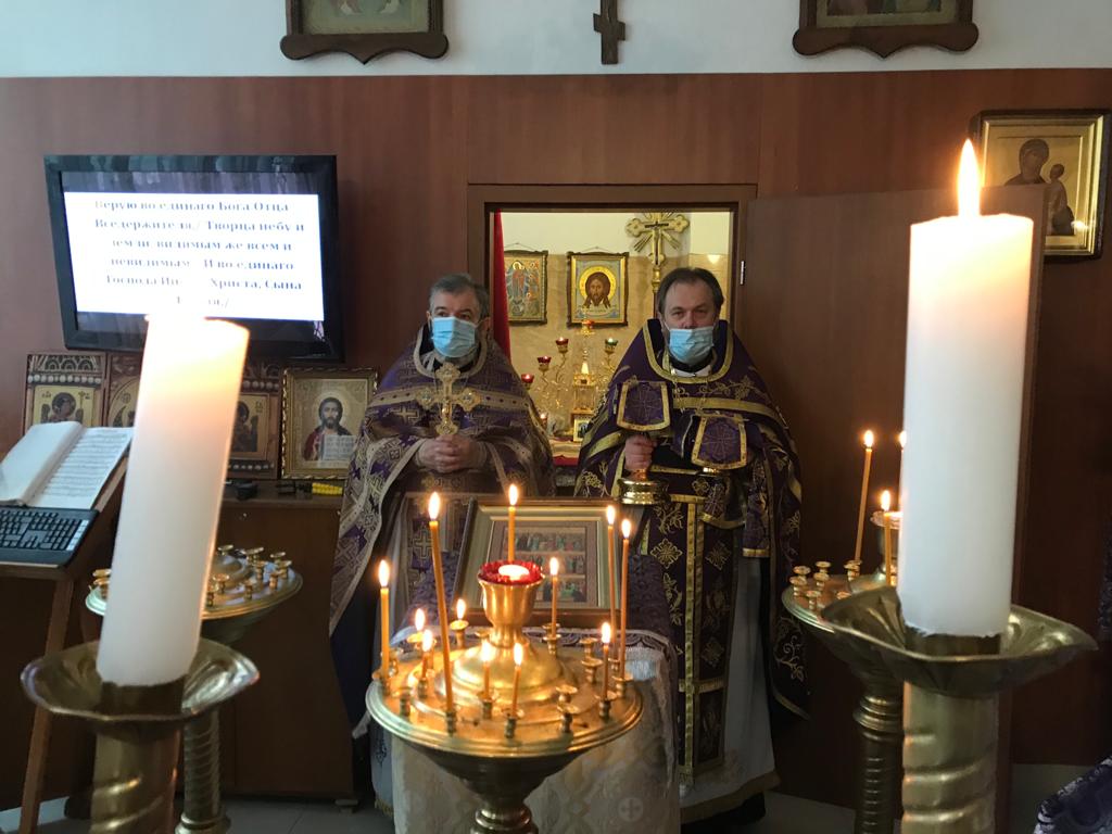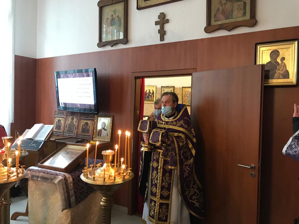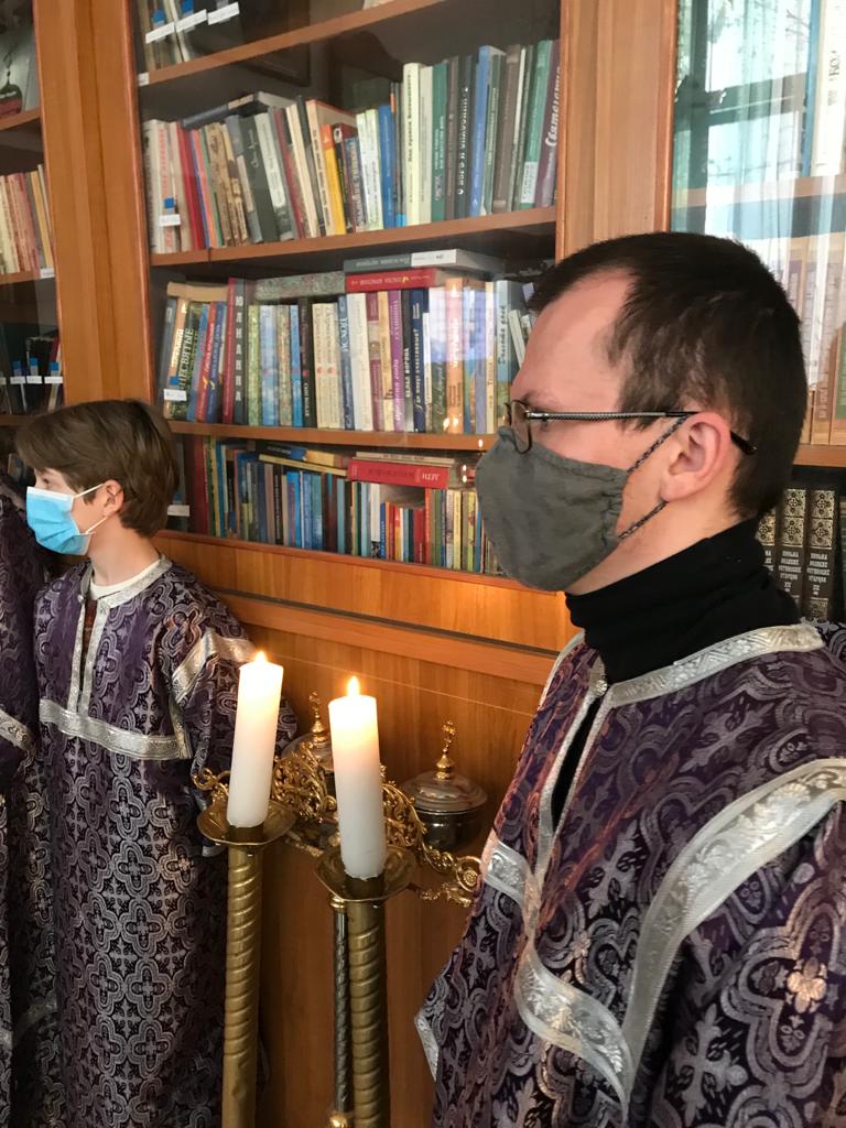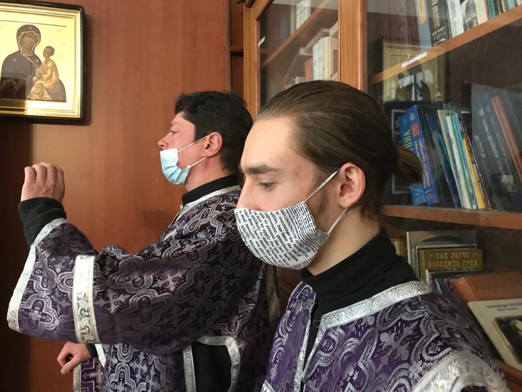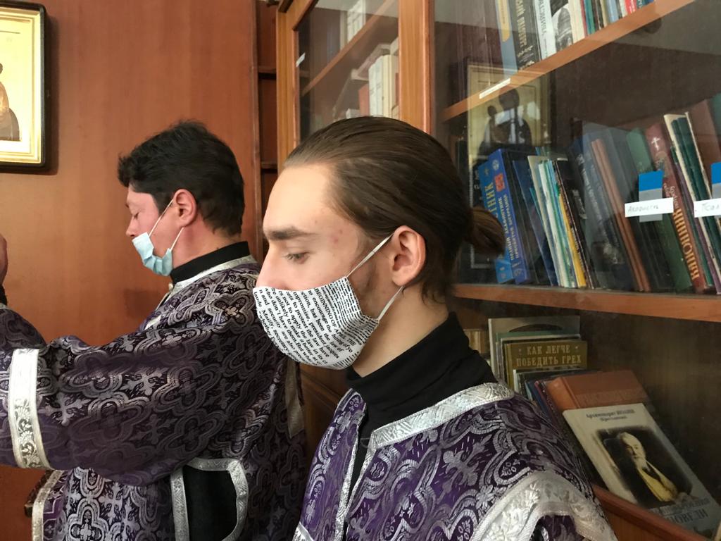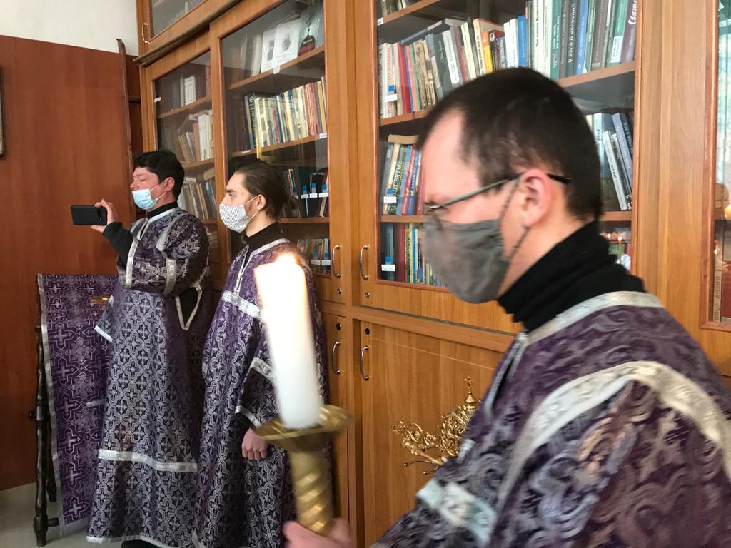 В продолжение богослужения отец Святослав совершил сугубую ектенью, после которой он вознес молитву о прекращении распространения коронавирусной инфекции.