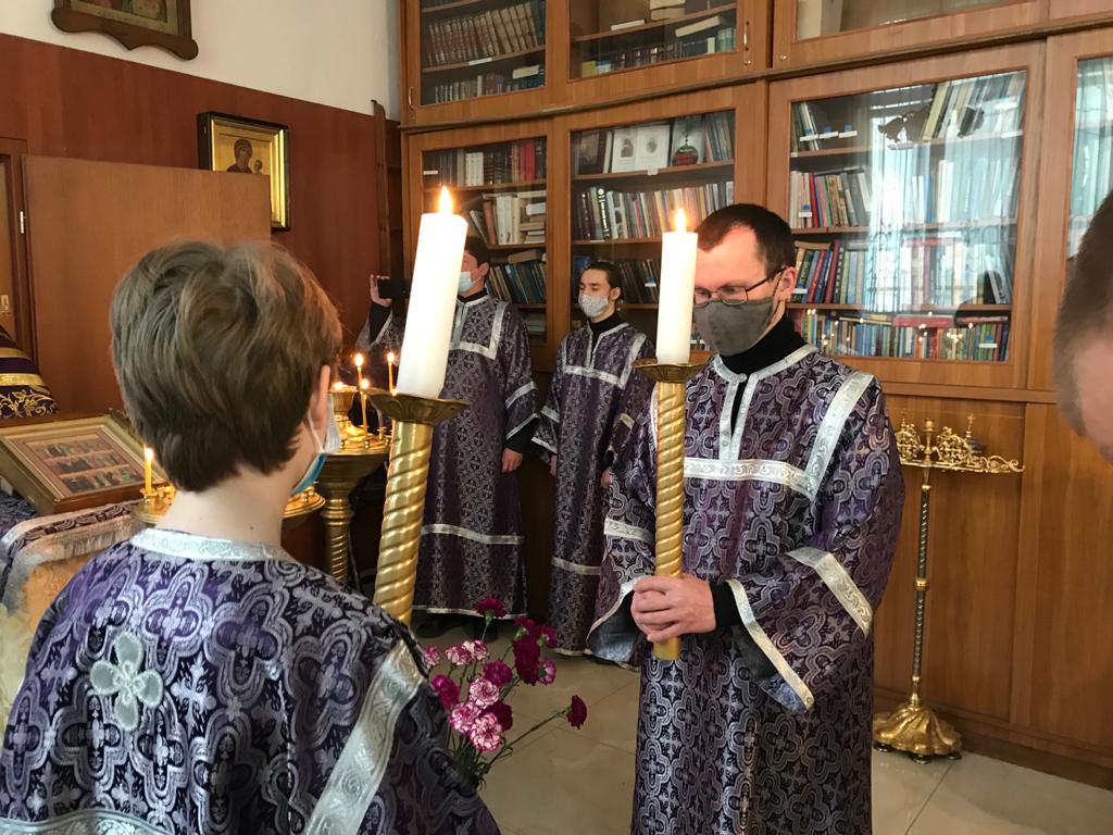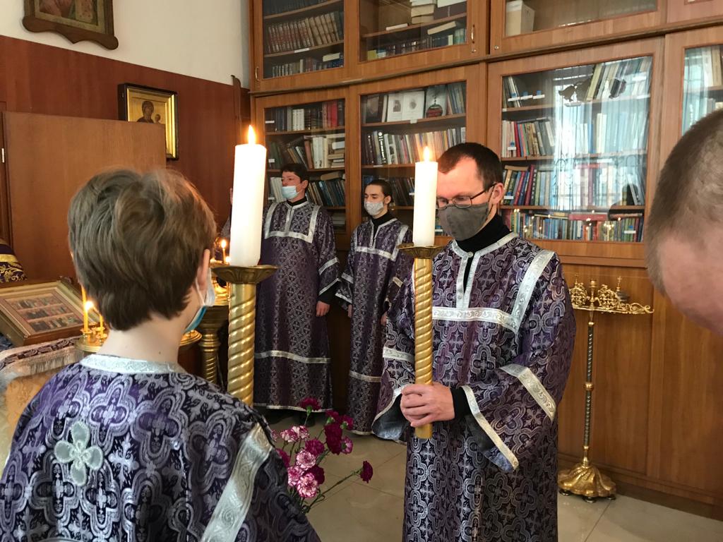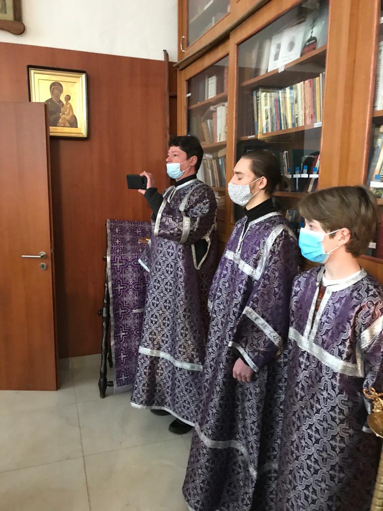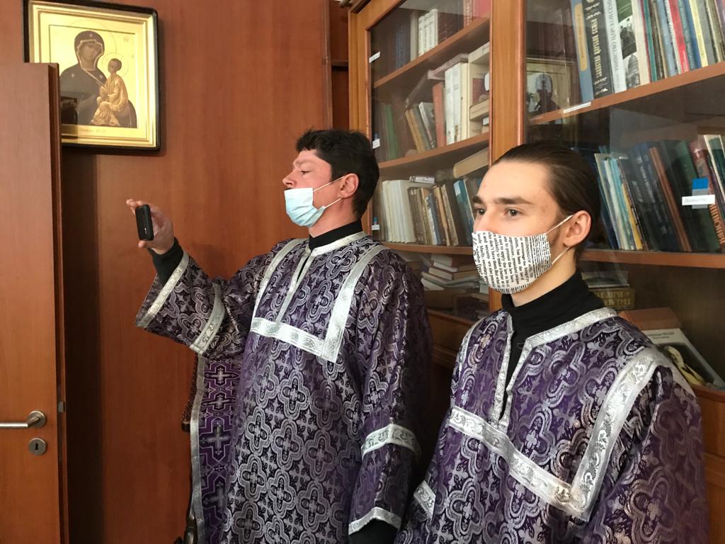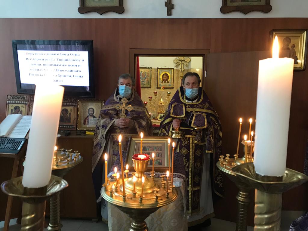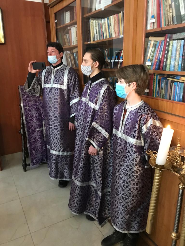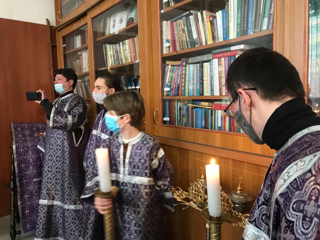 В продолжение богослужения отец Святослав совершил сугубую ектенью, после которой он вознес молитву о прекращении распространения коронавирусной инфекции.