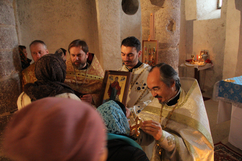 По окончании Литургии протоиерей Николай Ким сказал краткое слово об уникальном духовном значении Тихани, о чем говорит и само название этого места, напоминающее нам о православных подвижниках-исихастах, почти тысячу лет назад основавших эту обитель в поисках тишины и аскетического безмолвия. Мы называем Тихань — «Венгерский Афон», в ознаменование чего все прихожане после Литургии приложились к иконе Божией Матери «Афонской» и получили помазание елеем от лампады, горящей пред великой чудотворной иконой Богородицы «Иверской», который протоиерей Николай привез из недавнего паломничества на святую гору Афон.