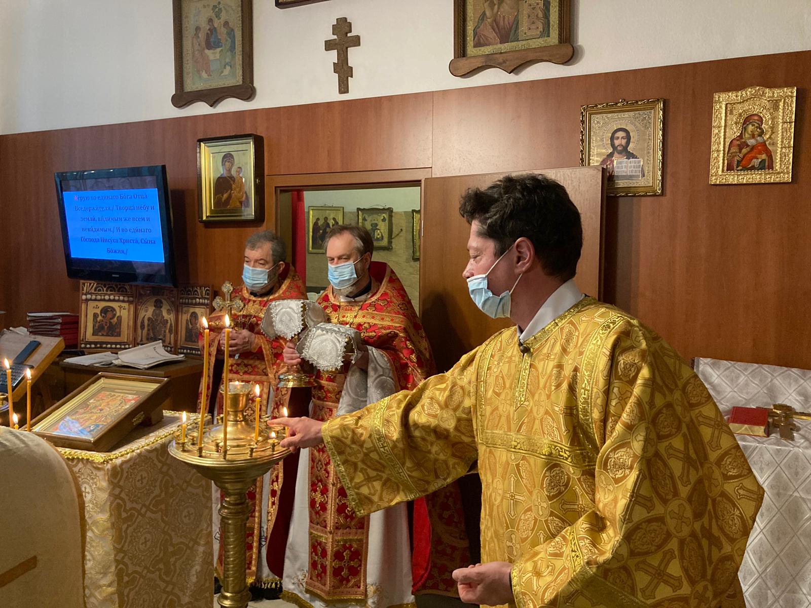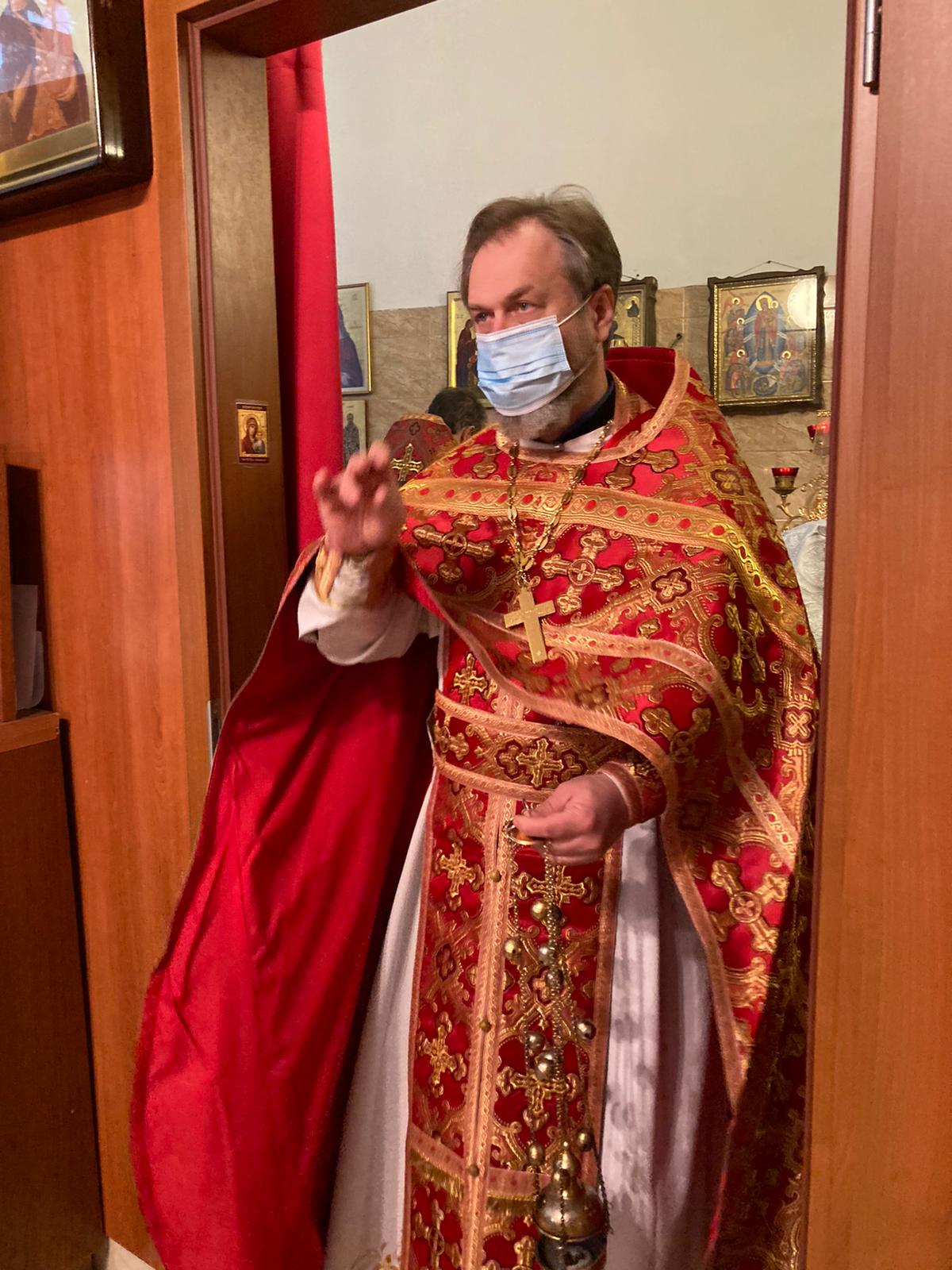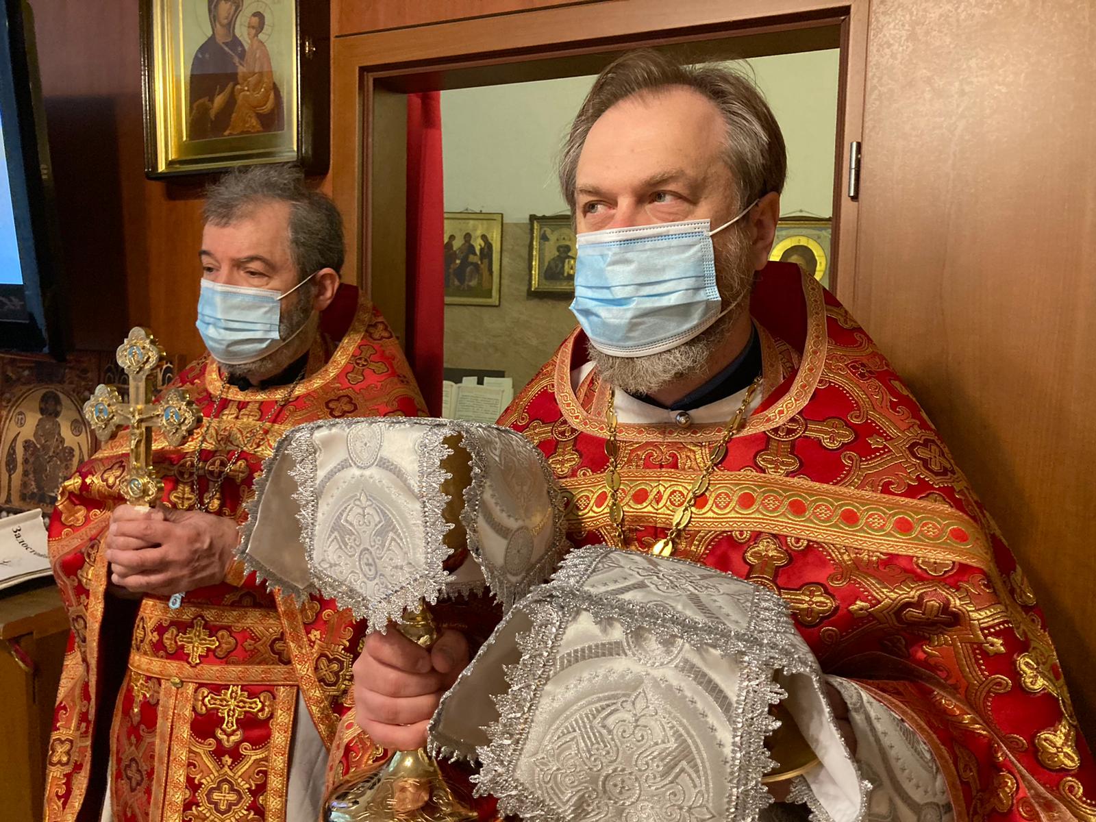 По прочтении Священного Писания, богослужение продолжилось прошениями сугубой ектеньи, после которой иерей Святослав вознес свою молитву о прекращении пагубного поветрия распространяющейся коронавирусной инфекции.