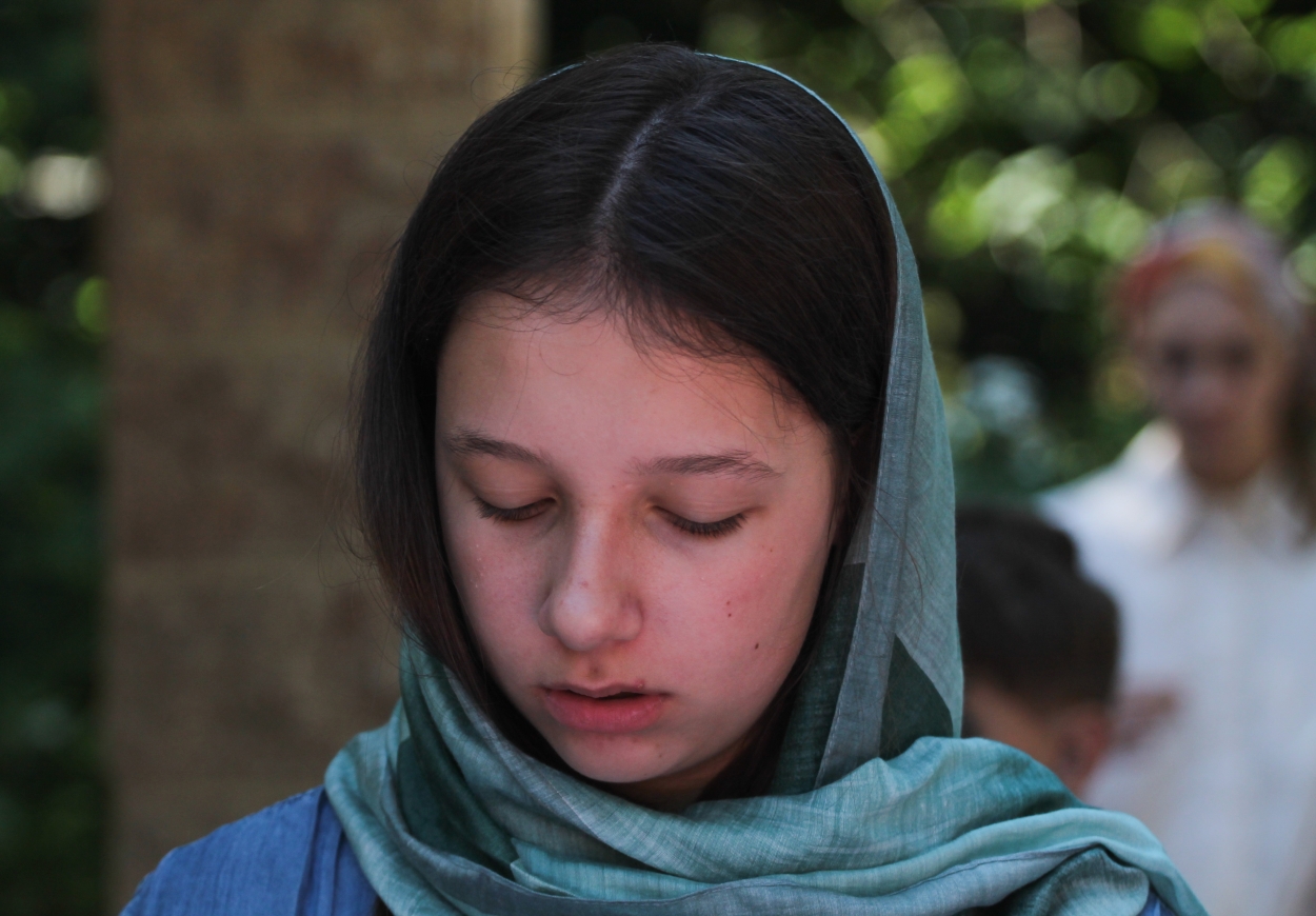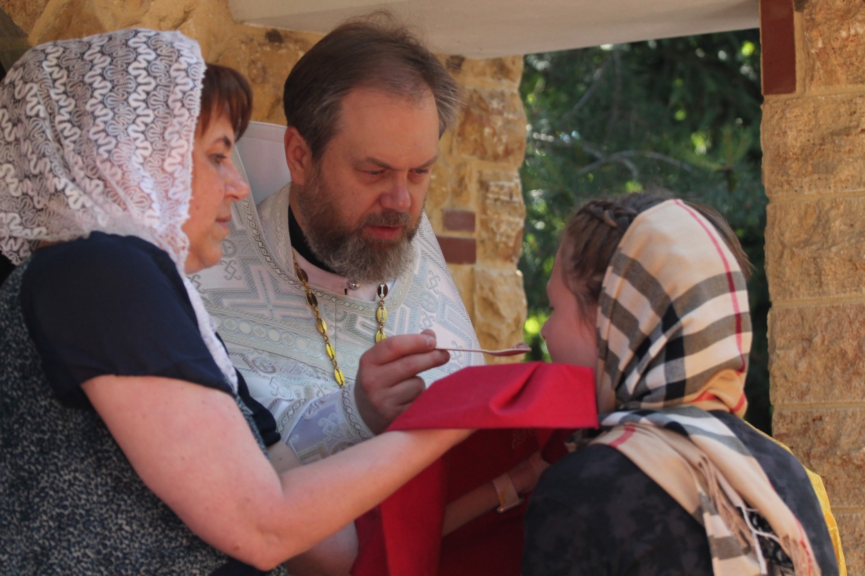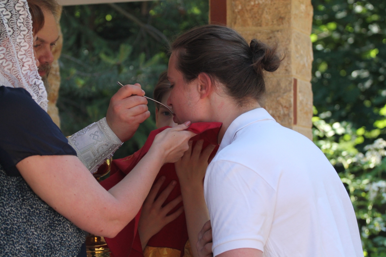 В программу лагеря, помимо утренних, вечерних молитв и духовных бесед, входит также Божественная Литургия. В этом году она прошла в субботу, 12 июня. Накануне, 11 июня, после вечерних молитв, руководитель лагеря Екатерина Варади рассказала ребятам о сути Таинства Причастия, о том, почему причащаться стоит как можно чаще, о том, сколь великую помощь оказывают Тело и Кровь Господня всем верующим. Конечно, ученики церковной школы все это уже знают, но в этом году в лагере были 10 ребят, вообще не ходивших в церковную школу и впервые познакомившихся с ее коллективом только в лагере. В процессе рассказа Екатериной Варади об Таинстве Причастия ребятам было сказано, что готов ли человек к причастию или нет, каждый решает сам для себя, и тащить его к Чаше насильно никто не будет.