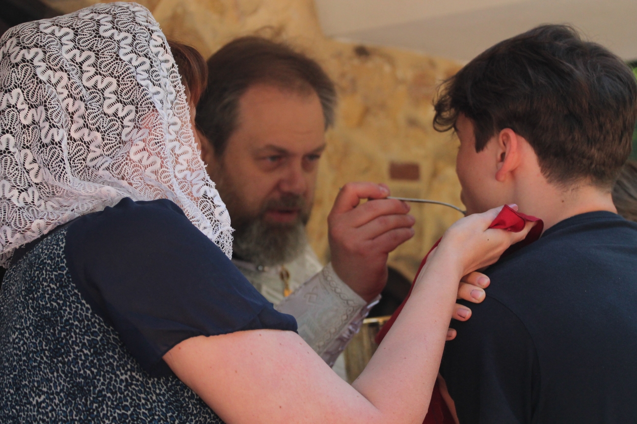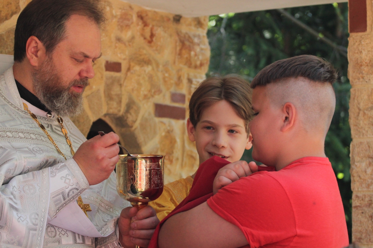 Очень важно, сказал настоятель нашего прихода иерей Димитрий, относиться друг к другу с любовью, с терпением, прощать и помогать друг другу, быть дружными. Среди ребят был мальчик по имени Бенджамин, для которого этот день оказался даже еще более значимым. Именно в этот день ему исполнилось 8 лет, и он причастился впервые. После Божественной литургии отец Димитрий поздравил его, и всем лагерем от души все спели ему «Многая и благая лета». Божественная литургия подошла к концу, но впереди у лагеря еще много дней, интересных открытий и приключений.