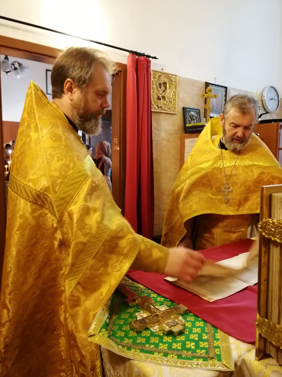 Перед причащением верующих иерей Димитрий произнес проповедь по воскресному Евангельскому чтению. А в завершение воскресного богослужения он поблагодарил собравшихся за общую молитву, поздравил причастников с принятием Святых Христовых Таин, именинников с днем Ангела и преподал всем свое пастырское благословение.