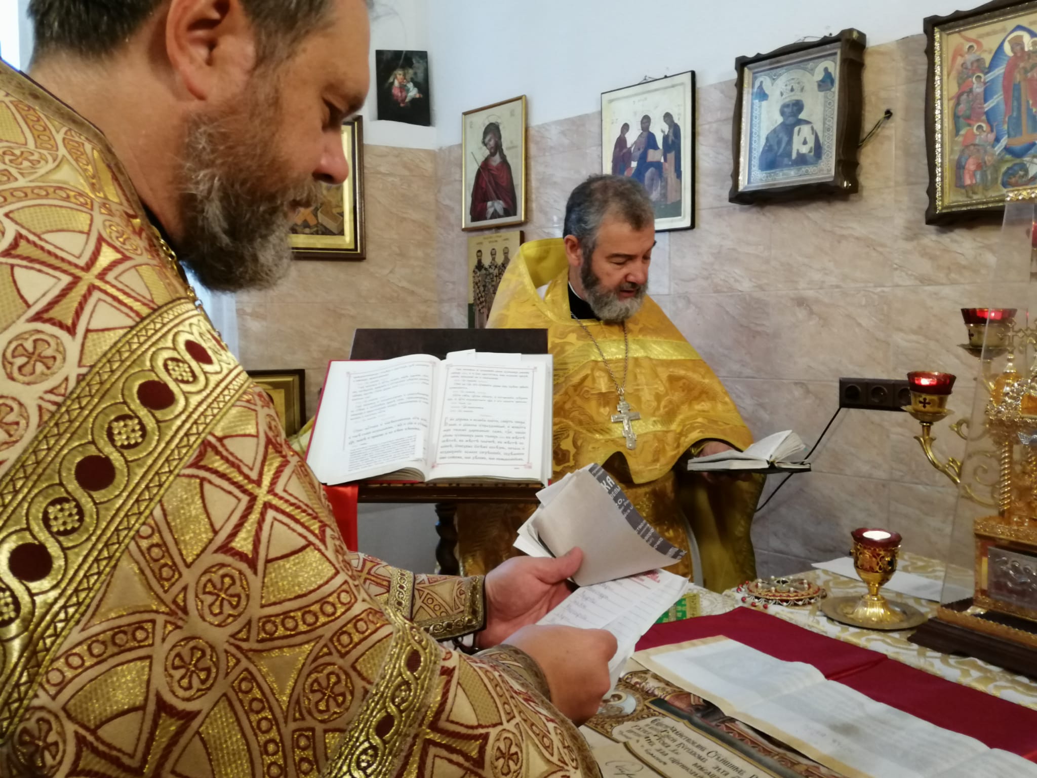 В продолжение Божественной литургии, после сугубой ектеньи, отец Святослав вознес молитву о прекращении распространения губительного поветрия смертоносной инфекции. Перед причастием настоятель прихода иерей Димитрий обратился к прихожанам с проповедью, содержанием которой стало прочитанное евангельское повествование о расслабленном. Он указал на то, что искренняя вера способствует исцелению телесных недугов, причем вера одного человека может помочь в исцелении другого, как это было показано в евангельском отрывке: исцеляющая Божественная благодать пролилась на страждущего именно через веру людей, принесших его к ногам Спасителя.