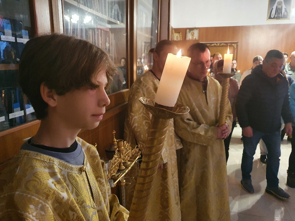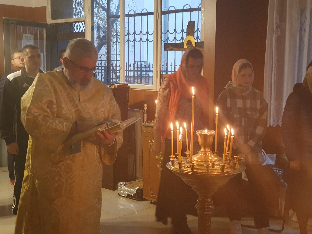 В читаемом иереем Димитрием Евангелии содержался рассказ апостола Луки о чудесной ловле рыб апостолами, главной причиной совершения которой стало их послушание своему Божественному Учителю, неутомимая деятельность рыбаков даже при неудачных последствиях долгого ночного труда. По прочтении Священного Писания, после сугубой ектеньи, иерей Святослав вознес молитву о прекращении распространения коронавирусной инфекции.