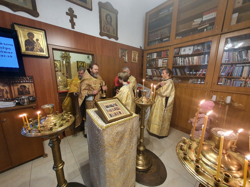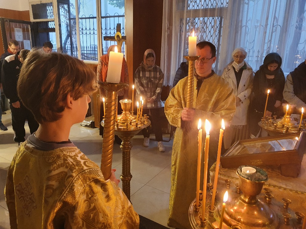 Ее возглавил настоятель прихода иерей Димитрий Корнилов. Настоятелю собора сослужил клирик нашего прихода, советник-помощник правящего архиерея иерей Святослав Булах. Молитвословия Божественной литургии совершили певчие приходского хора под управлением Евы Гволик.