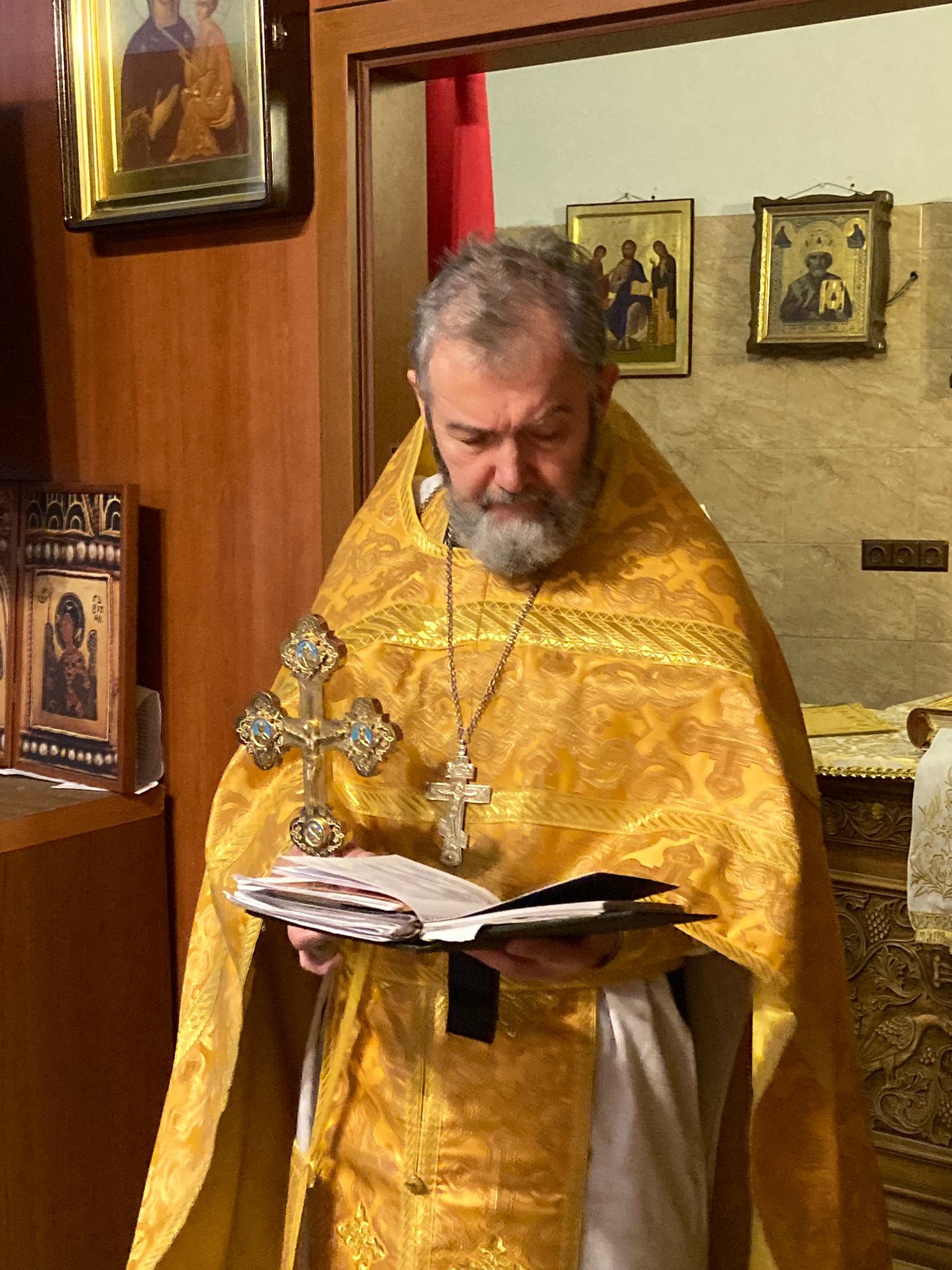 Ее совершил иерей Святослав Булах, советник-помощник правящего архиерея, священник нашего прихода. По окончании богослужения отец Святослав обратился к верующим с проповедью, в которой в том числе вспомнил подвиг святителя Тихона, Патриарха Всероссийского в непростое время, когда он взял на себя тяжелейший крест руководить внутрицерковной жизнью во времена больших общественно-политических перемен в России.