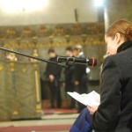 Читала и выступала в роли ведущей вечера — заслуженная артистка Венгрии Алеся Попова являющаяся так же прихожанкой Троицкого прихода. Чтение велось на венгерском языке. Этот вечер был призван познакомить людей с красотой православной музыки и духовной традиции.