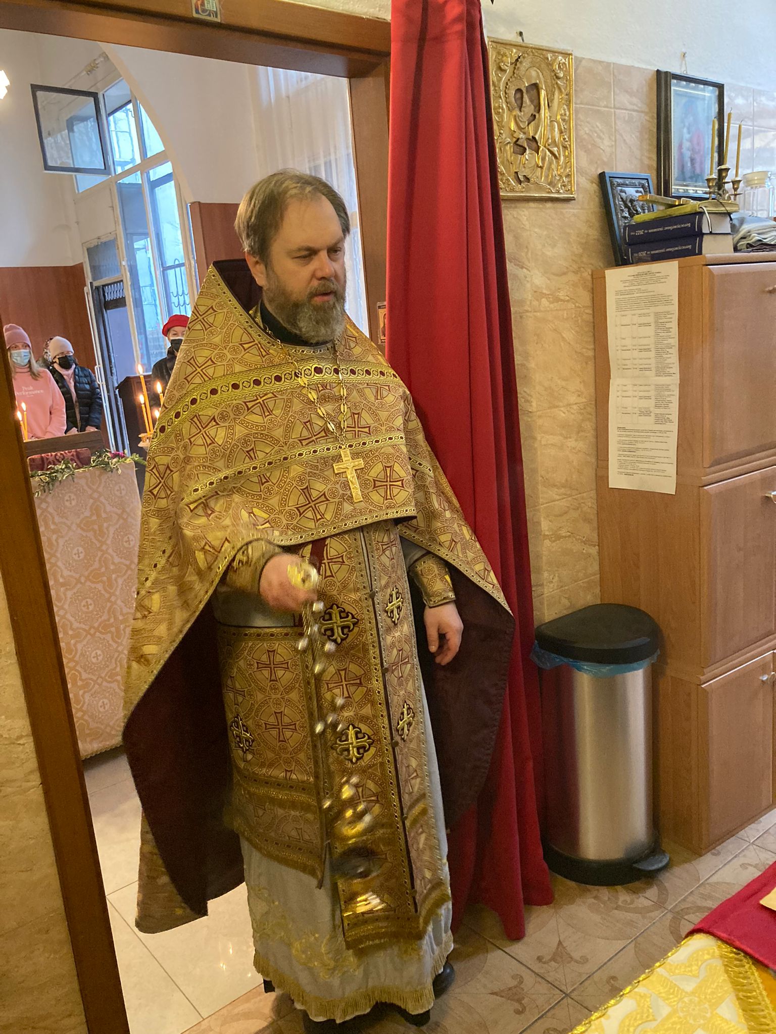 25 декабря 2021 года, в день памяти святителя Спиридона Тримифунтского, настоятель Свято-Троицкого прихода иерей Димитрий Корнилов совершил Божественную литургию.