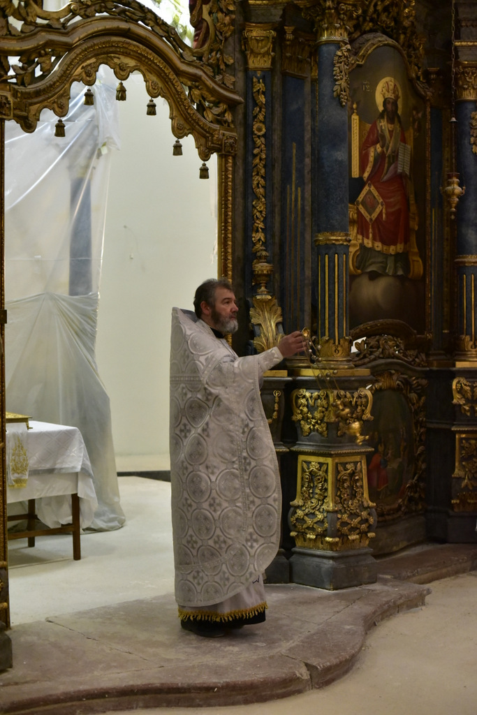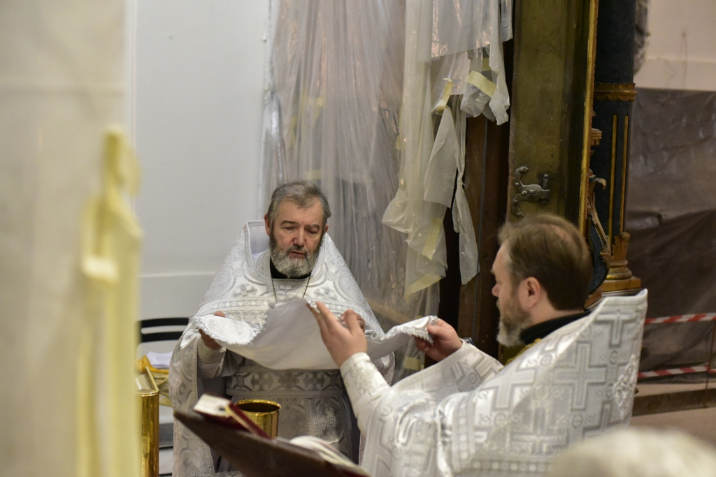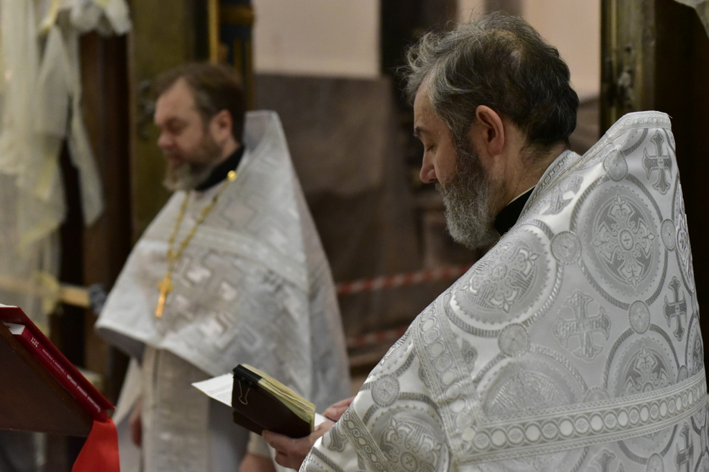 Вслед за вечерней была совершена Божественная литургия, о начале которой возвестил настоятель Свято-Троицкого прихода иерей Димитрий Корнилов.