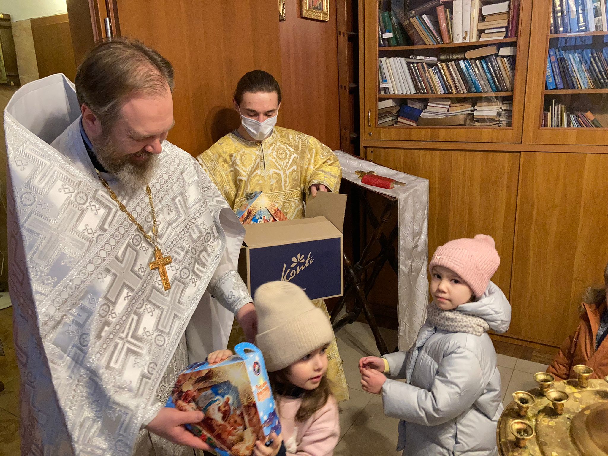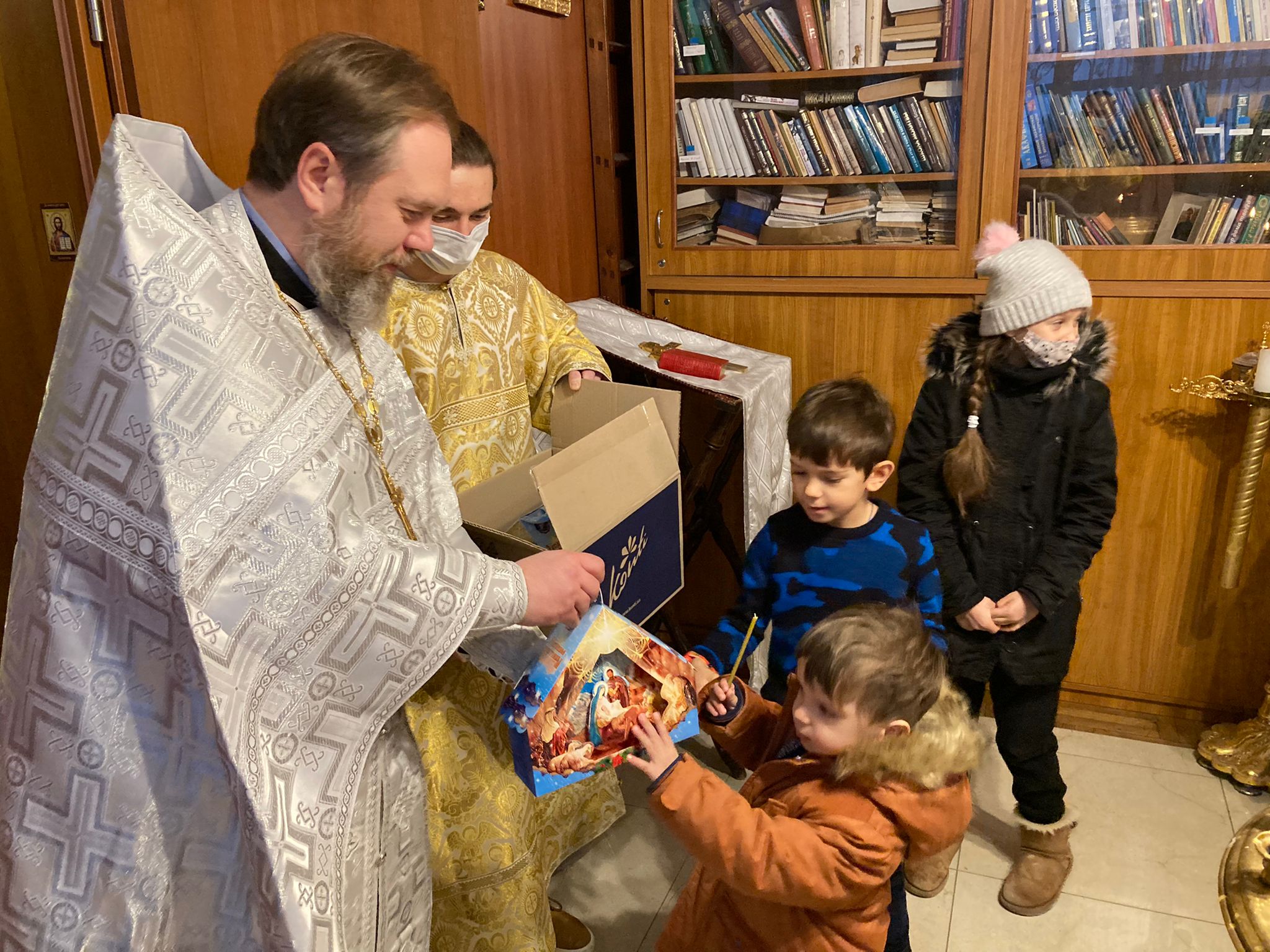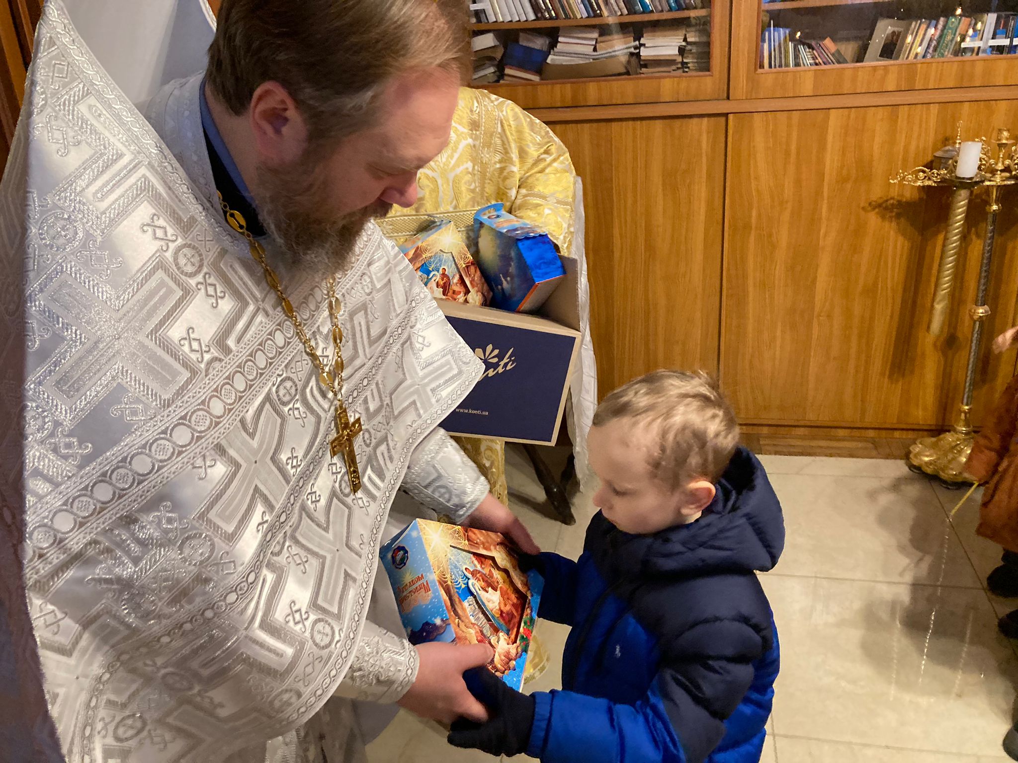 В завершение воскресной литургии настоятель Свято-Троицкого прихода вручил детям рождественские подарки, поблагодарил прихожан за совместную молитву, поздравил причастников с принятием Святых Христовых Тайн, именинников с днем Ангела и преподал всем свое священническое благословение.