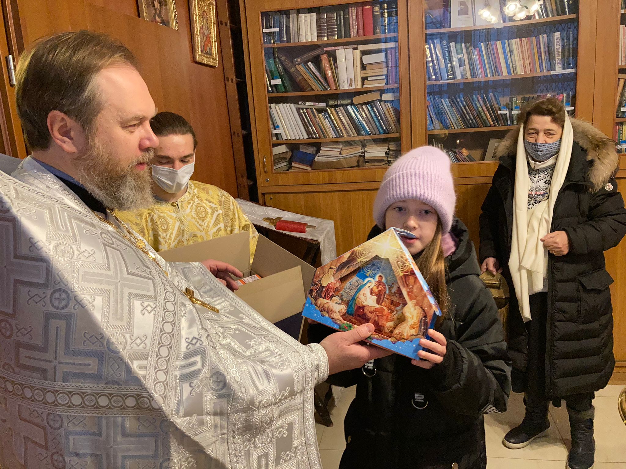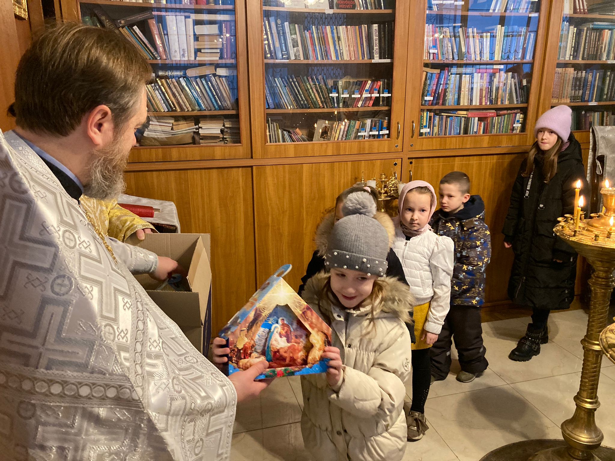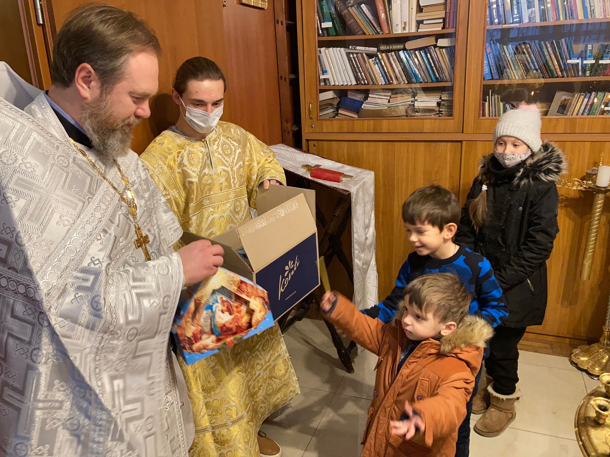В завершение воскресной литургии настоятель Свято-Троицкого прихода вручил детям рождественские подарки, поблагодарил прихожан за совместную молитву, поздравил причастников с принятием Святых Христовых Тайн, именинников с днем Ангела и преподал всем свое священническое благословение.