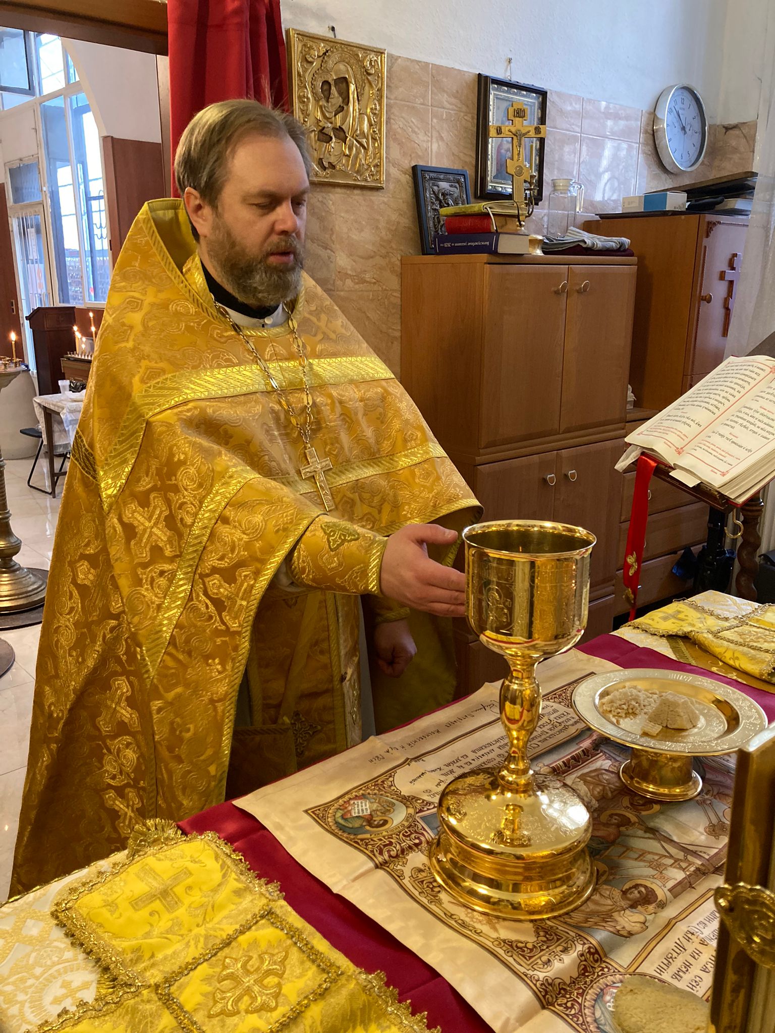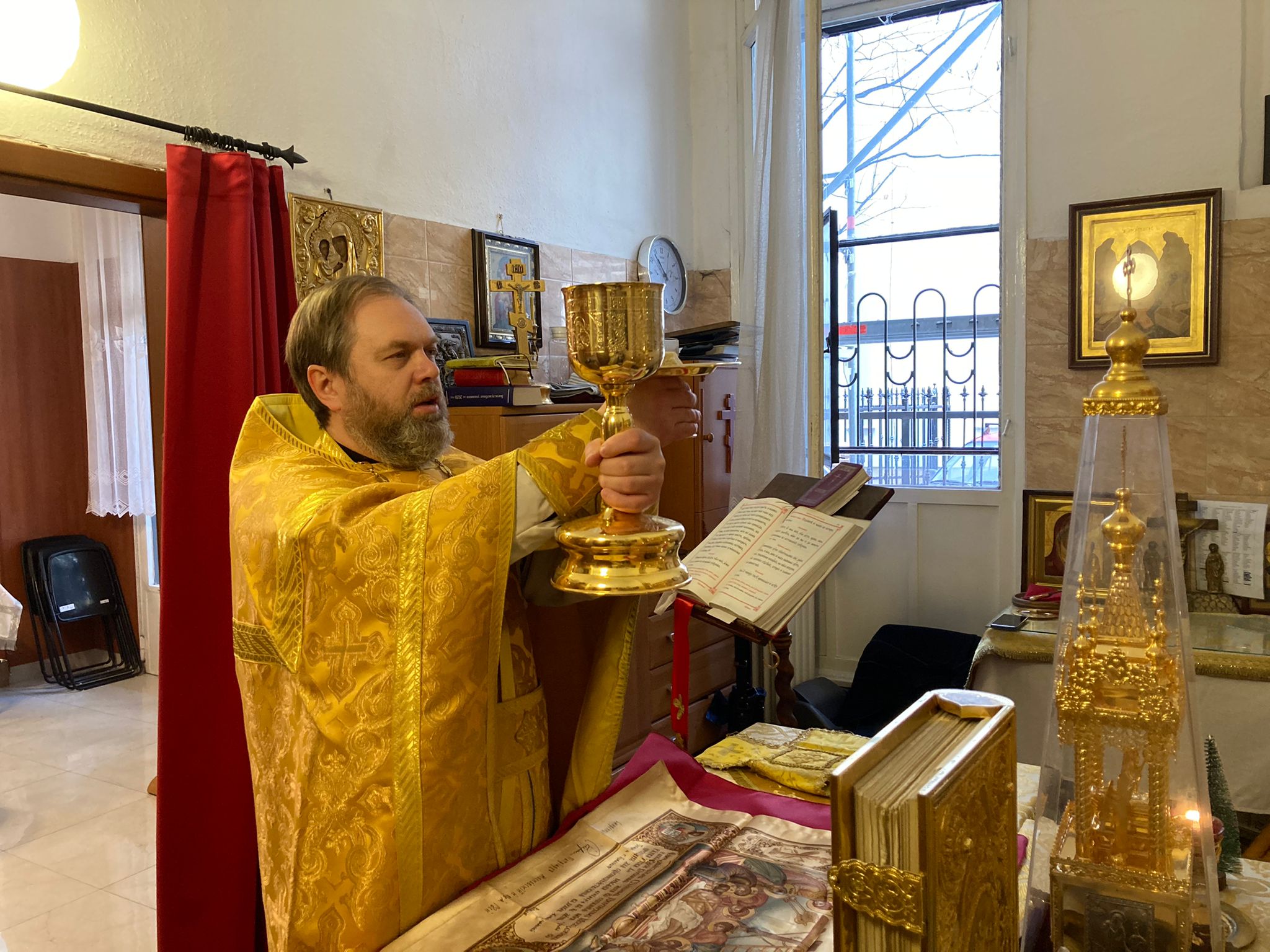 29 января 2022 года в Седмицу 32-ю по Пятидесятнице, состоялась Божественная литургия в Свято-Троицком приходе г. Будапешта. Ее совершил настоятель прихода иерей Димитрий Корнилов.