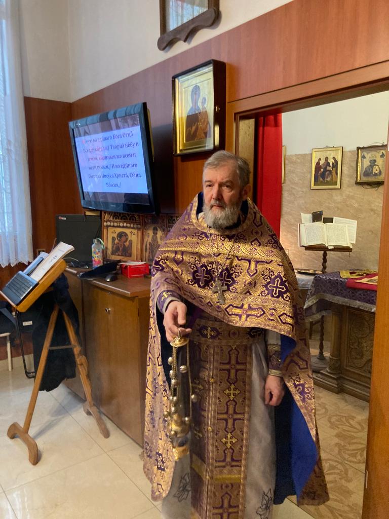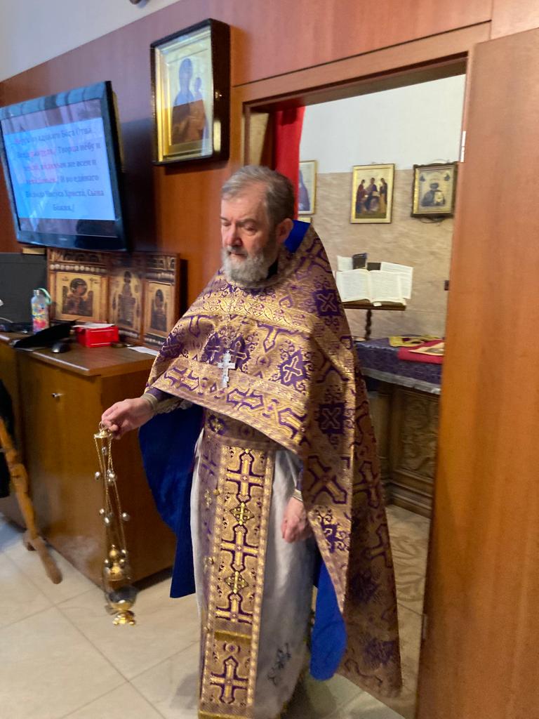 По окончании заупокойного последования, во время которого все прихожане помолились за перешедших в иной мир христиан, иерей Святослав произнес проповедь. Отец Святослав рассказал прихожанам о значении молитвенного подвига живых христиан, подъятым ими ради любви к своим умершим собратьям, не имеющих уже возможности испрашивать себе милости у Бога. В завершение слов он поблагодарил прихожан за совместную молитву, поздравил причастников с принятием Святых Христовых Тайн и преподал всем свое благословение.