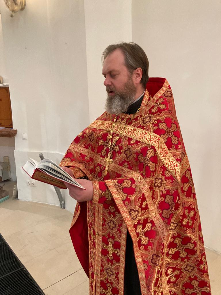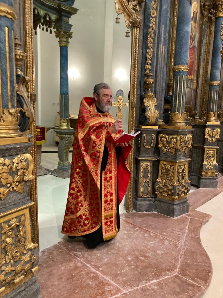 Отец Святослав после сугубой ектении совершил молитву о восстановлении мира, чтомую во всех храмах Русской Православной Церкви по благословению Святейшего Патриарха Московского и всея Руси Кирилла.