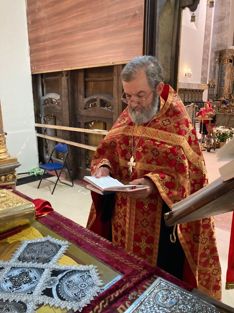 27 апреля 2022 года, в канун пятницы Светлой седмицы, иерей Святослав Булах, советник-помощник правящего архиерея епархии совершил великую пасхальную вечерню в Успенском соборе г. Будапешта. По окончании богослужения отец Святослав обратился к верующим с пастырским словом.