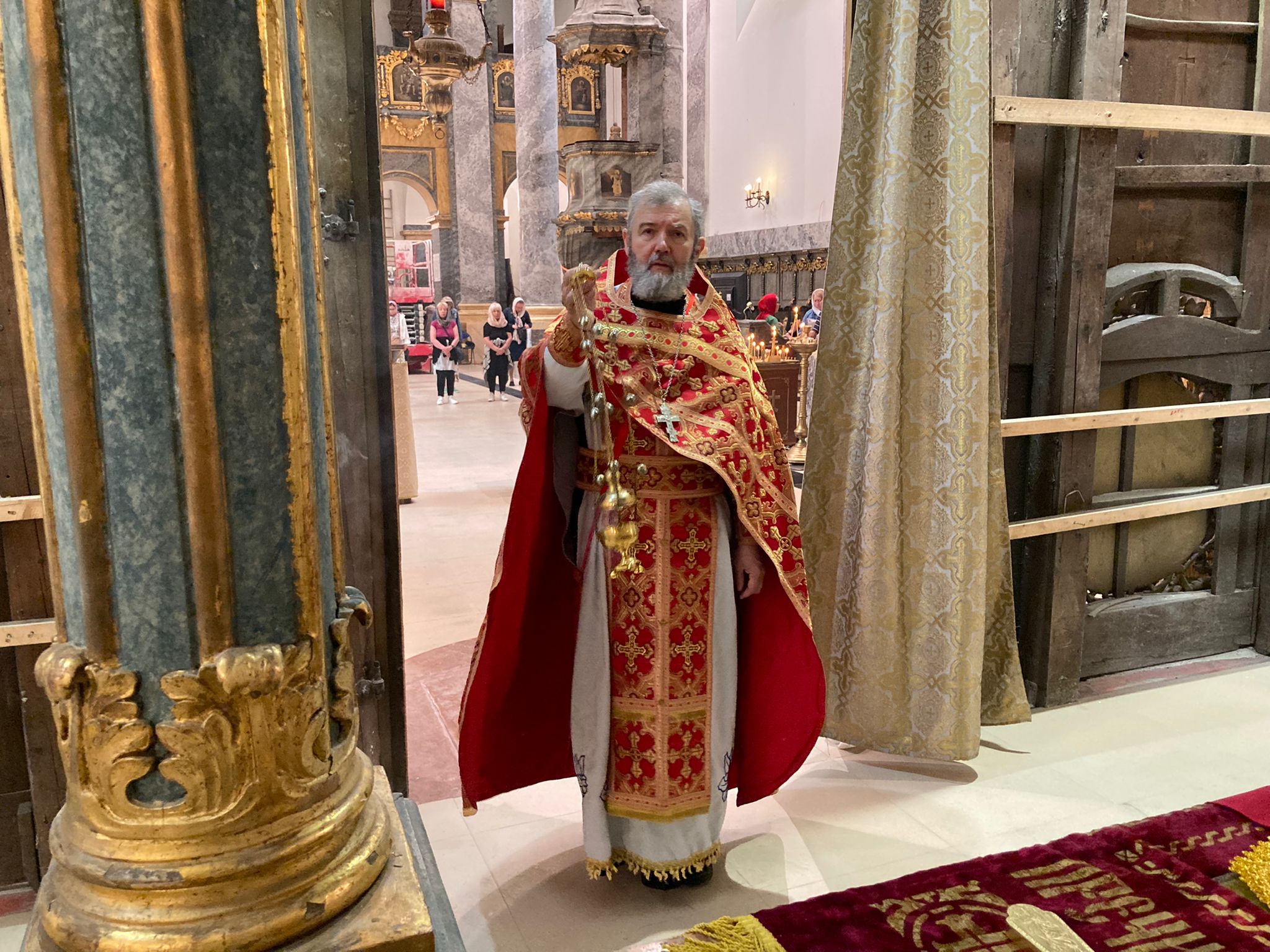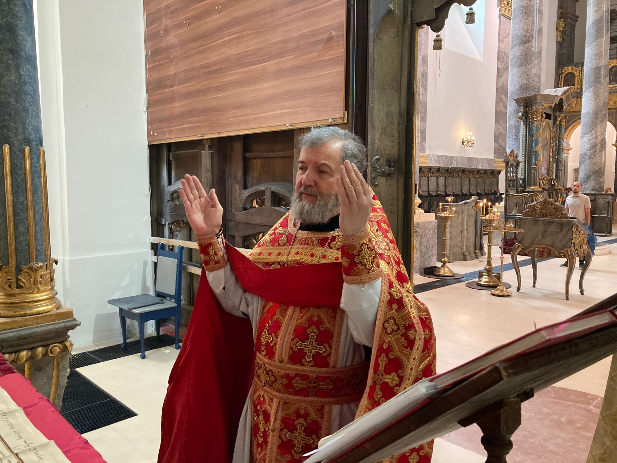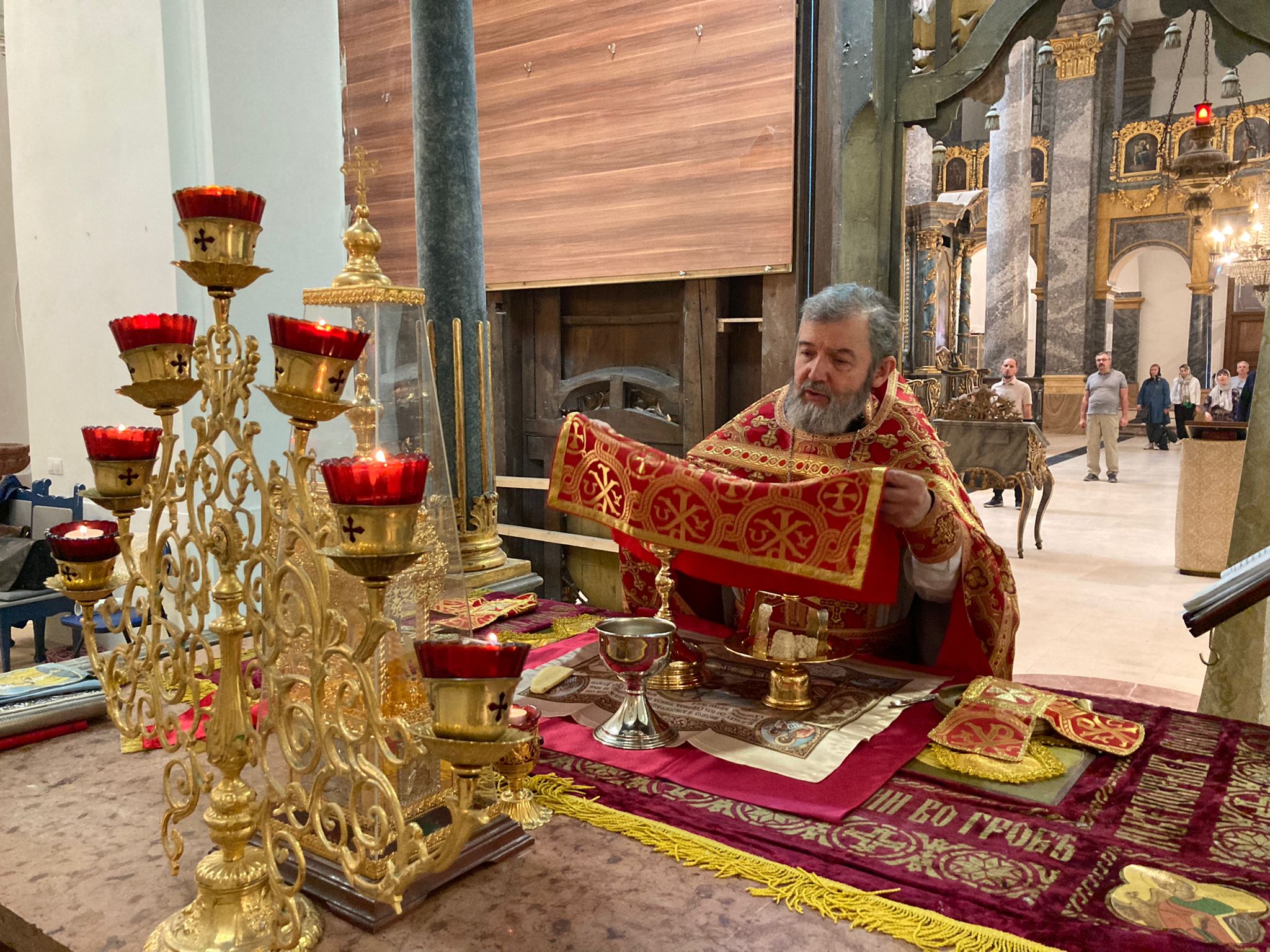 Утром 21 мая 2022 года, в субботний день, в Успенском кафедральном соборе состоялось Божественная литургия. Её совершил иерей Святослав Булах, клирик Свято-Троицкого прихода г. Будапешта.