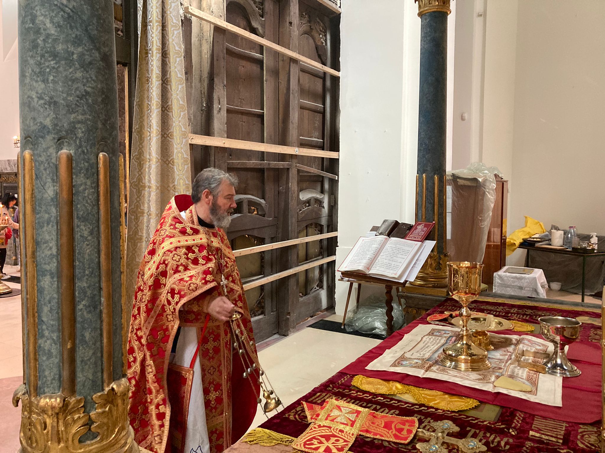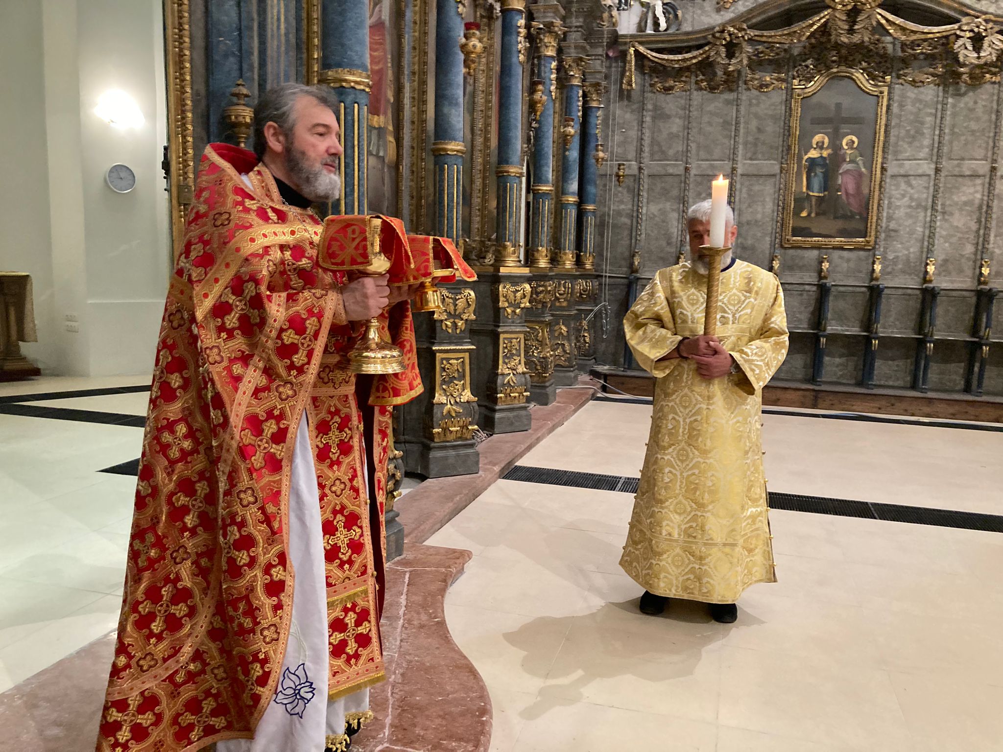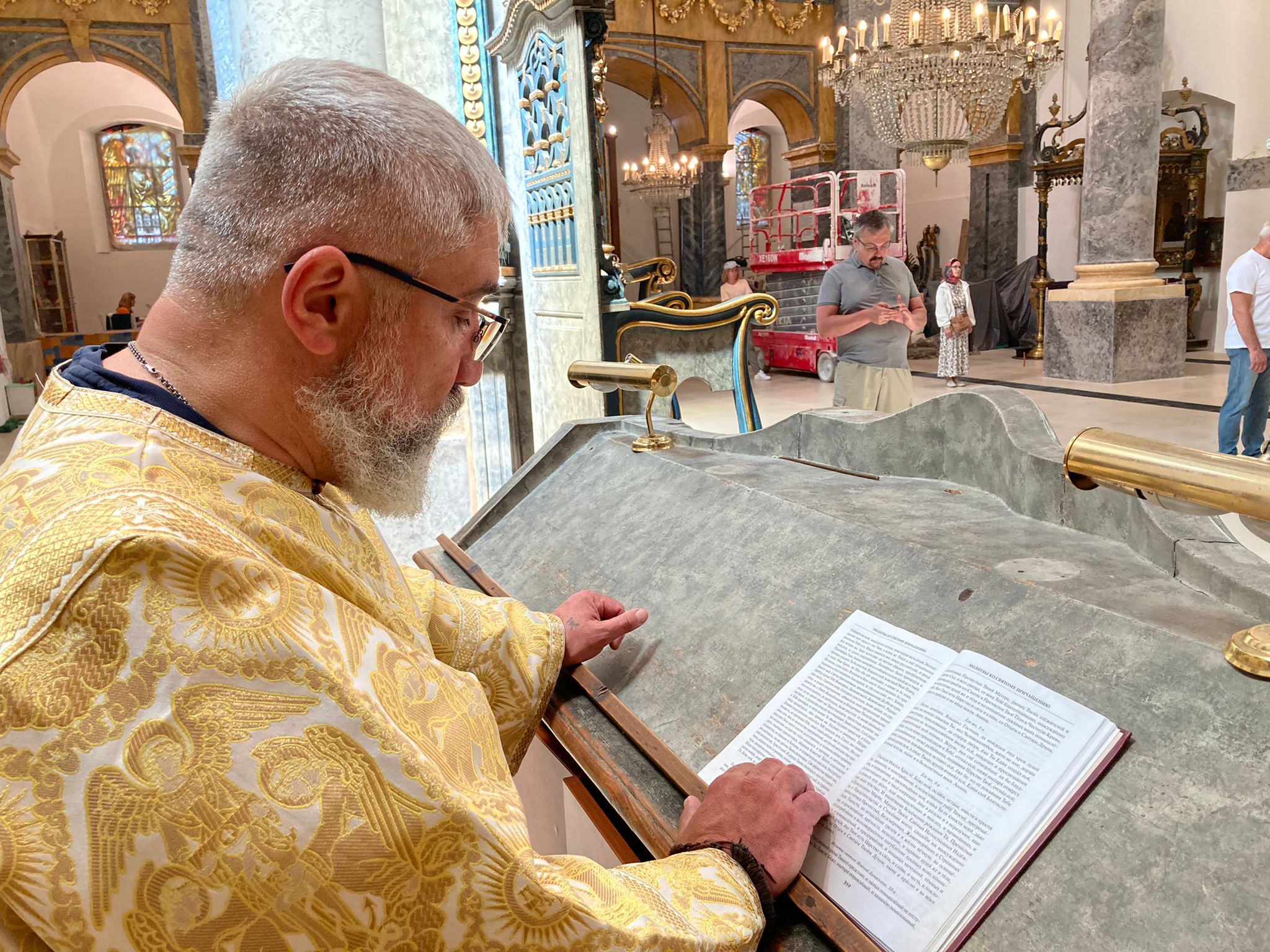 Утром 21 мая 2022 года, в субботний день, в Успенском кафедральном соборе состоялось Божественная литургия. Её совершил иерей Святослав Булах, клирик Свято-Троицкого прихода г. Будапешта.