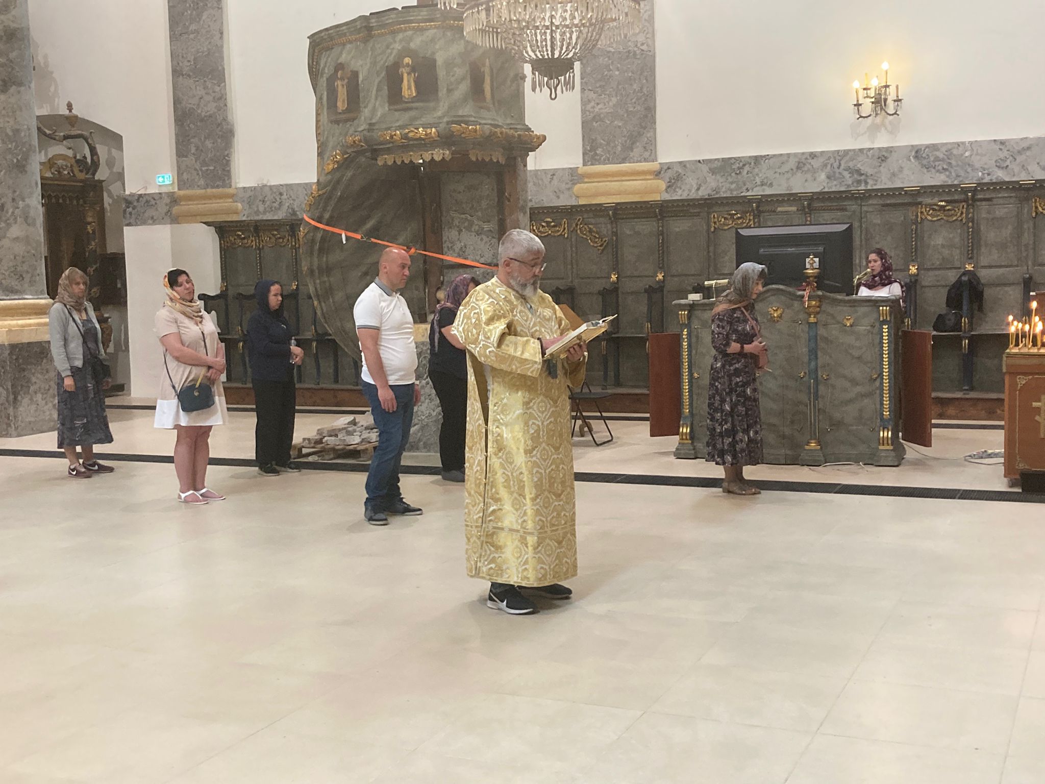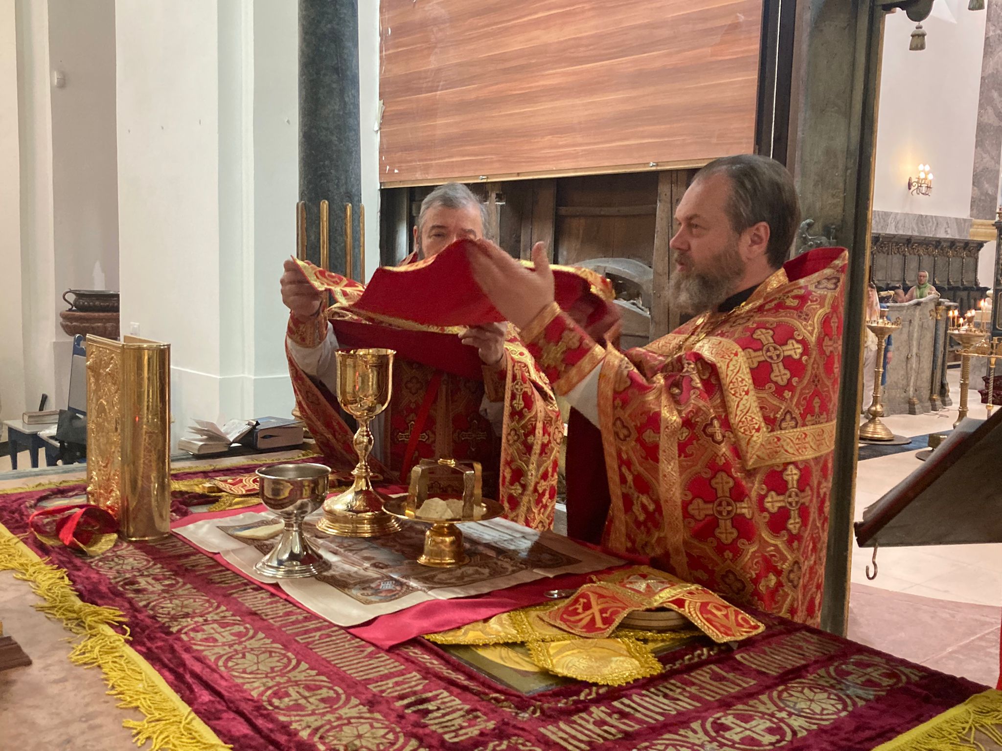 Утром 28 мая 2022 года, в субботний день, в Успенском кафедральном соборе состоялось Божественная литургия. Её совершил настоятель Свято-Троицкого прихода иерей Димитрий Корнилов и иерей Святослав Булах, советник-помощник правящего архирея епархии, клирик нашего прихода.