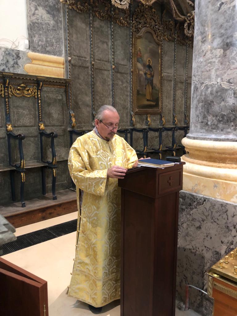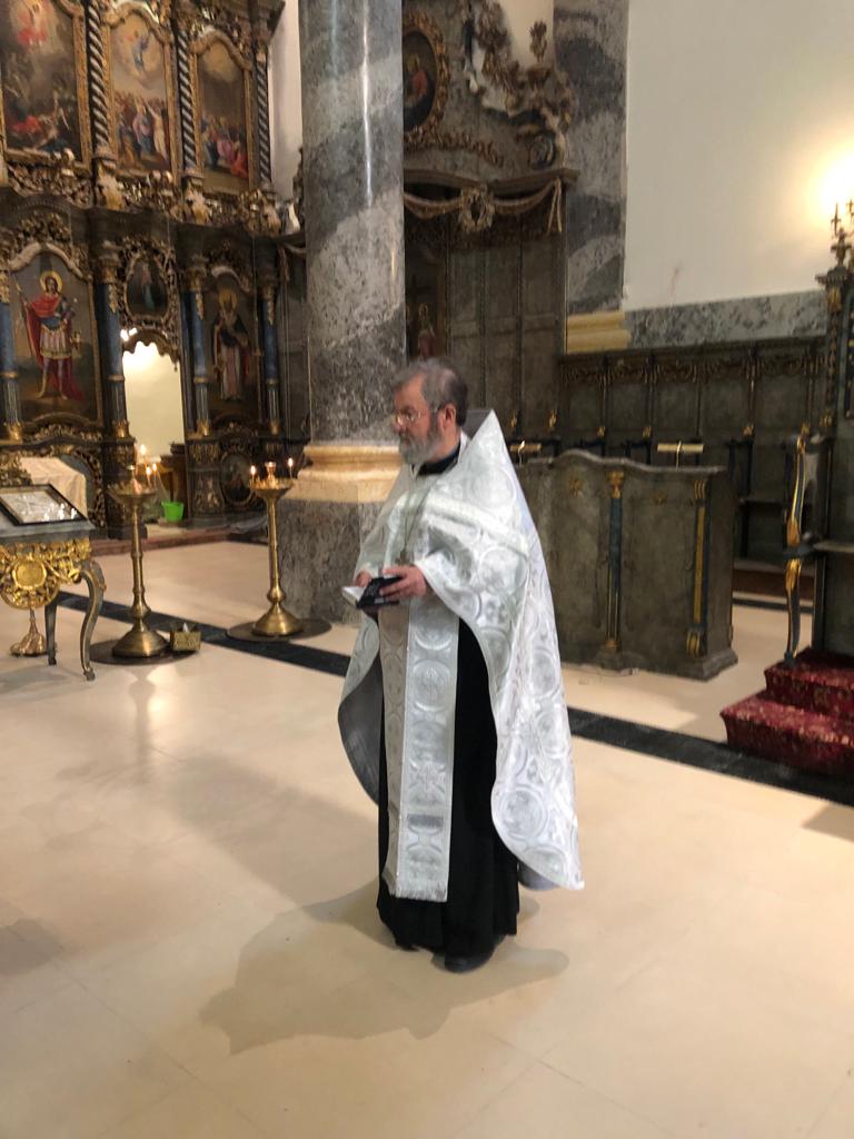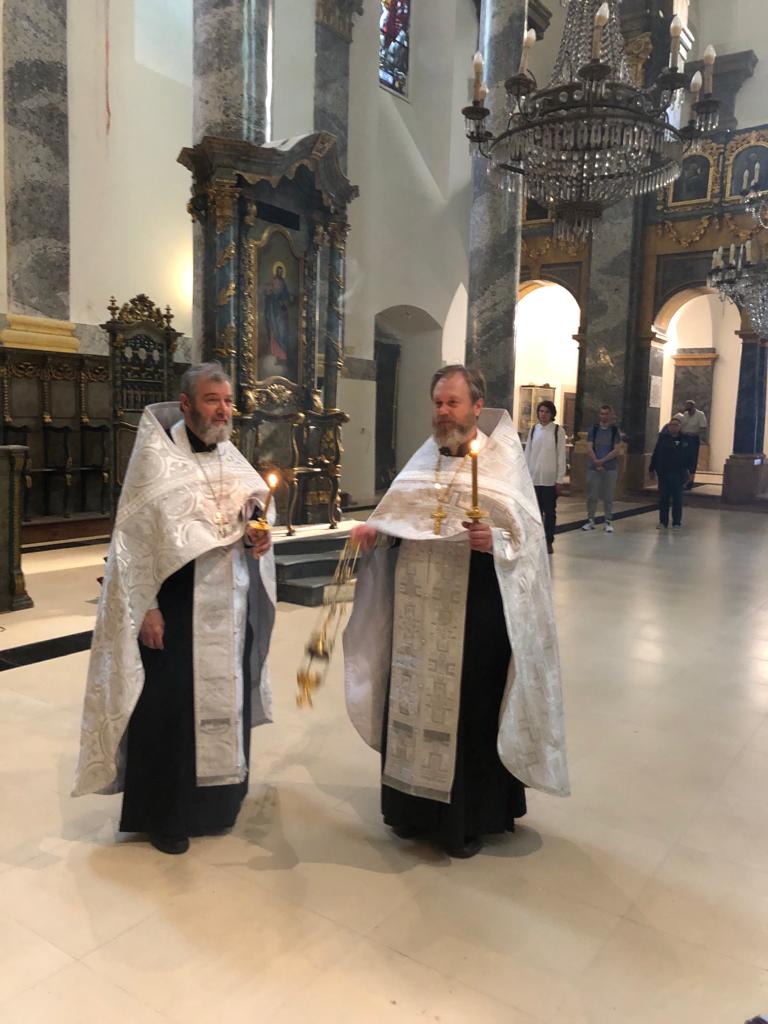 Через Вознесение искупительный подвиг Господа Иисуса Христа получил свое завершение: падшее человеческое естество возводится Сыном Божиим от земли, тления и смерти к нескончаемой жизни – человек возвращен Богом на Небо! Великую вечерню, предваряющую последование праздничной утрени, начал настоятель Свято-Троицкого прихода г. Будапешта иерей Димитрий Корнилов.