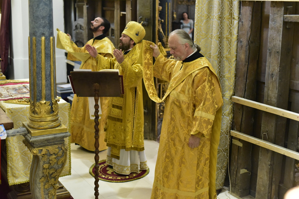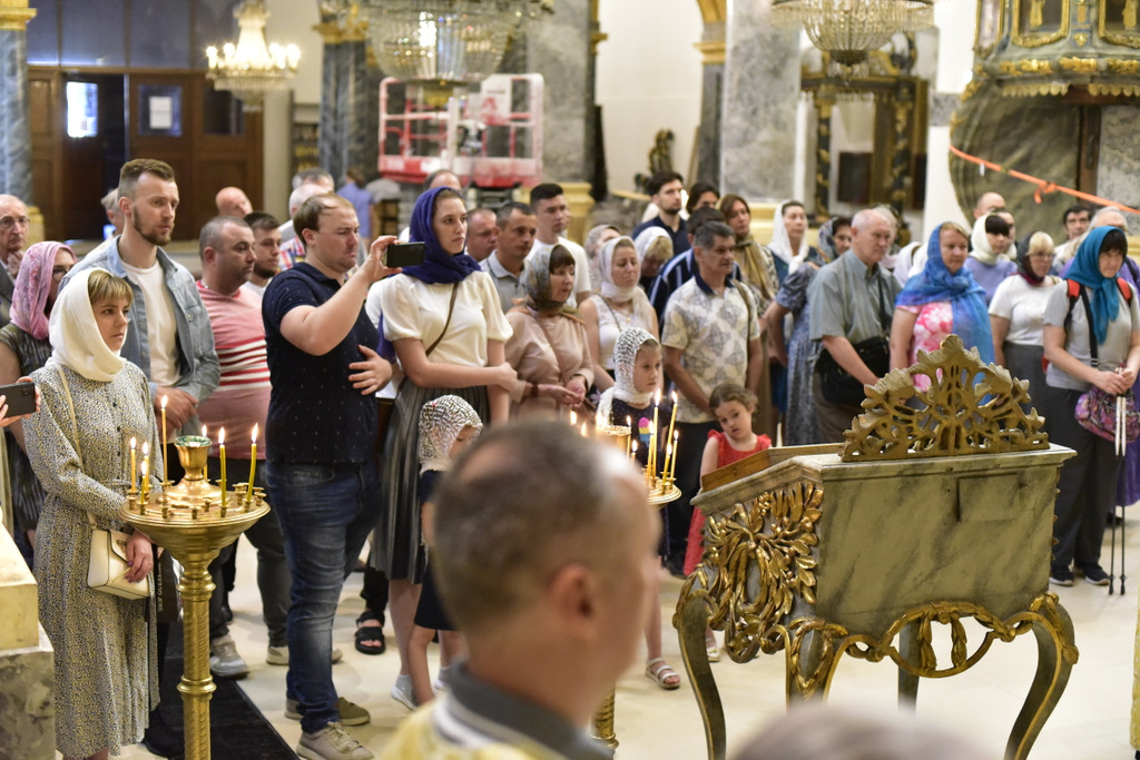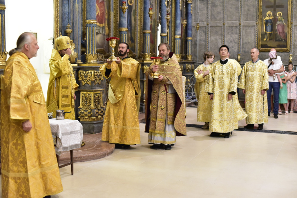 26 июня, в Неделю 2-ю по Пятидесятнице, день всех святых, в земле Российской просиявших, Высокопреосвященнейший Иларион, митрополит Будапештский и Венгерский, совершил Божественную Литургию в Успенском кафедральном соборе Будапешта в сослужении духовенства русского Троицкого прихода.