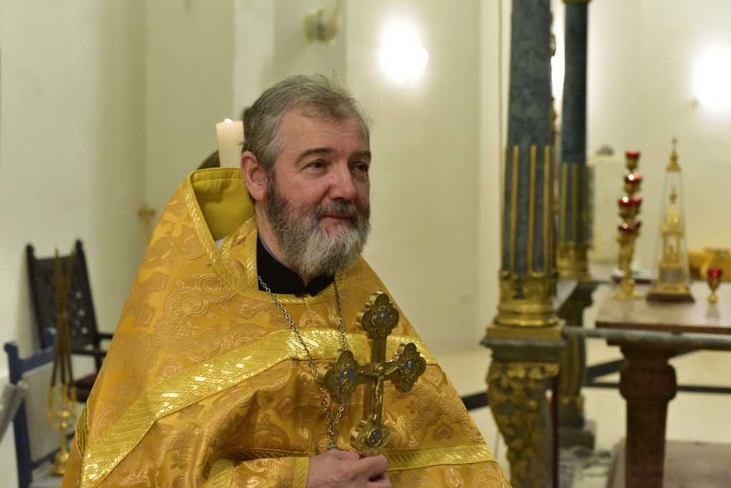 Перед причащением прихожан отец Святослав произнес проповедь, в которой рассказал о великом деле прославляемого сегодня свт. Филиппа, митр. Московского, всея России чудотворца. После мученической кончины святителя Филиппа († 23 декабря 1569 года) тело его было погребено в Отроче монастыре, в Твери.