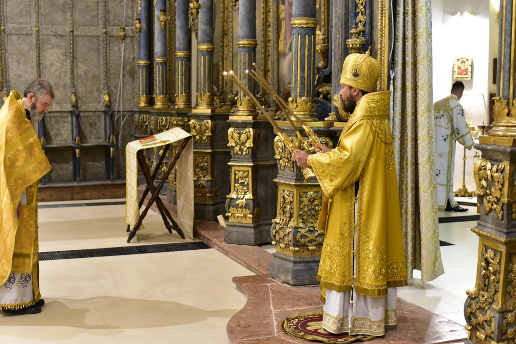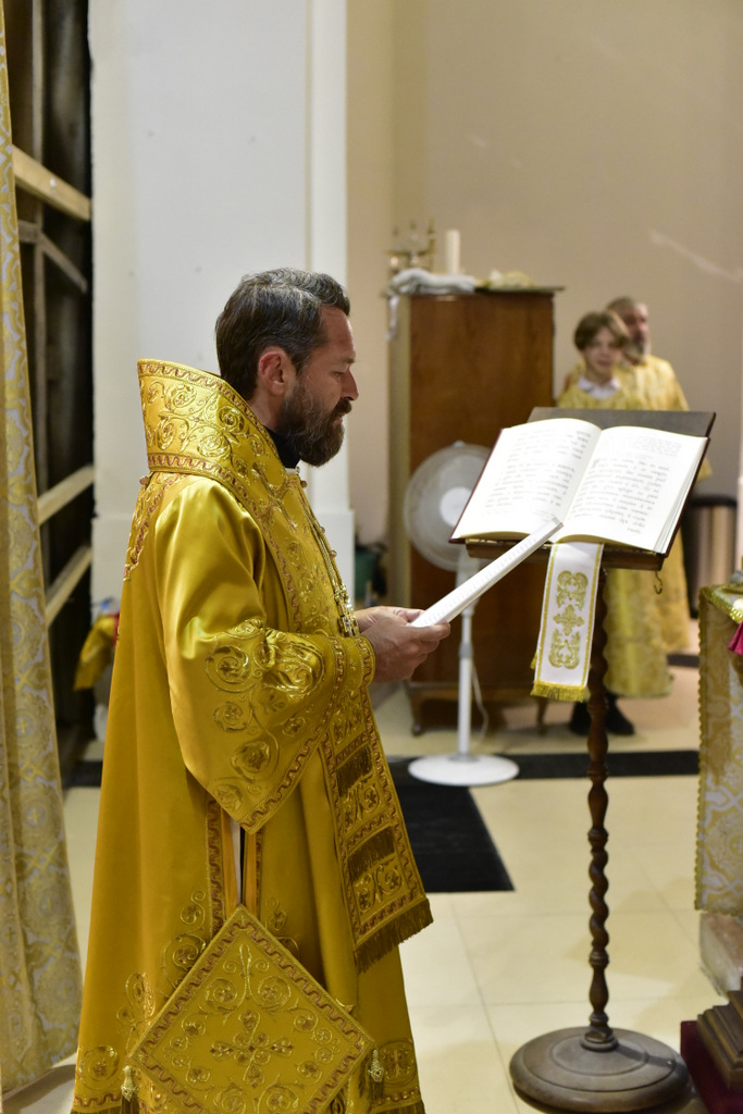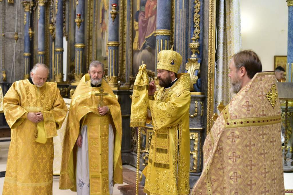 В прочитанном дьяконом Владимиром Чепыжовым Евангельском повествовании, был представлен рассказ апостола Матфея о чудесном исцелении Господом Иисусом Христом двух слепцов, которые, будучи лишенными телесного зрения и не видя чудес, совершенных Спасителем, приняли веру в Него только по одному своему слуху. Следствием такой веры явилось чудесное исцеление: слепые стали зрячими. Богослужение продолжилось сугубой ектеньей, после которой Владыка Иларион вознес молитву о восстановлении мира на Украине.