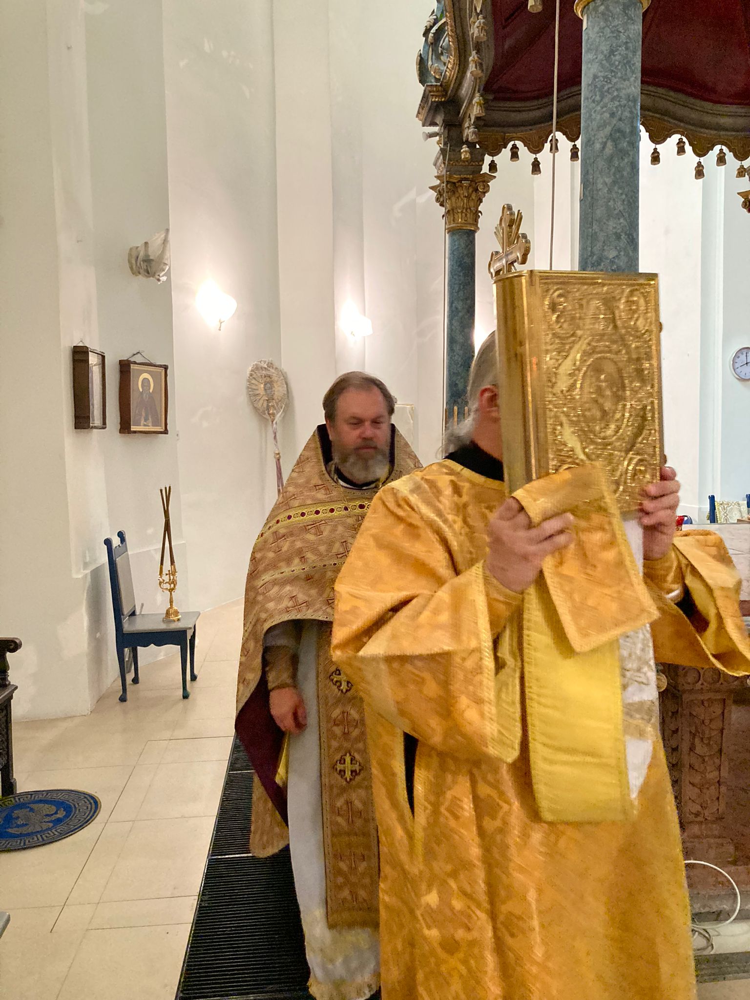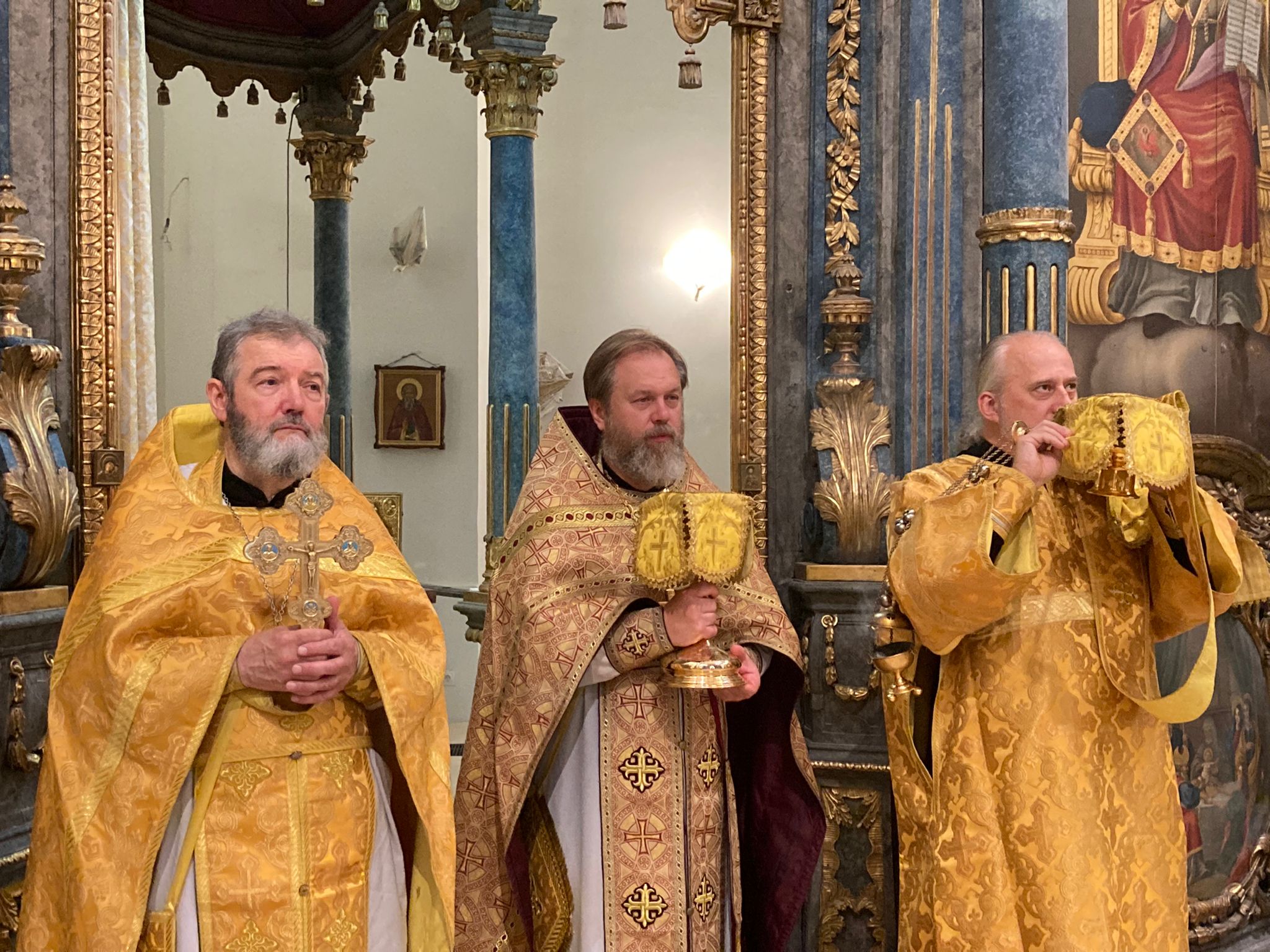 В завершение богослужения настоятель поздравил собравшихся с воскресным днем, причастников со Святыми Тайнами, именинников с днем Ангела и преподал всем свое пастырское благословение.