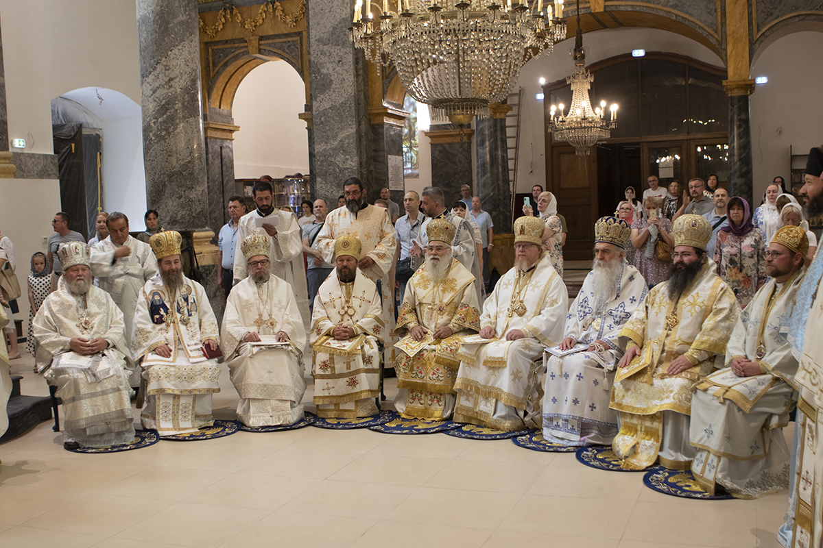 Божественную Литургию возглавил представитель Иерусалимского Патриархата митрополит Вострский Тимофей. Ему сослужили митрополит Будапештский и Венгерский Иларион, управляющий Берлинско-Германской епархией архиепископ Рузский Тихон, иерархи Сербской Православной Церкви епископы Будимский Лукиан и Бачский Ириней, иерарх Румынской Православной Церкви епископ Дюльский Силуан, главный секретарь Синода Болгарской Православной Церкви епископ Мелнишский Герасим, иерархи Православной Церкви Чешских земель и Словакии архиепископ Пражский и Чешских земель Михаил и архиепископ Михаловско-Кошицкий Георгий.