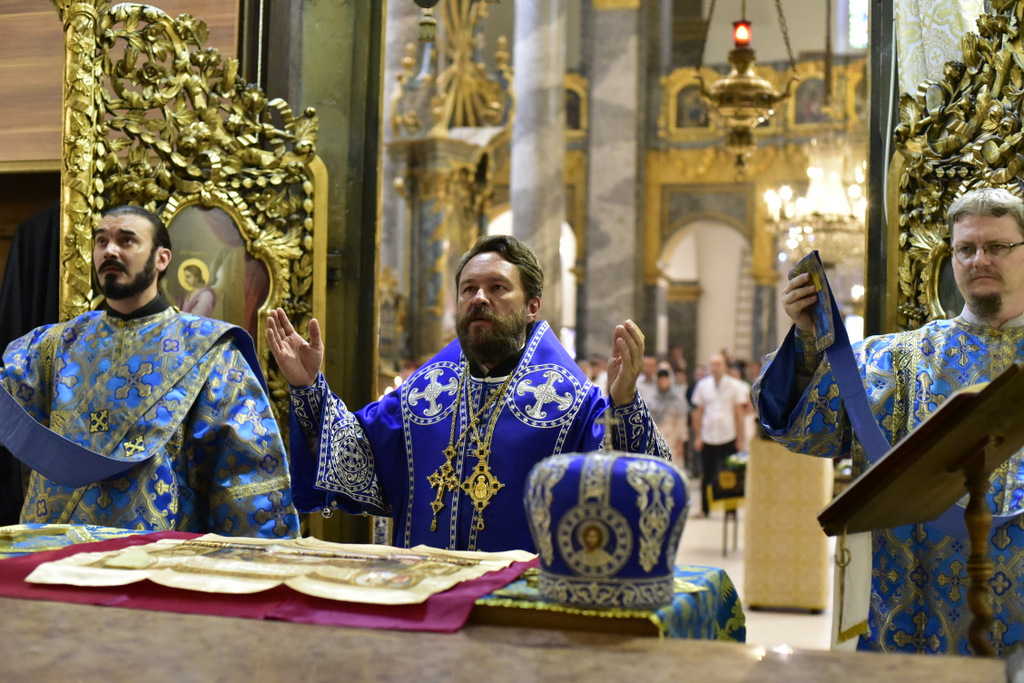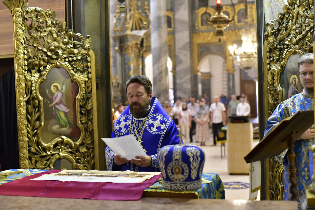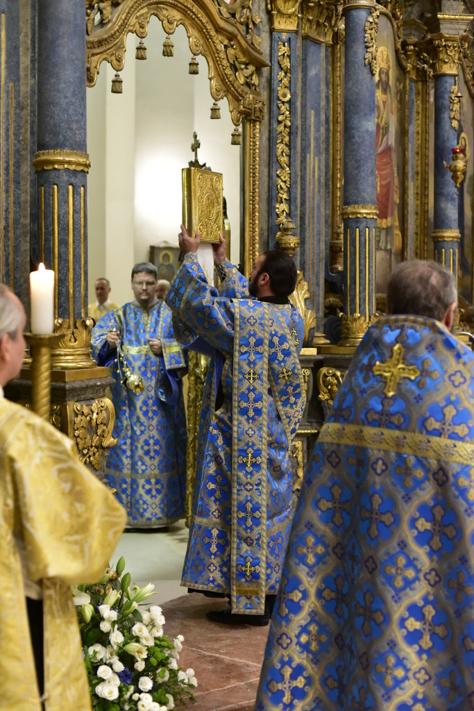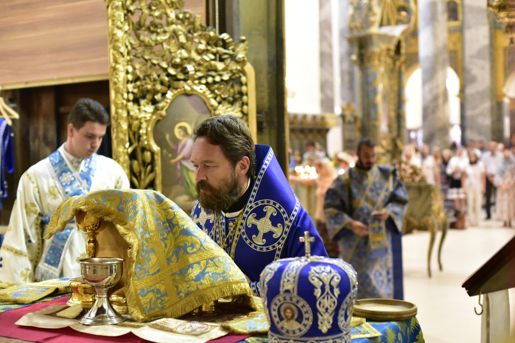 Богослужение проходило в кафедральном Успенском соборе. Главе Венгерской епархии сослужил настоятель Свято-Троицкого прихода иерей Димитрий Корнилов и священник прихода Святослав Булах. Великое двунадесятое торжество Успения Пресвятой Владычицы нашей Богородицы и Приснодевы Марии, является величайшим церковным праздником, посвященным воспоминанию о праведной кончине Пречистой Божией Матери.