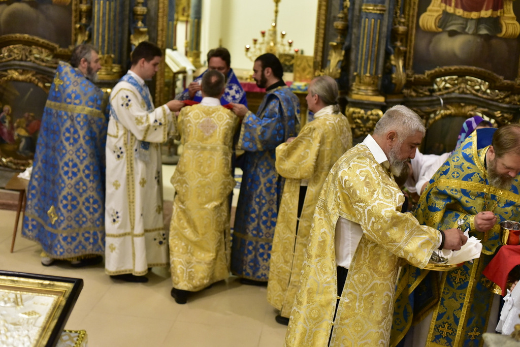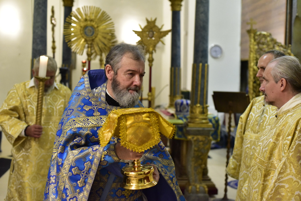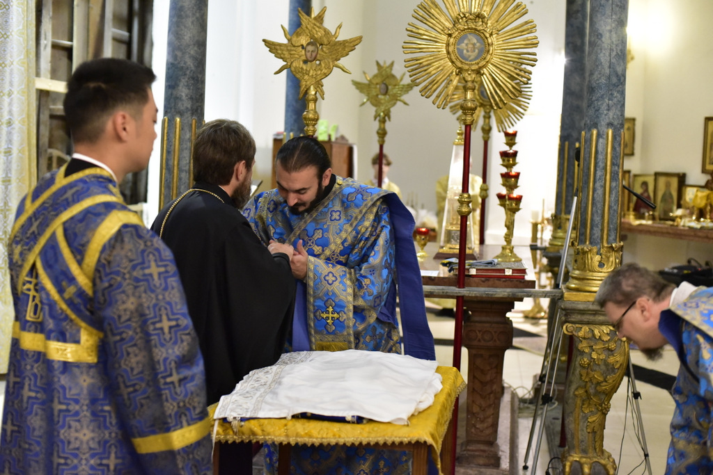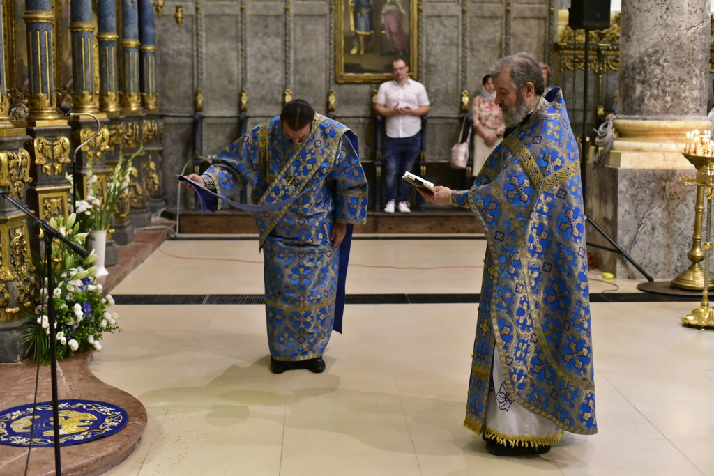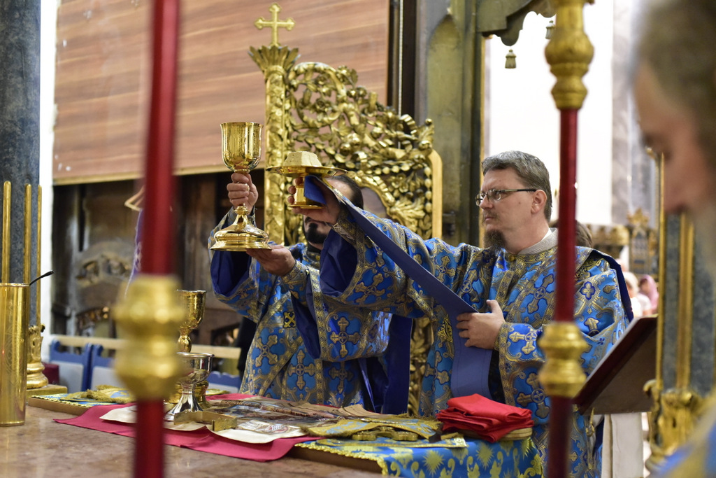 Богослужение проходило в кафедральном Успенском соборе. Главе Венгерской епархии сослужил настоятель Свято-Троицкого прихода иерей Димитрий Корнилов и священник прихода Святослав Булах. Великое двунадесятое торжество Успения Пресвятой Владычицы нашей Богородицы и Приснодевы Марии, является величайшим церковным праздником, посвященным воспоминанию о праведной кончине Пречистой Божией Матери.