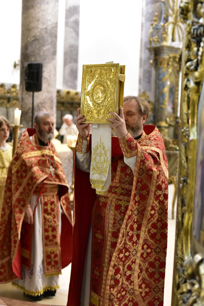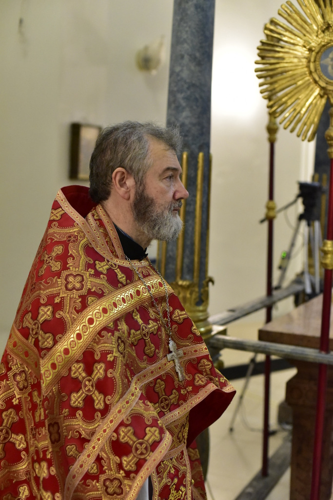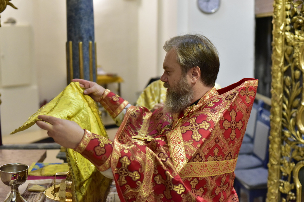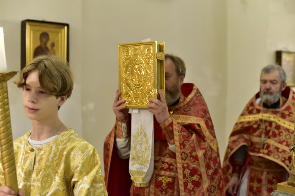 В продолжение богослужения, после сугубой ектении, отец Святослав вознес молитву о восстановлении мира на Украине. Перед выносом Святых Даров алтарник Владимир Архангельский зачитал прихожанам обращение Предстоятеля Русской Православной Церкви Святейшего Патриарха Московского и всея Руси Кирилла по случаю празднования Всероссийского Дня трезвости.