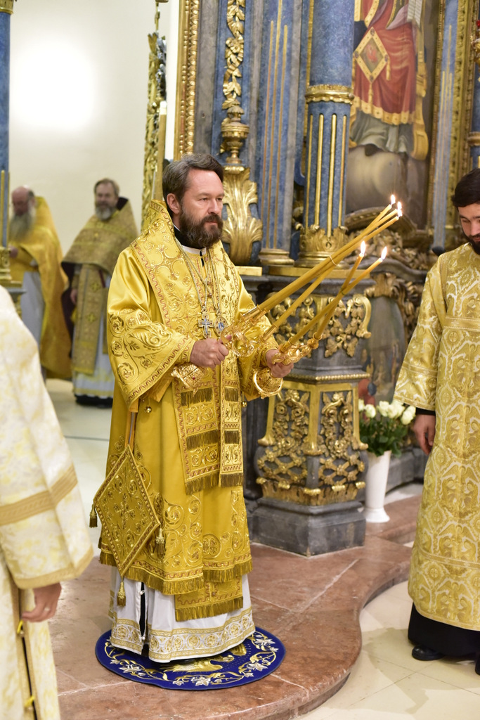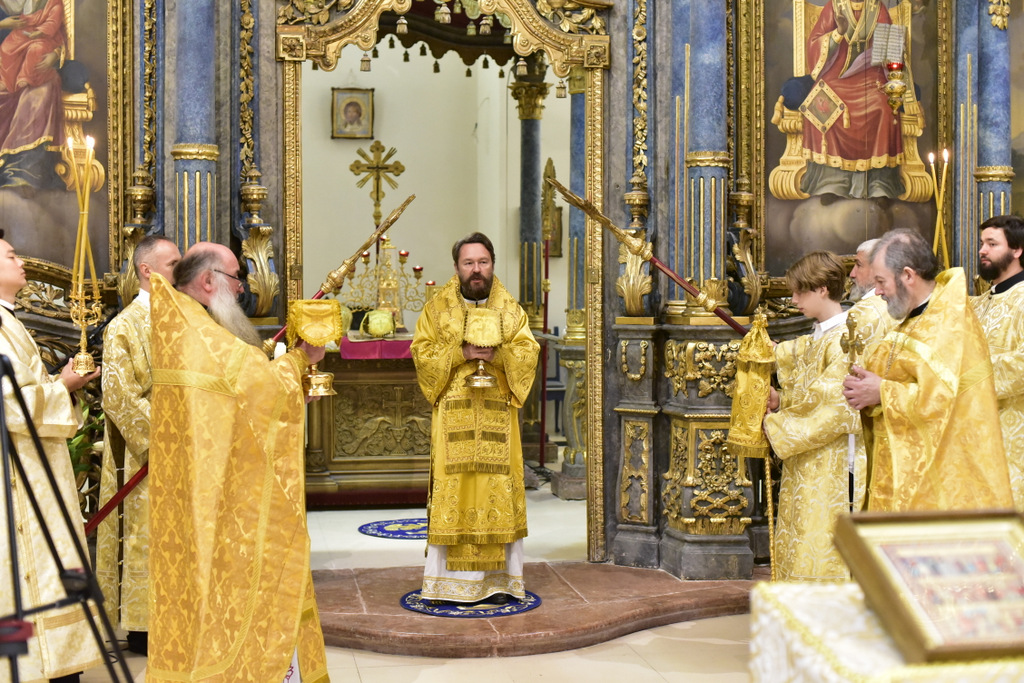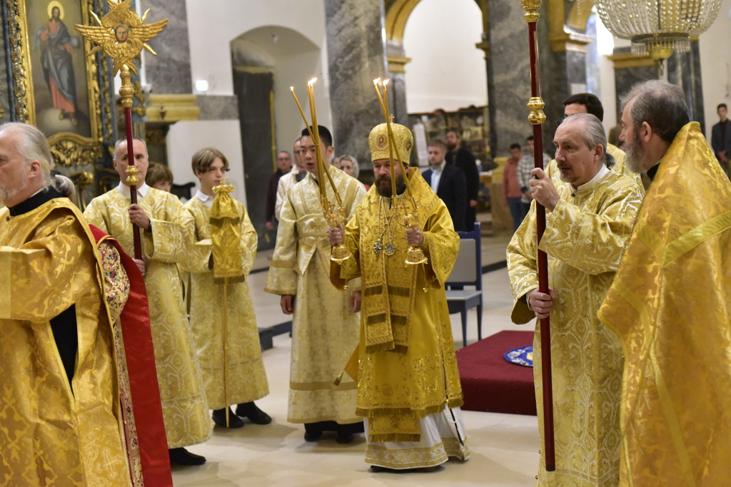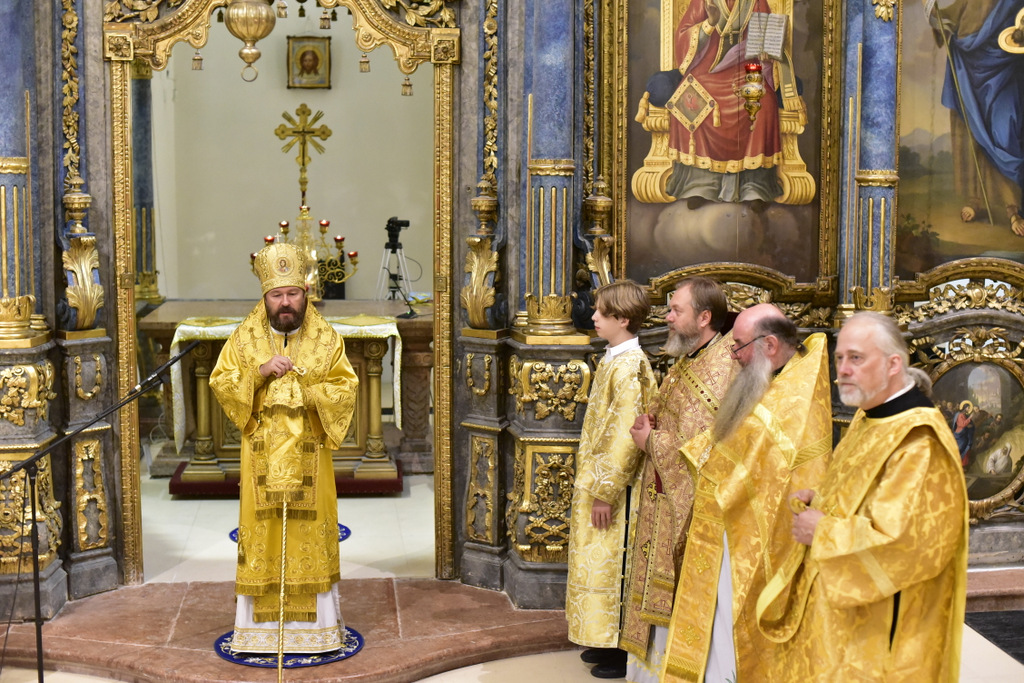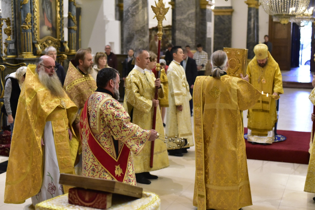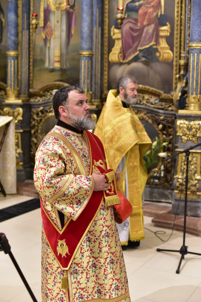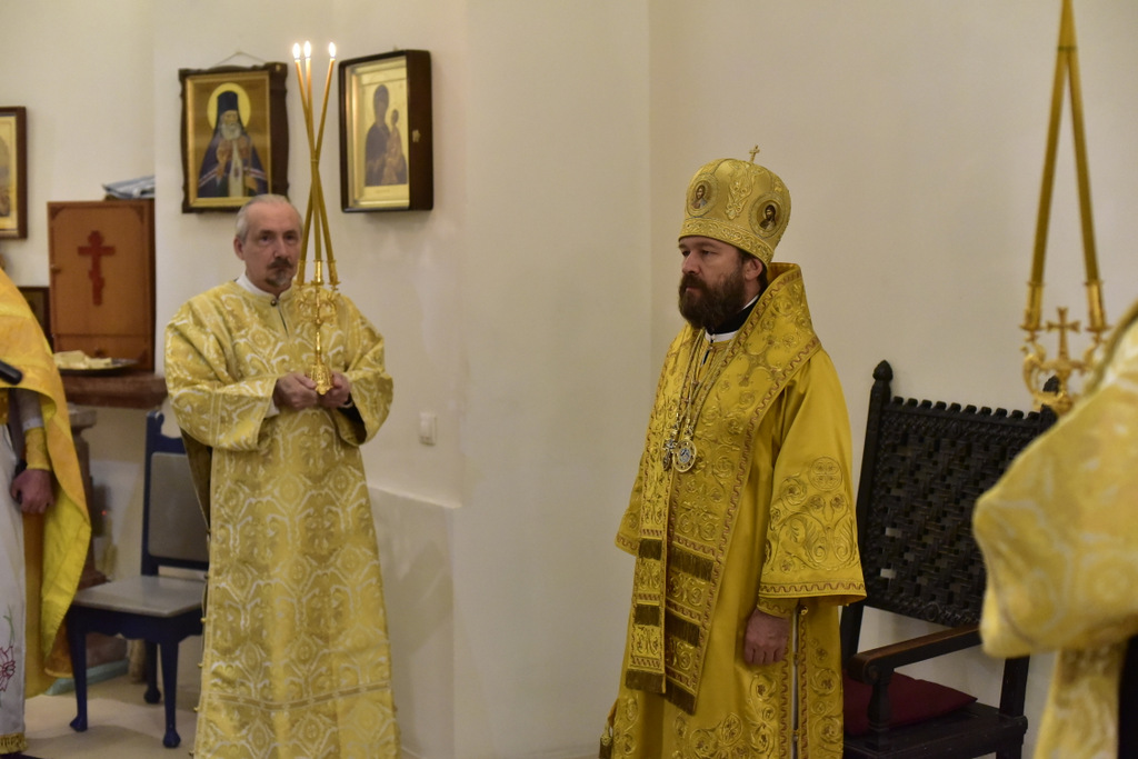 Ему сослужил настоятель Свято-Троицкого прихода иерей Димитрий Корнилов, священник прихода Святослав Булах, а также дьякон Владимир Чепыжов. Богослужение проходило в Успенском соборе г. Будапешта.