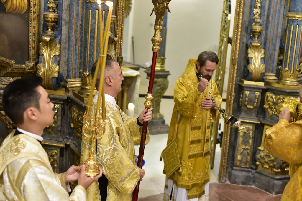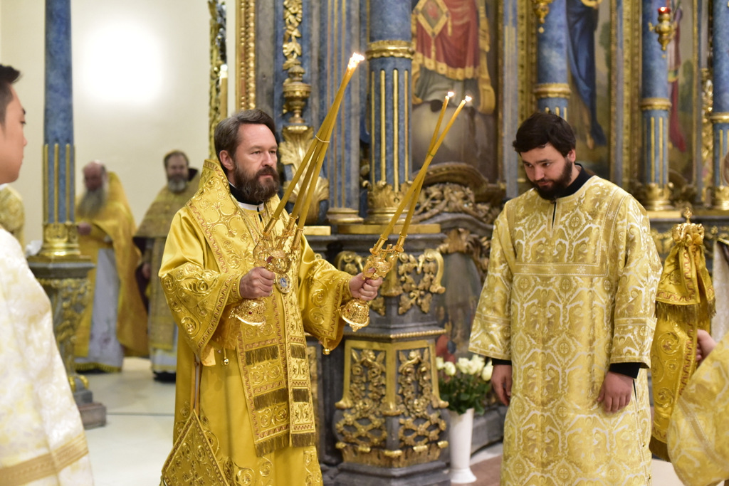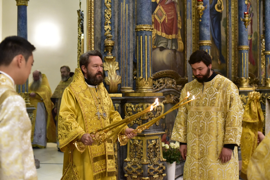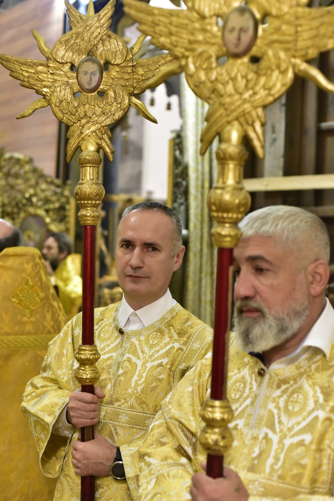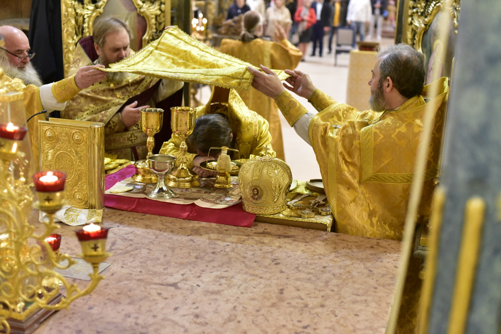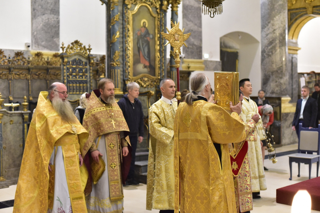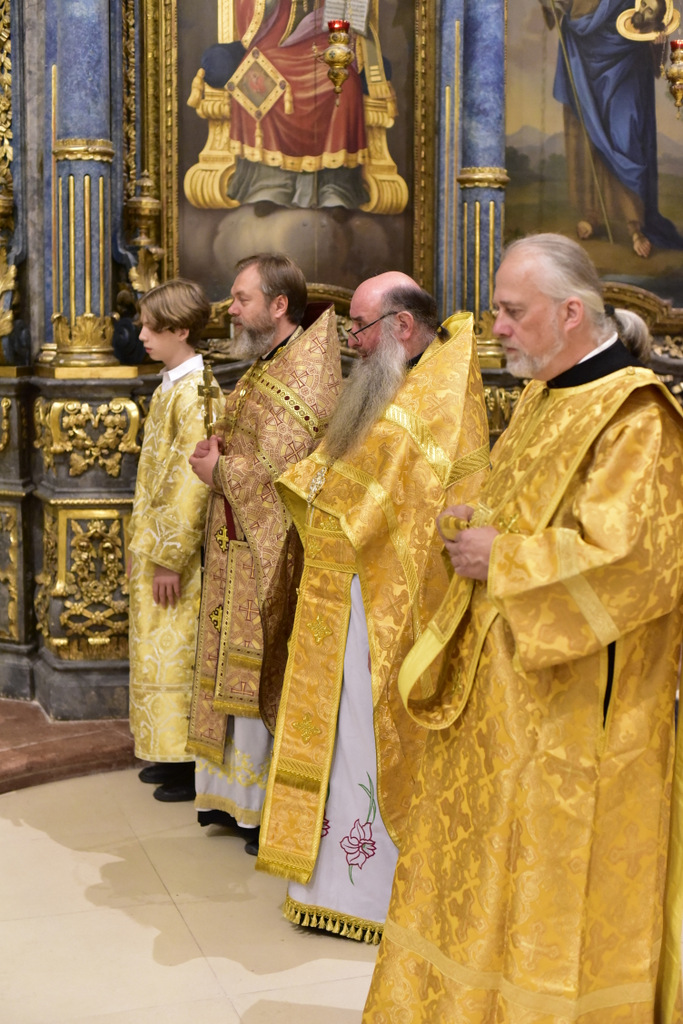 Ему сослужил настоятель Свято-Троицкого прихода иерей Димитрий Корнилов, священник прихода Святослав Булах, а также дьякон Владимир Чепыжов. Богослужение проходило в Успенском соборе г. Будапешта.