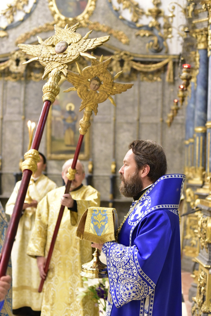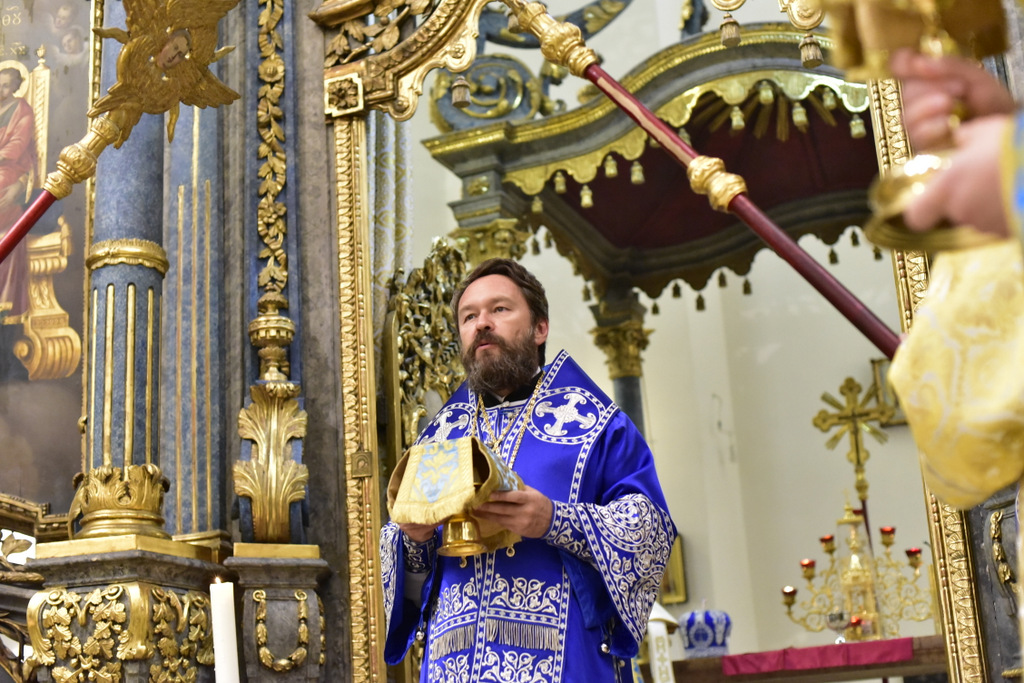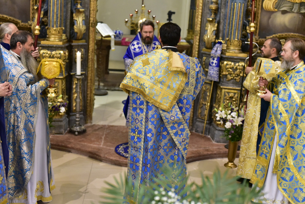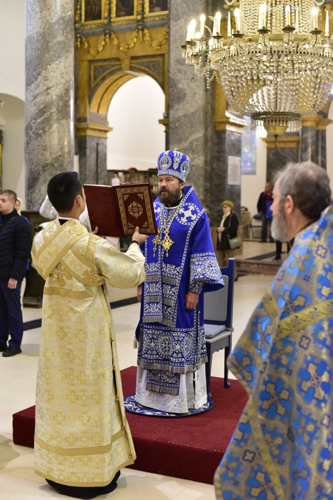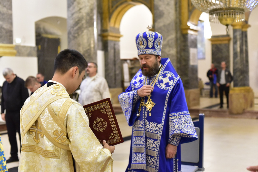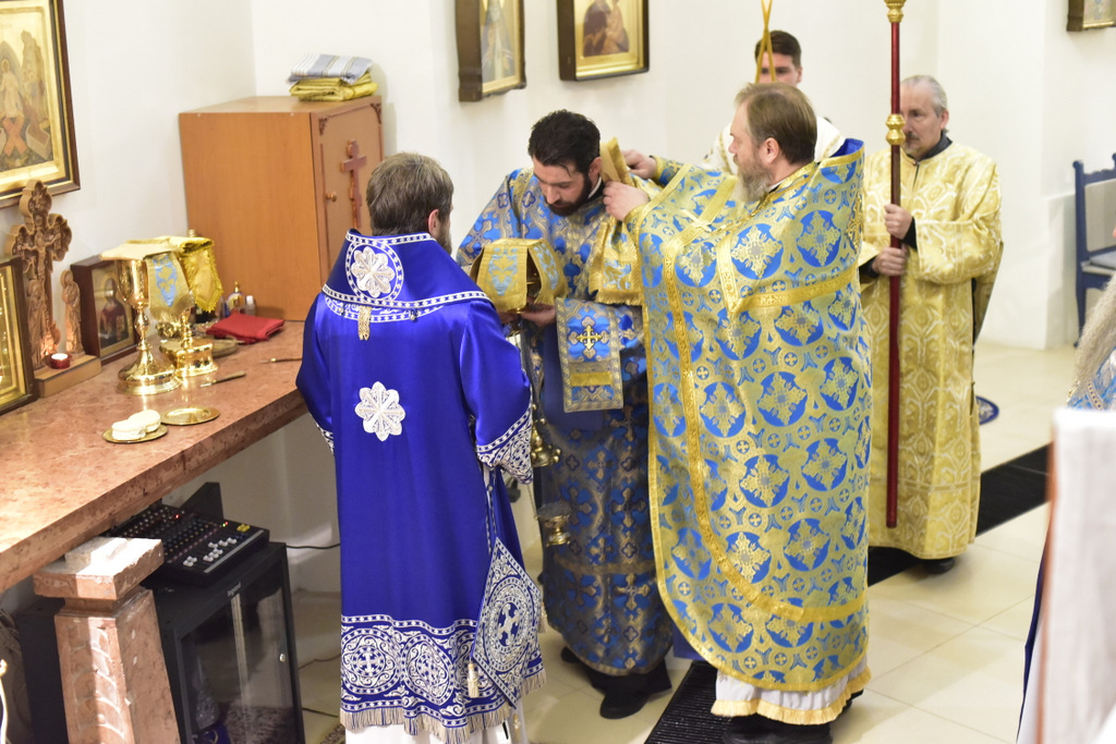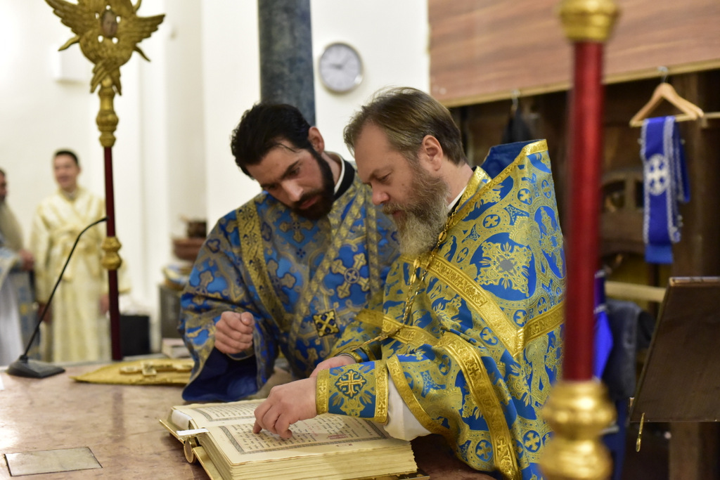 Ему сослужили настоятель Свято-Троицкого прихода иерей Димитрий Корнилов, священник прихода иерей Святослав Булах, Свято-Троицкого прихода г. Мишкольц протоиерей Кирилл Татарка, протоиерей Сергий Гутенко, а также дьякон Стефан Милисавич. Богослужение проходило в Успенском соборе г. Будапешта.