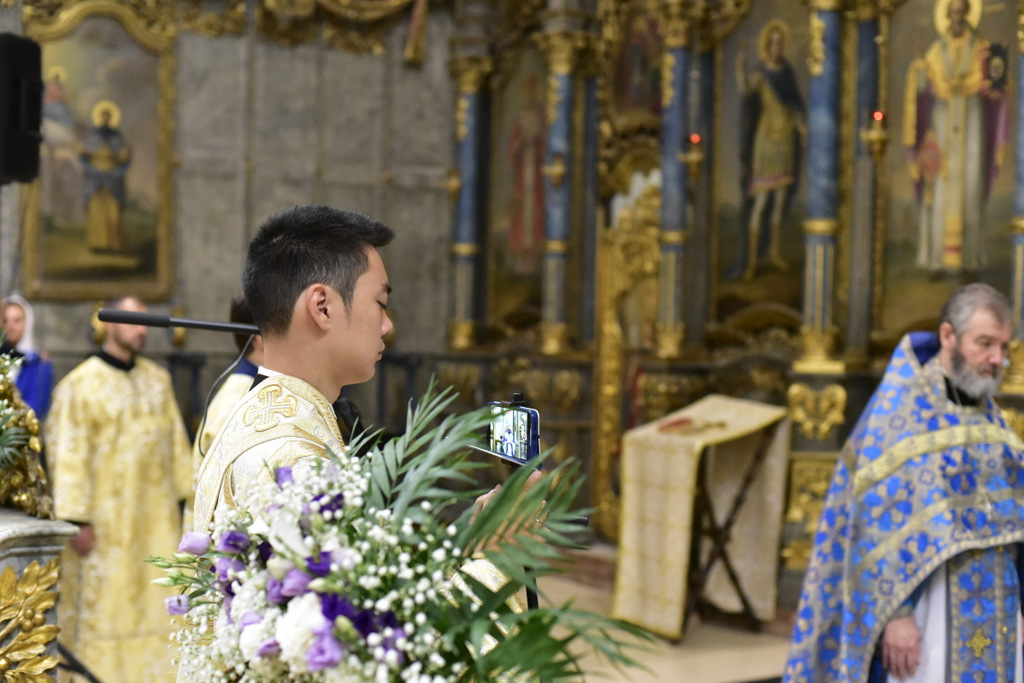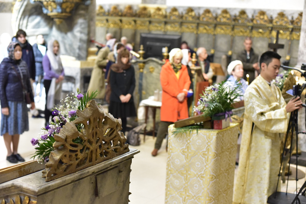 В Евангельском слове, прочитанном дьяконом Стефаном, был представлен рассказ апостола Луки о двух сестрах Лазаря из Вифании – Марфе и Марии, принявших Спасителя в своем доме. Святой евангелист поведал как одна из сестер – Мария, была более почтена Господом за неотлучное пребывание у ног Его в слушании Его Божественных наставлений, чем Марфа, заботившаяся о многом угощении.