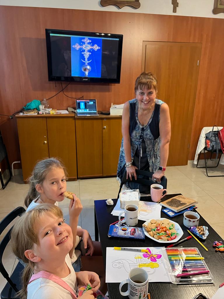 В программе — история Нового и Ветхого завета, беседы о вере и православных праздниках. Занятия проходят в интерактивной форме, включают в себя, кроме собственно общения, изготовление поделок или рисование по теме урока, просмотр мультиков и чаепитие.