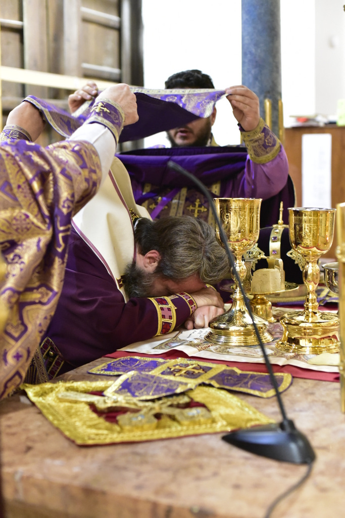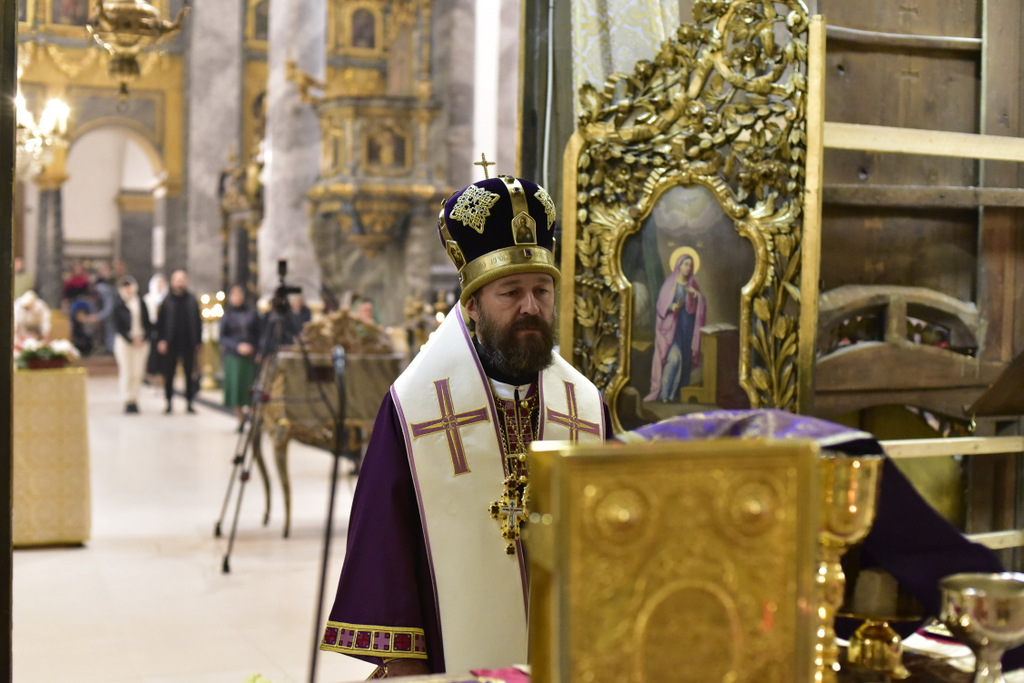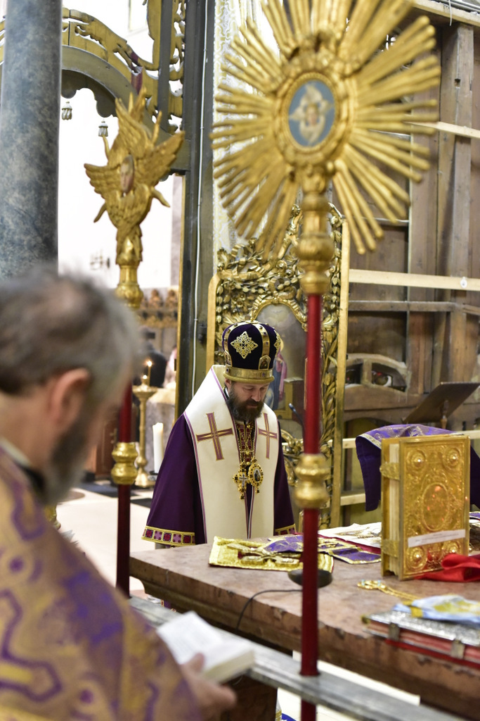В читаемом отцом Димитрием Евангелии от Иоанна, был представлен рассказ о крестных страданиях Спасителя, о том, как Господь, шествуя на место казни, нес на плечах Своих крест, как неустрашимый воин копье, которым имел поразить врага. В продолжение Божественной литургии, после сугубой ектеньи, Владыка Иларион вознес молитву о восстановлении мира на Украине.