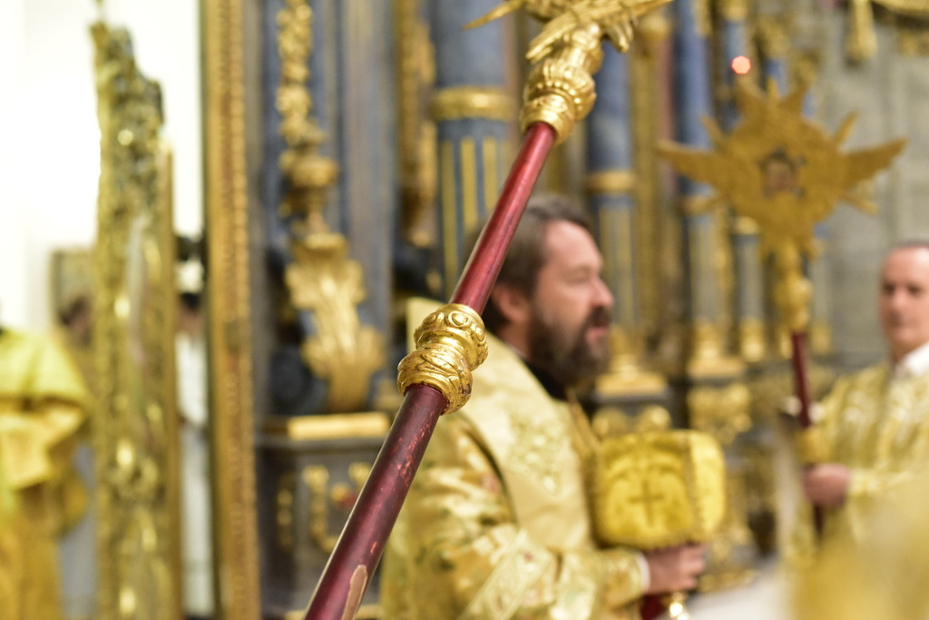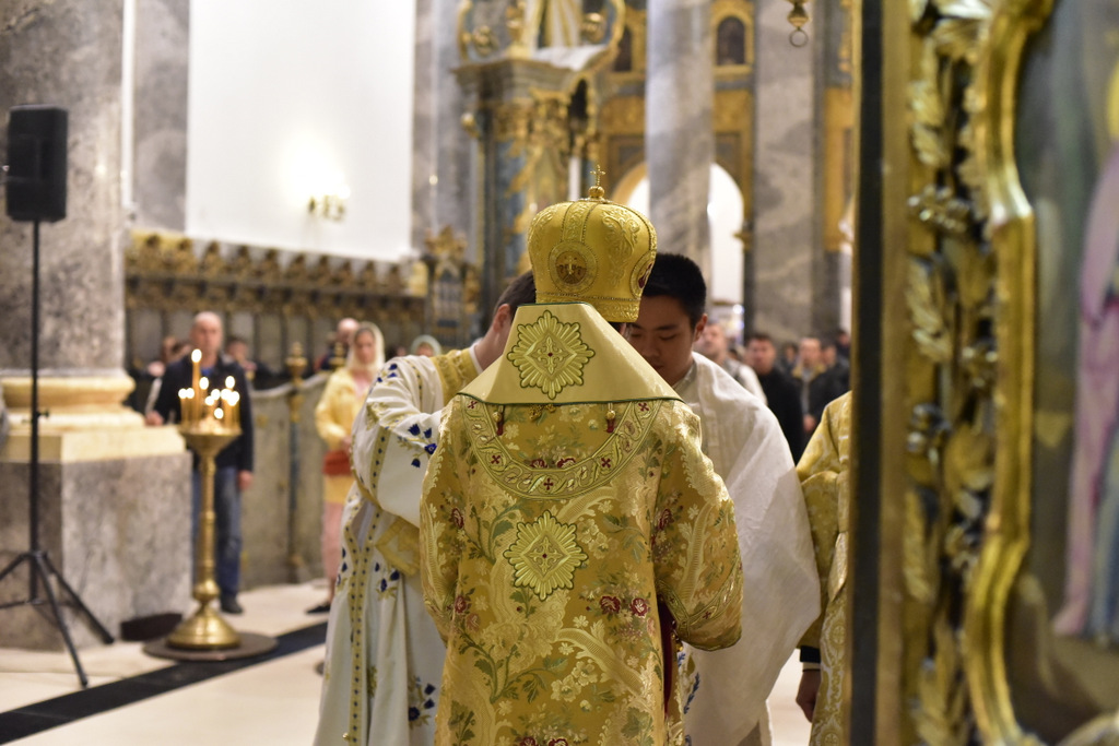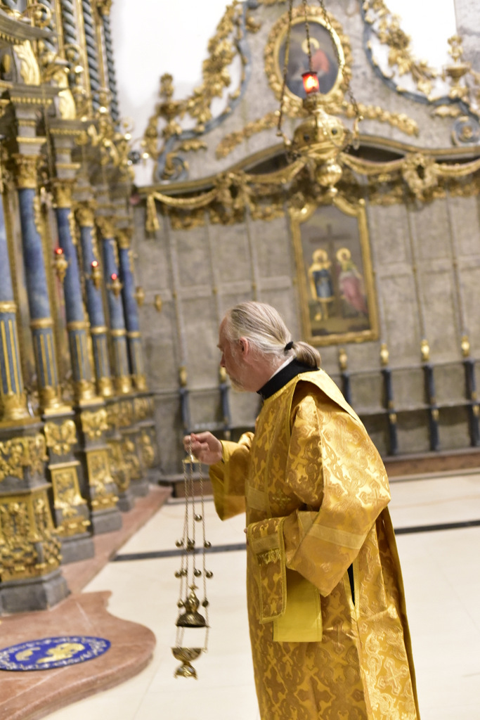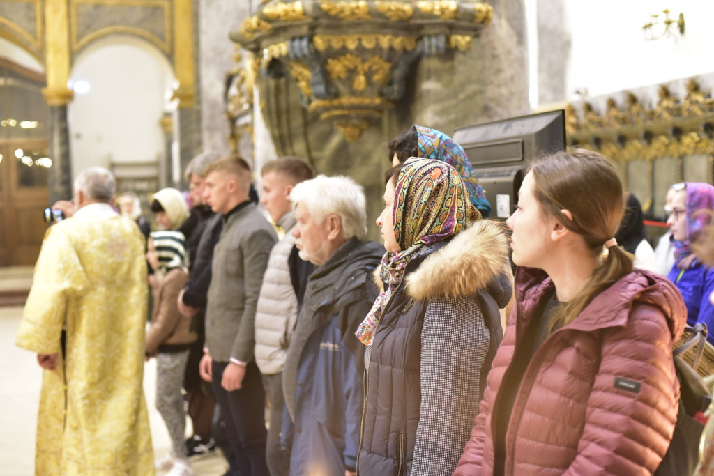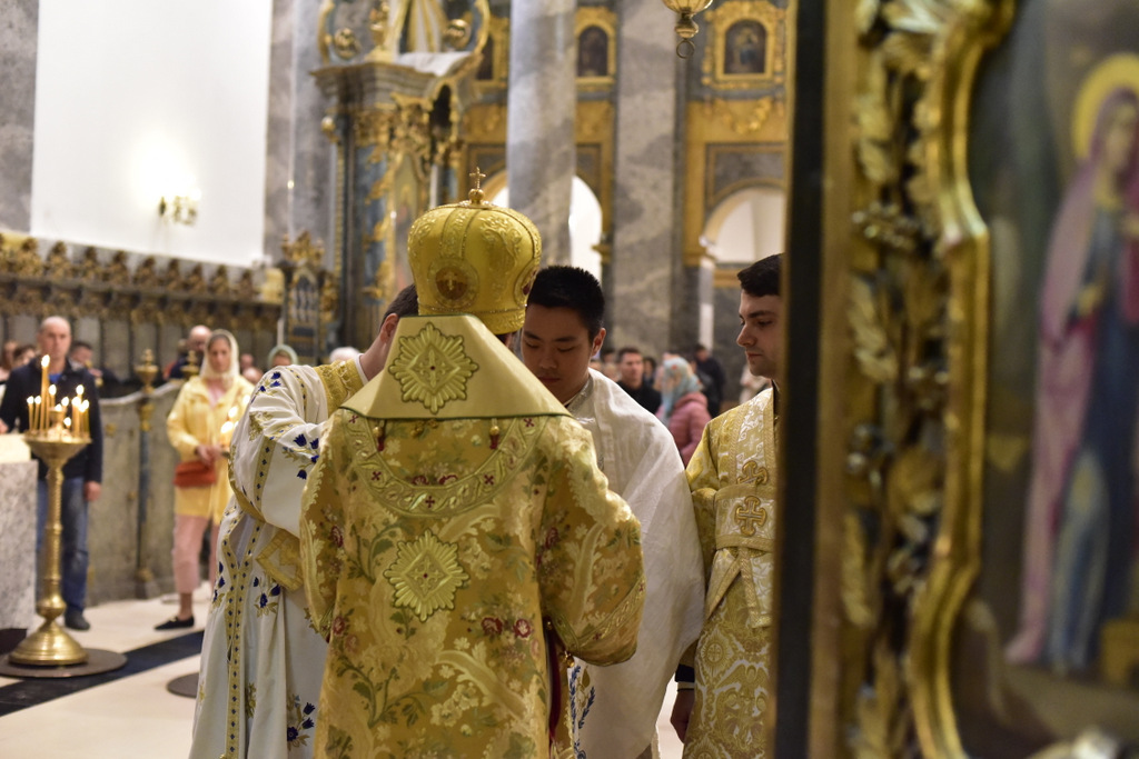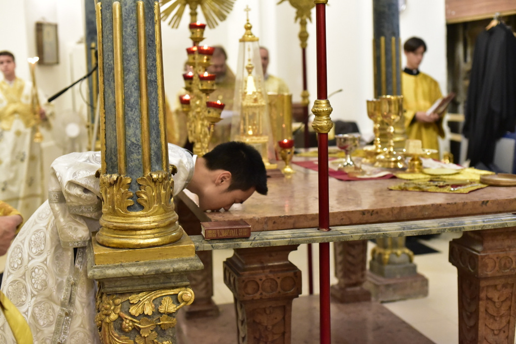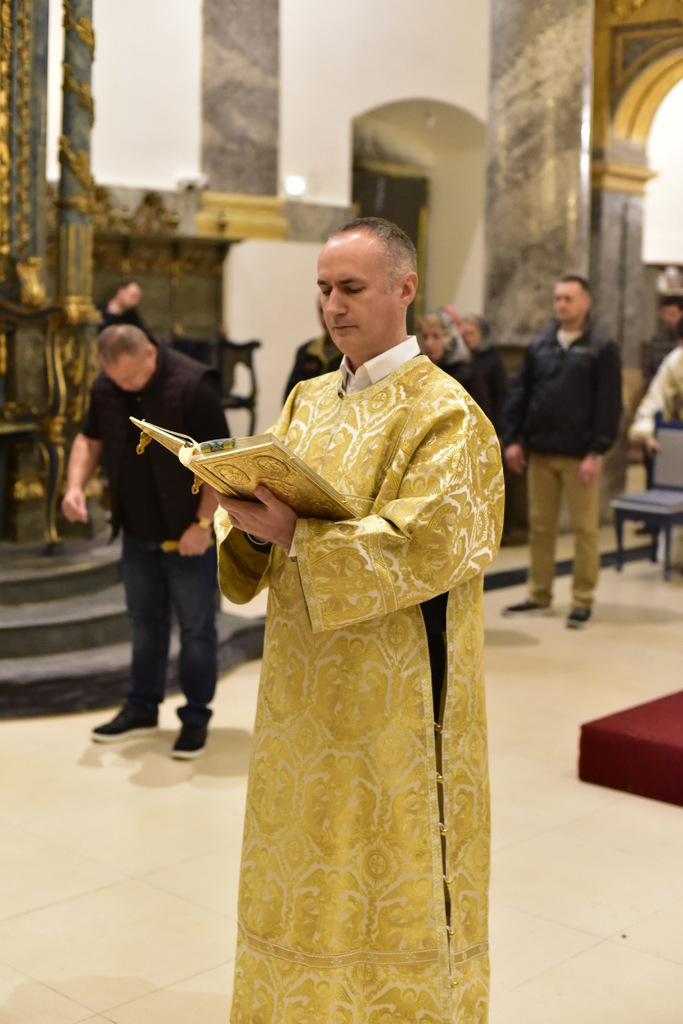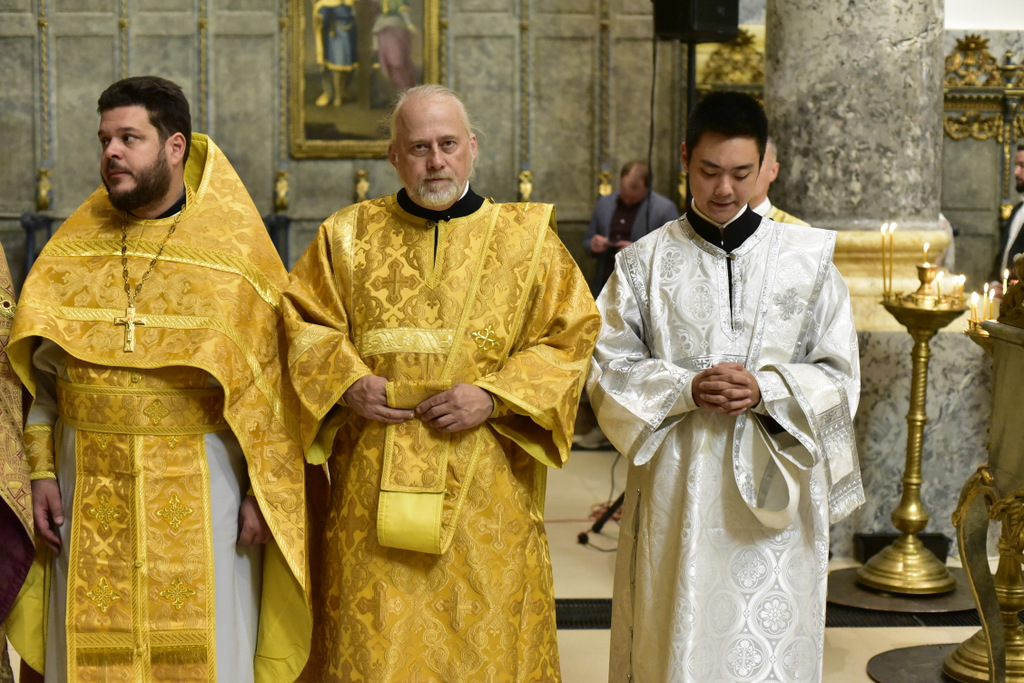 В читаемом дьяконом Владимиром Евангелии от Иоанна был представлен рассказ о том, как Господь Иисус Христос находясь на Кресте в смертельных муках вверяет Свою Мать попечению Своего возлюбленного ученика – апостола Иоанна. По прочтении Священного Писания, после сугубой ектеньи предстоятель вознес молитву о восстановлении мира на Украине. В этот день митрополит Будапештский и Венгерский Иларион совершил диаконскую хиротонию иподиакона Вячеслава Ли.