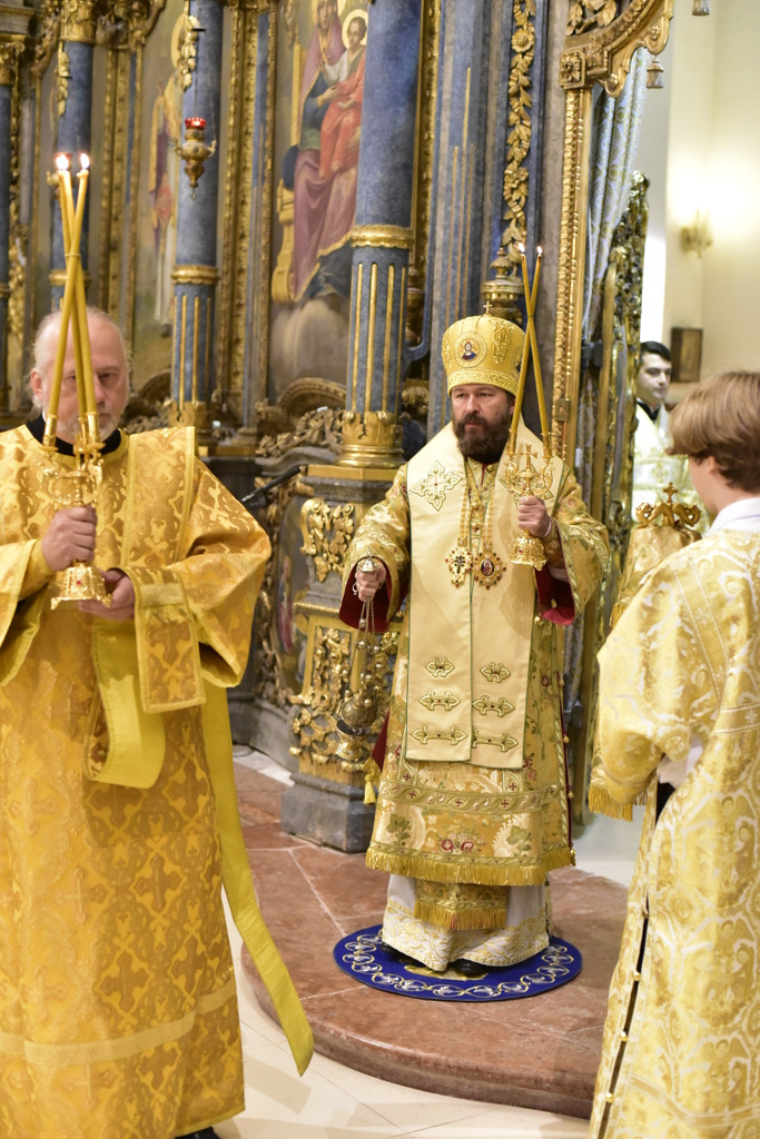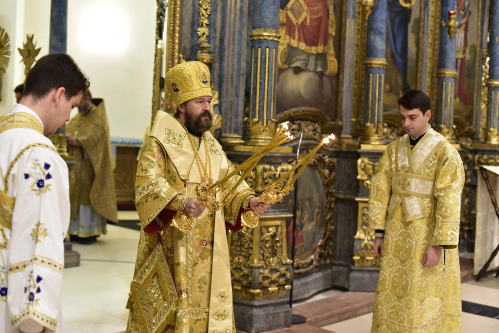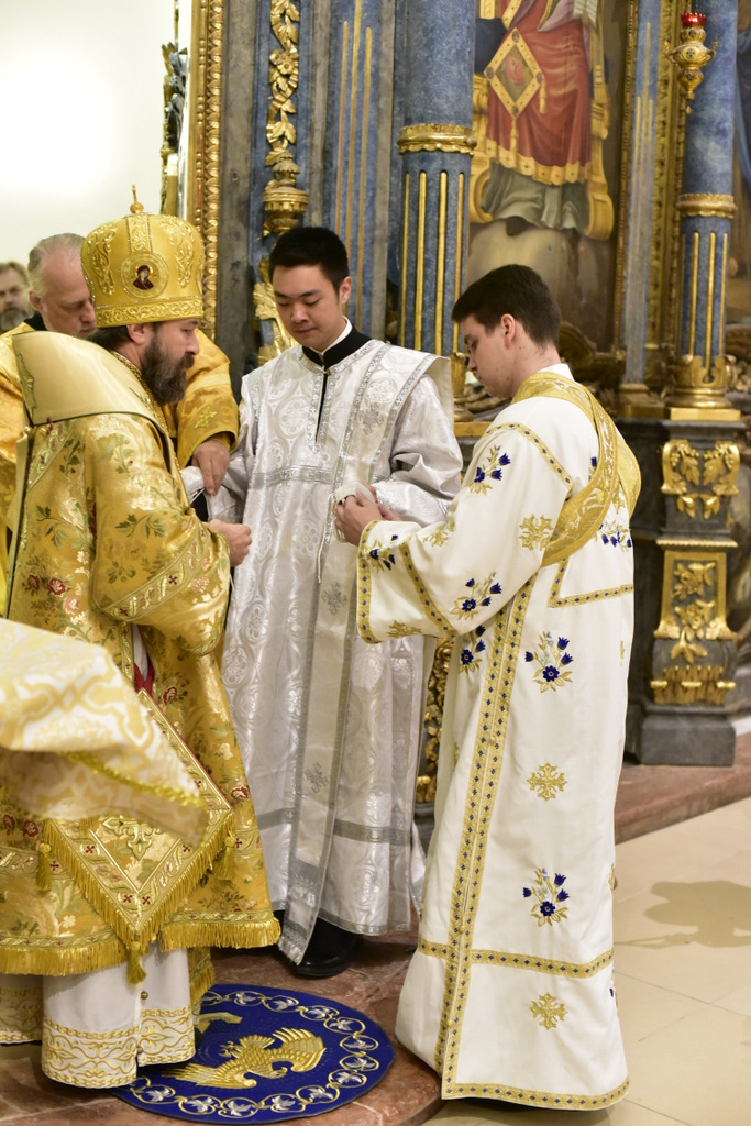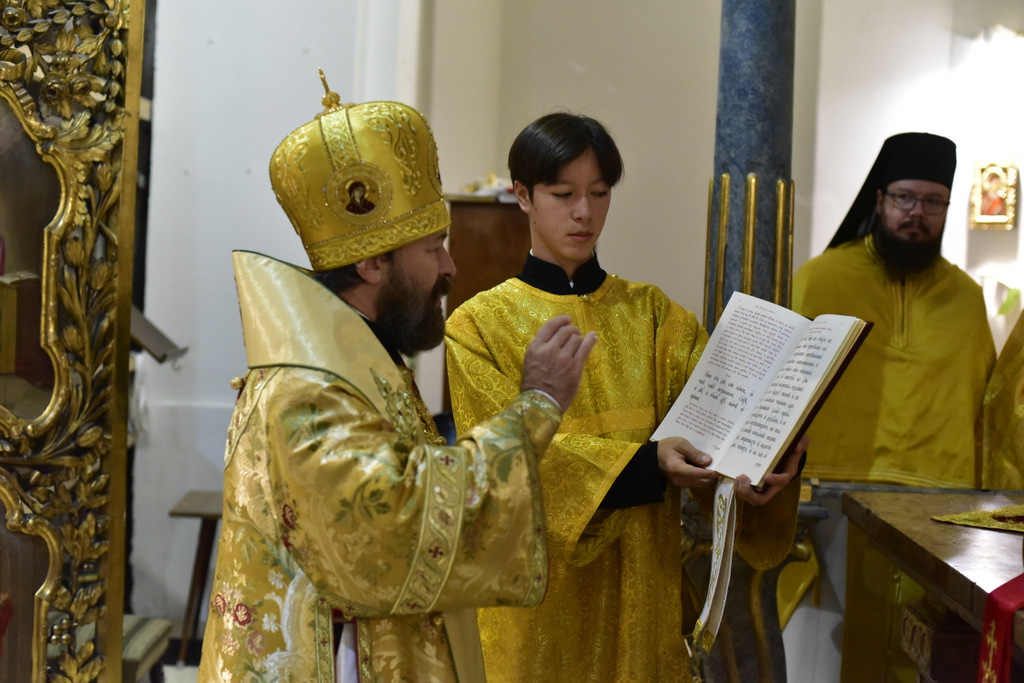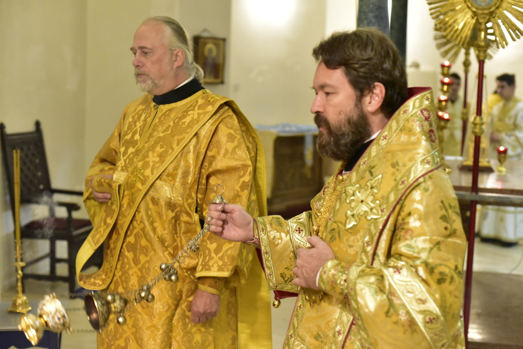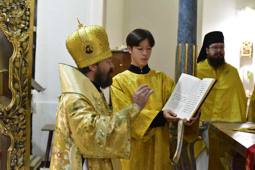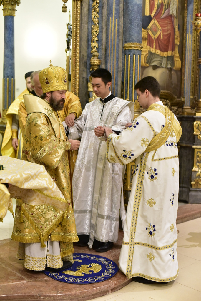 Диакон Владимир провел трижды вокруг Престола новорукоположенного диакона Вячеслава, и поддержал его в первых шагах в священном сане. В завершение воскресного богослужения митрополит Иларион произнес проповедь на тему евангельского чтения, поблагодарил прихожан за совместную молитву, поздравил причастников с принятием Святых Христовых Таин, именинников с днем Ангела и преподал всем свое архипастырское благословение.