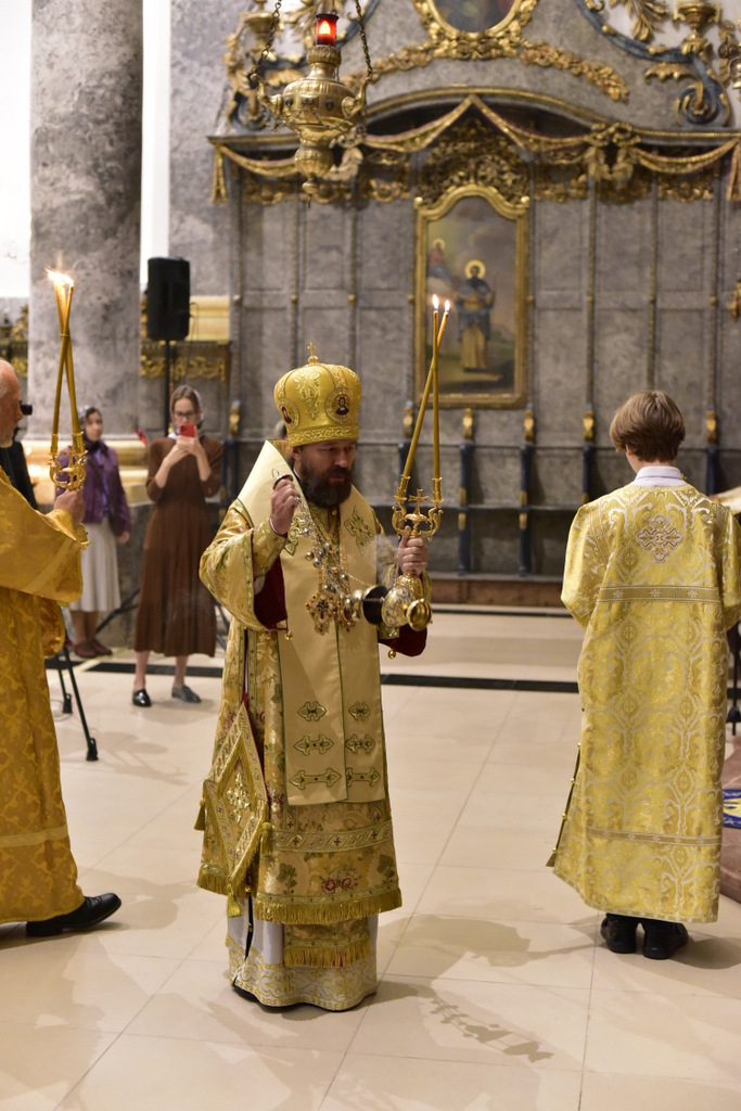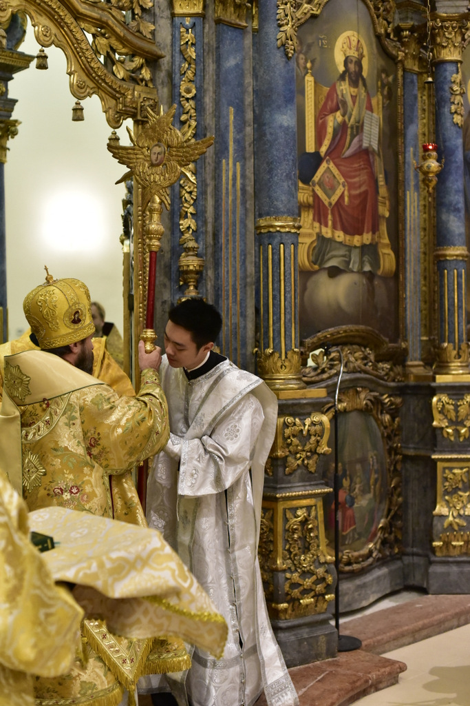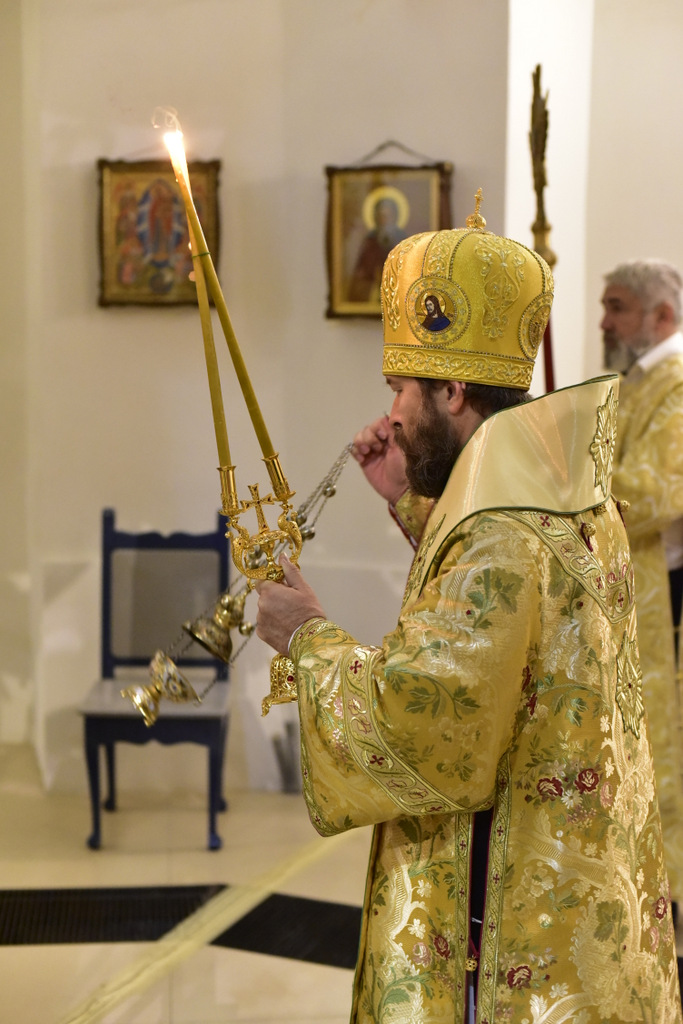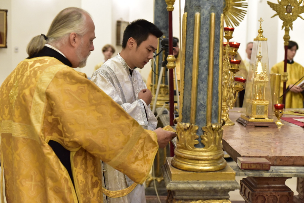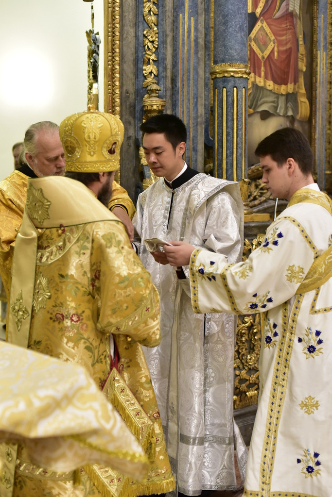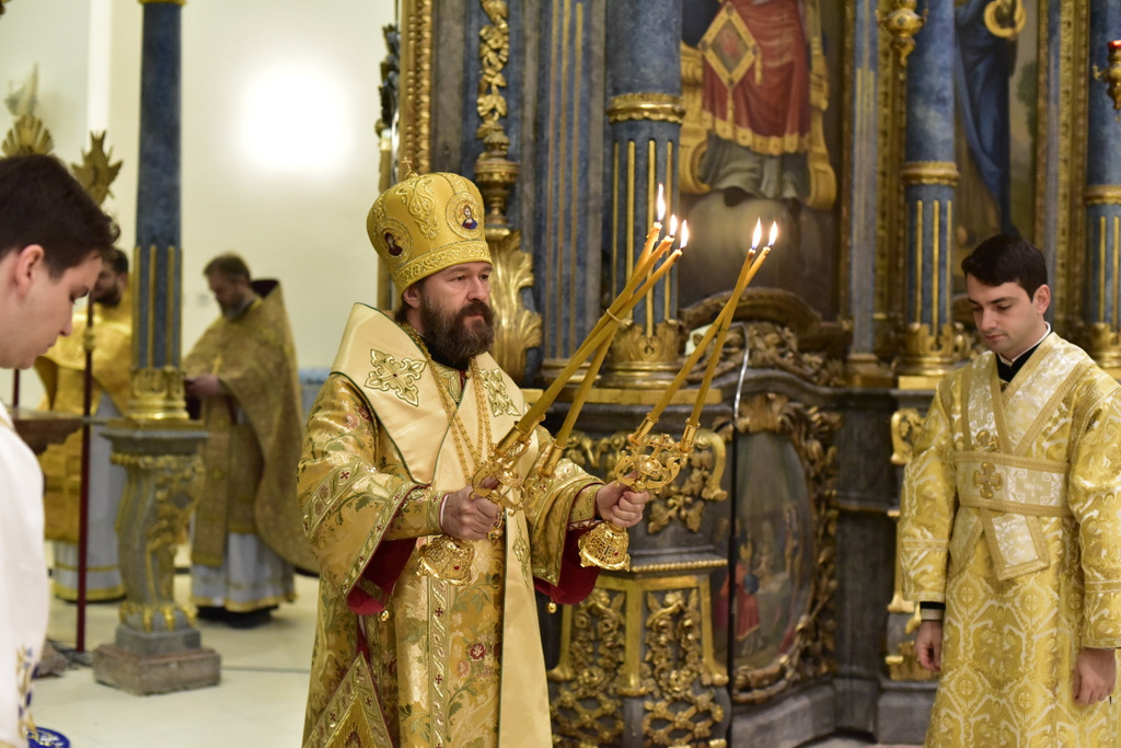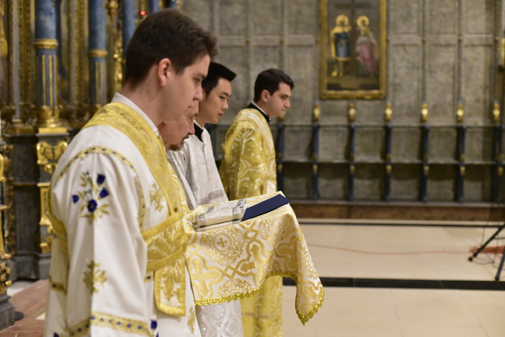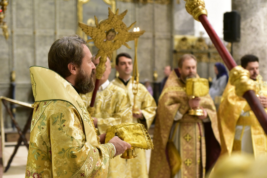 Диакон Владимир провел трижды вокруг Престола новорукоположенного диакона Вячеслава, и поддержал его в первых шагах в священном сане. В завершение воскресного богослужения митрополит Иларион произнес проповедь на тему евангельского чтения, поблагодарил прихожан за совместную молитву, поздравил причастников с принятием Святых Христовых Таин, именинников с днем Ангела и преподал всем свое архипастырское благословение.