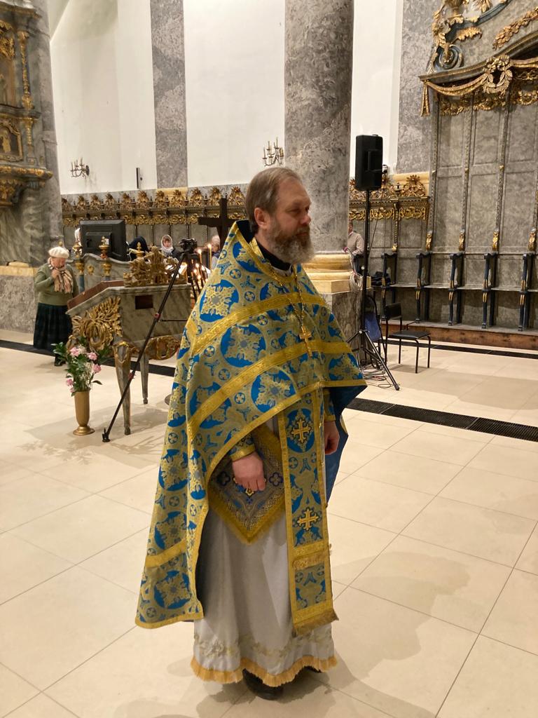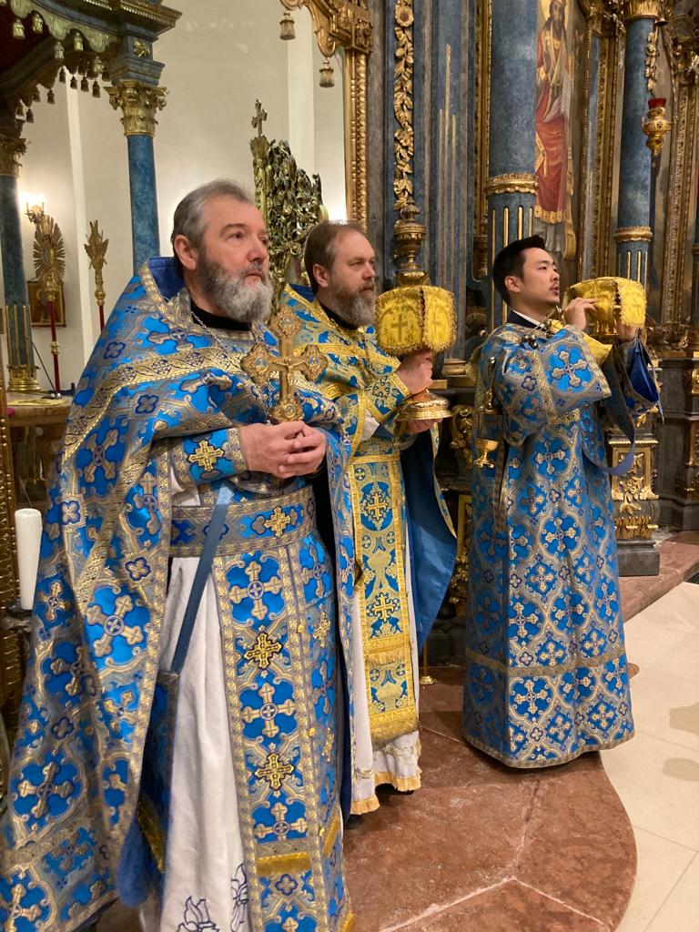 Перед выносом Святых Даров иерей Димитрий обратился к прихожанам с пастырским словом, в котором рассказал молящимся об истории церковного и гражданского праздника. В своей проповеди он отметил о предстательстве Матери Божией за весь христианский род, отметив, что милость и помощь Царицы Небесной неизменно присутствует там, где совершают достойное Ее почитание, где есть теплая к Ней молитва.