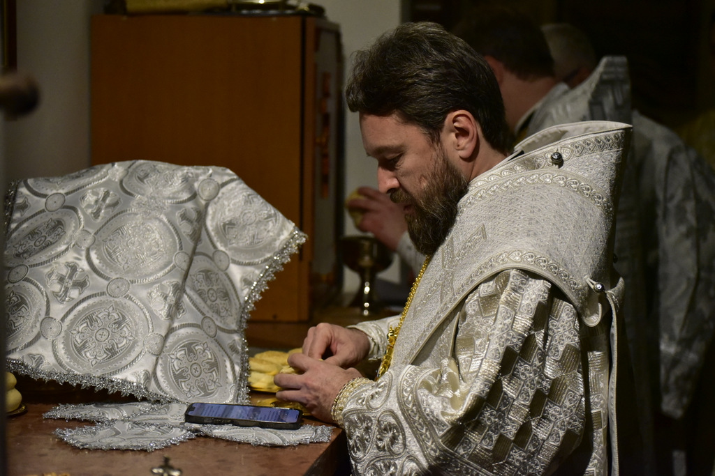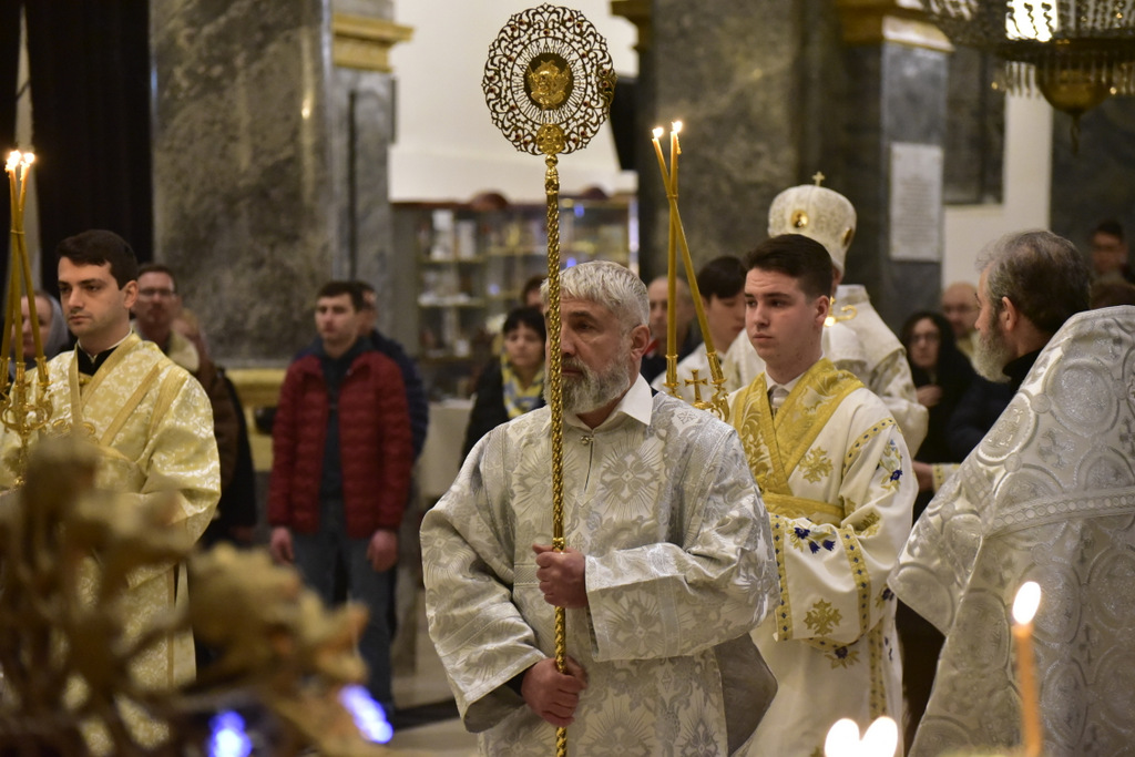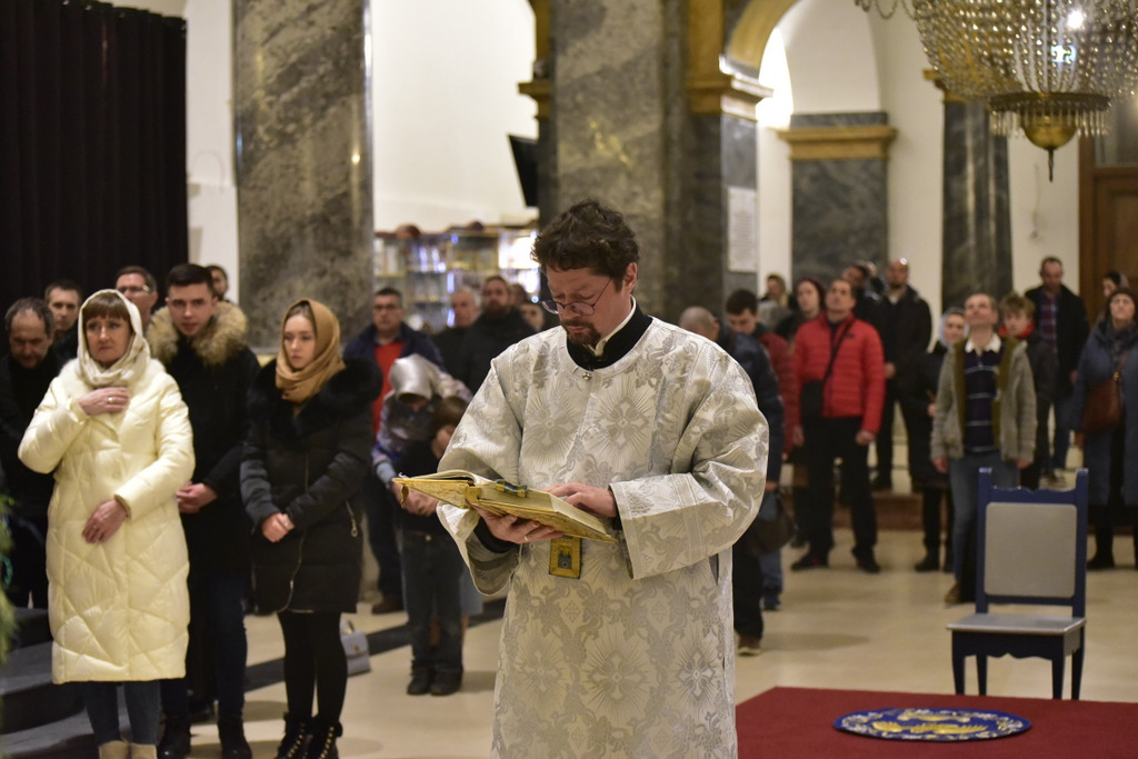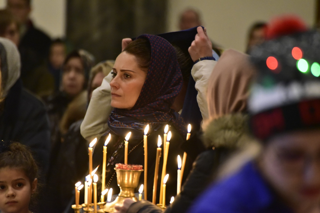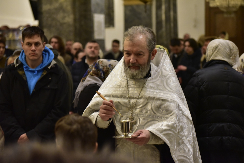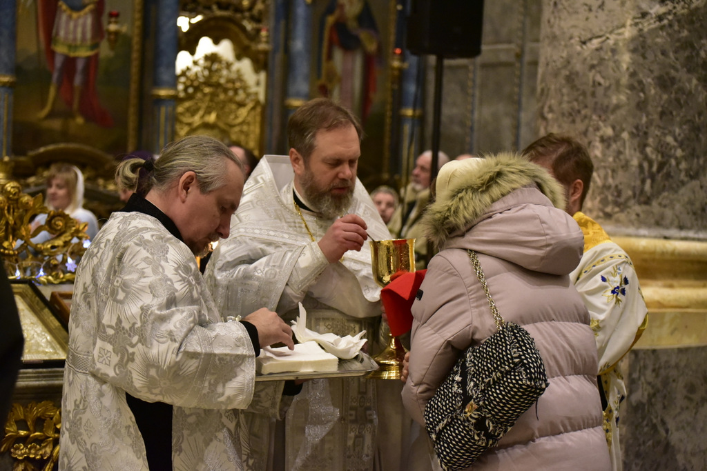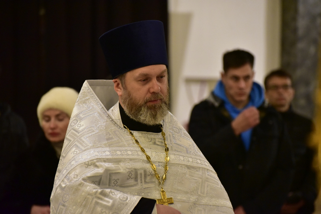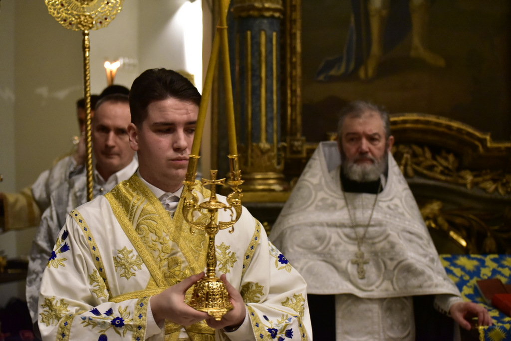 Перед выносом Святых Даров было прочитано Рождественское приветствие Святейшего Патриарха Московского и всея Руси Кирилла, содержащее сердечные поздравления с великим, радостным и мироспасительным праздником Рождества Христова.