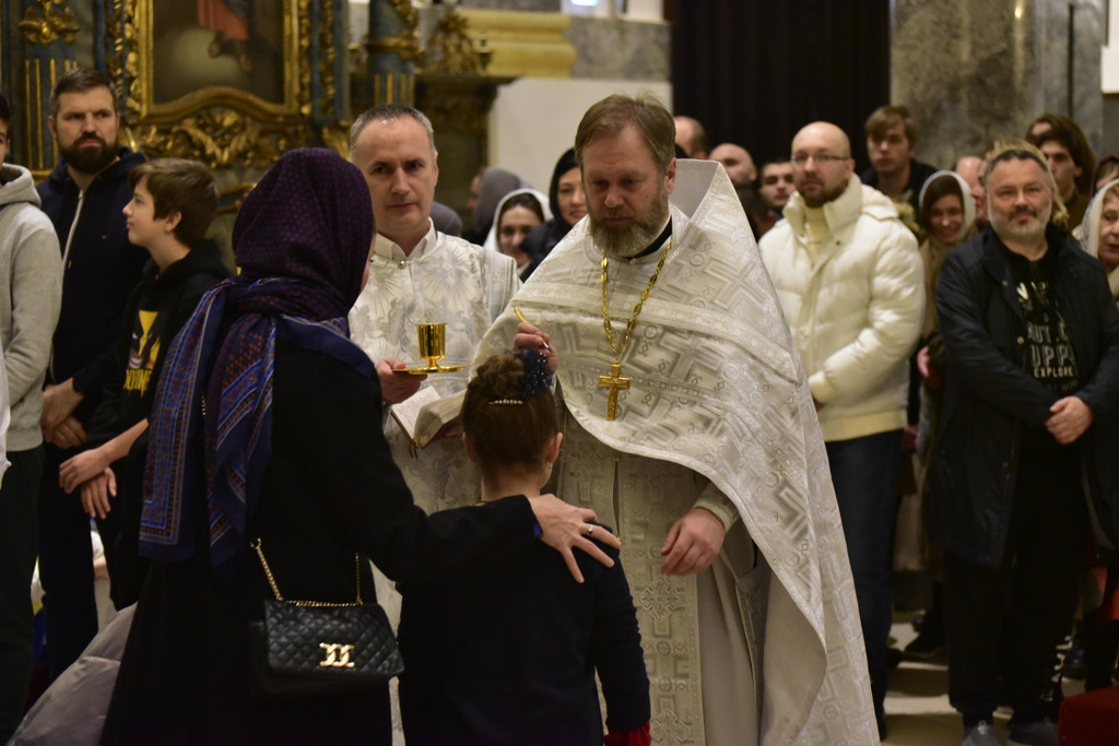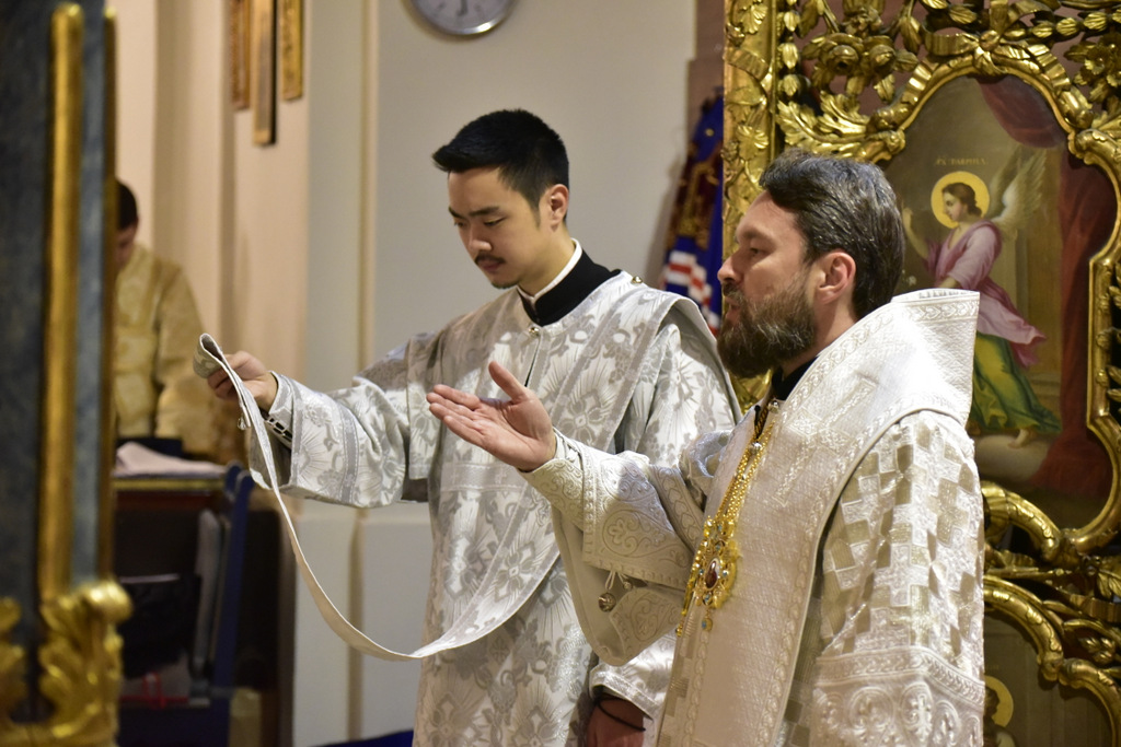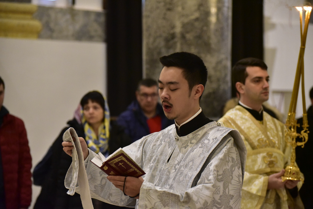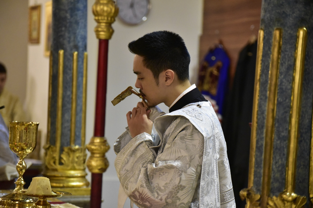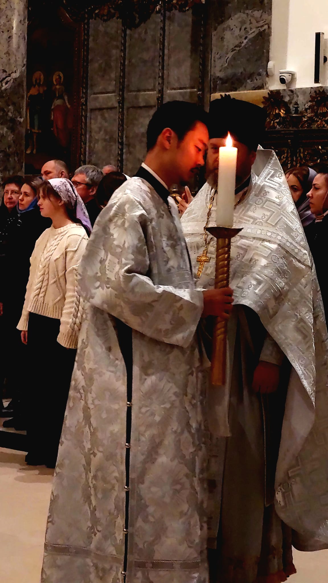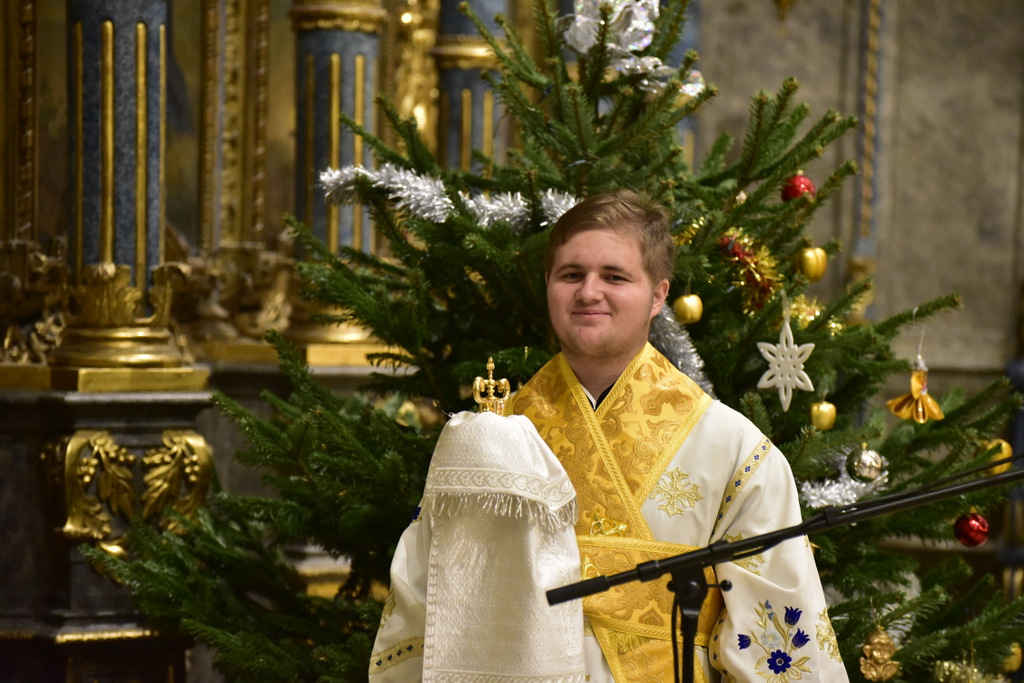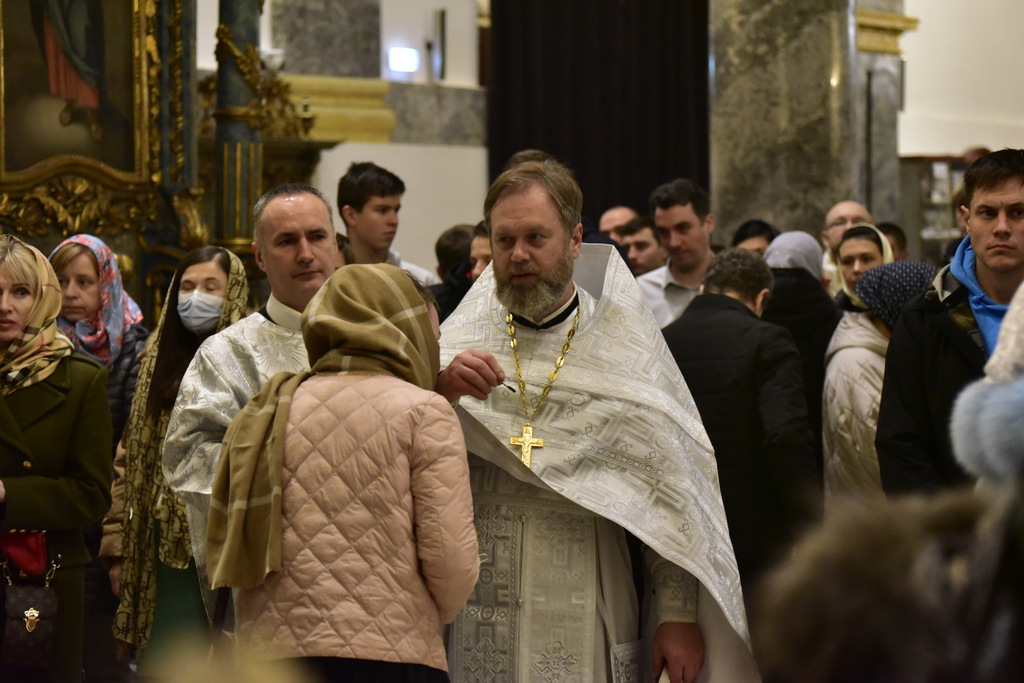 Перед выносом Святых Даров было прочитано Рождественское приветствие Святейшего Патриарха Московского и всея Руси Кирилла, содержащее сердечные поздравления с великим, радостным и мироспасительным праздником Рождества Христова.