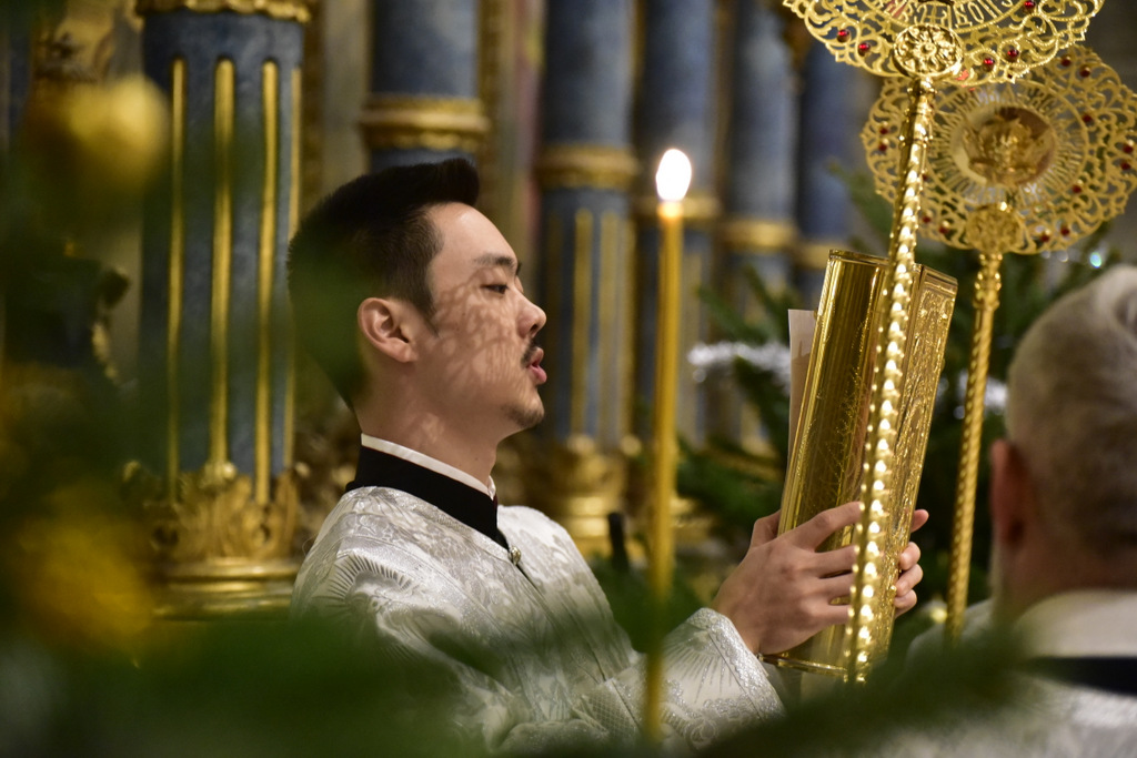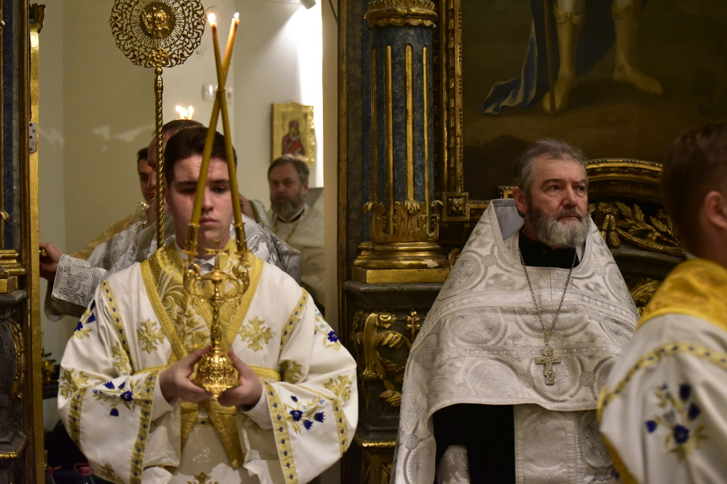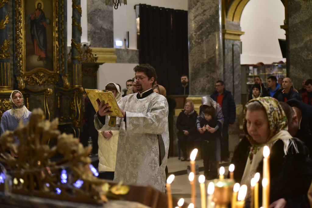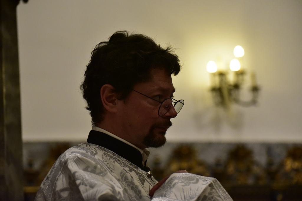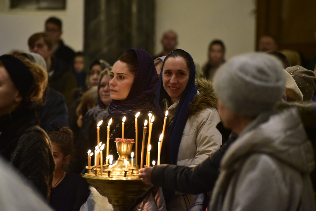 Торжественное ночное богослужение, воспевающее великое событие священной евангельской истории, прославляющее вместе с ним и в нем всю полноту Домостроительства Боговоплощения, началось в 22 часа первой его частью – великим повечерием.