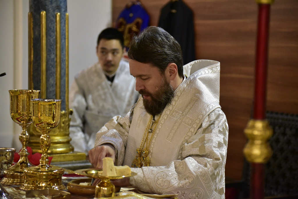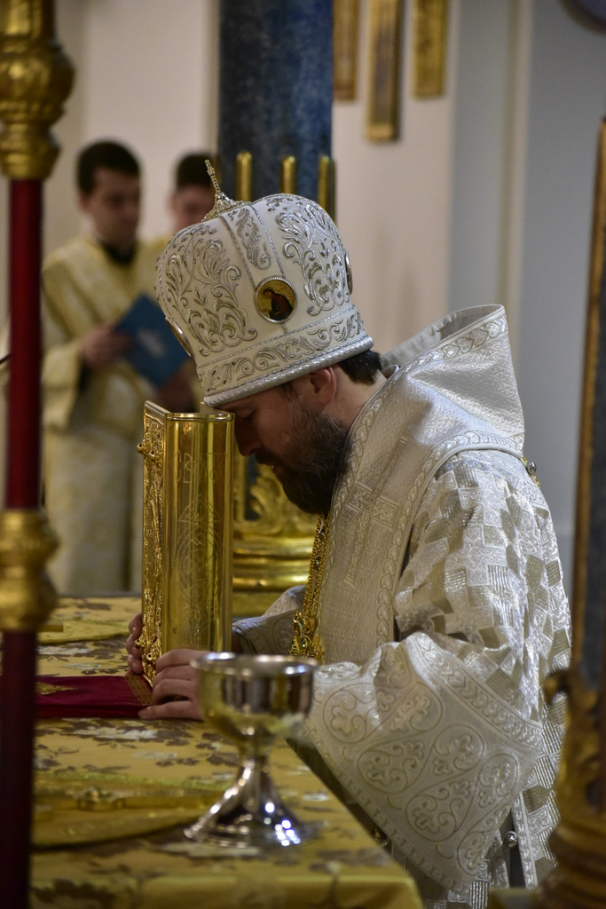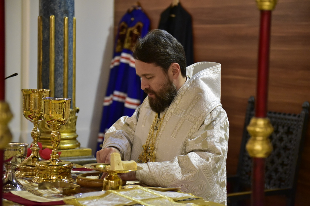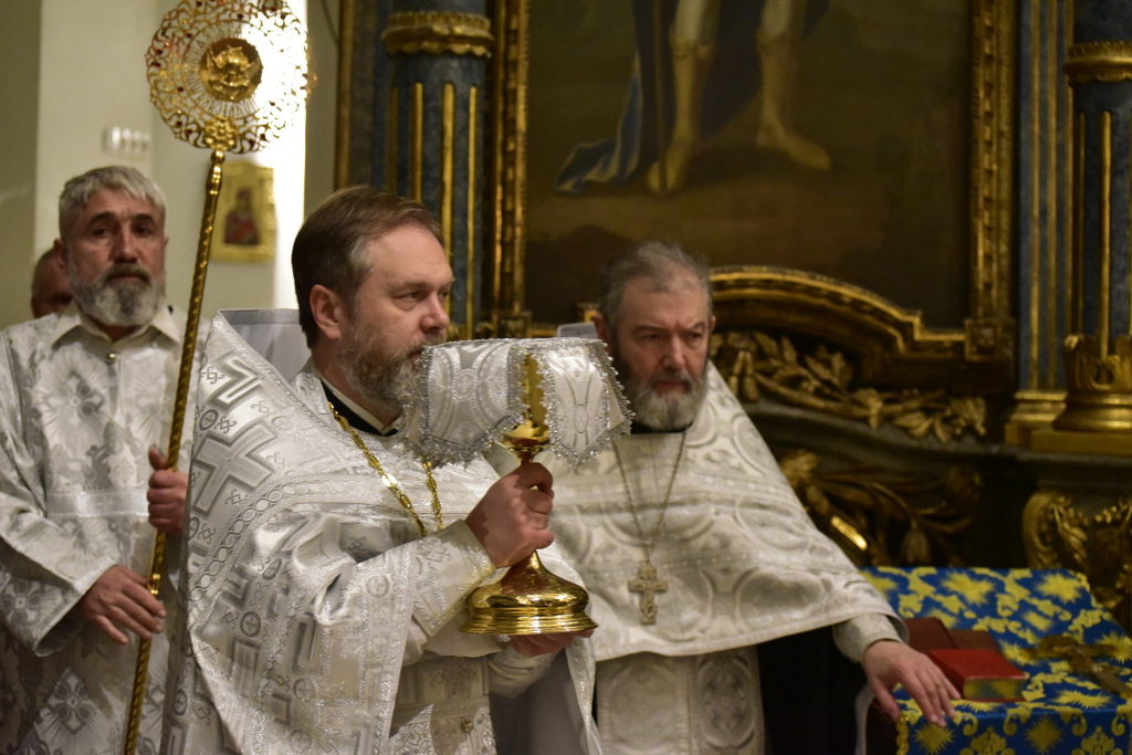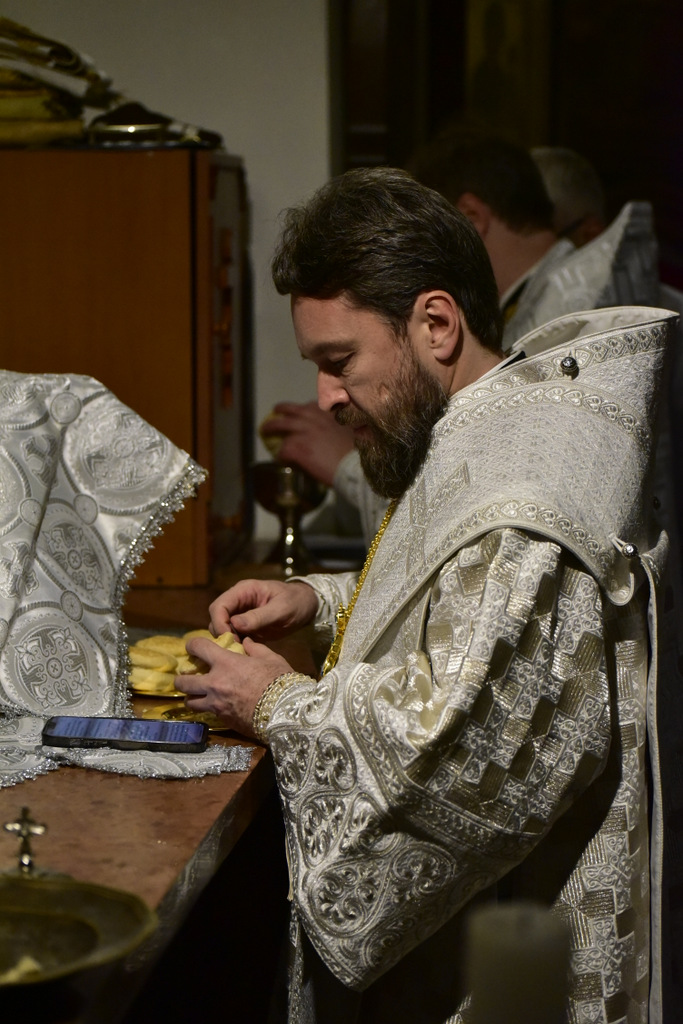 По окончании великого повечерия, исшедшим из алтаря в притвор храма духовенством, было совершено чинопоследование литии, во время которой, Владыка Иларион благословил хлебы, пшеницу, вино и елей.