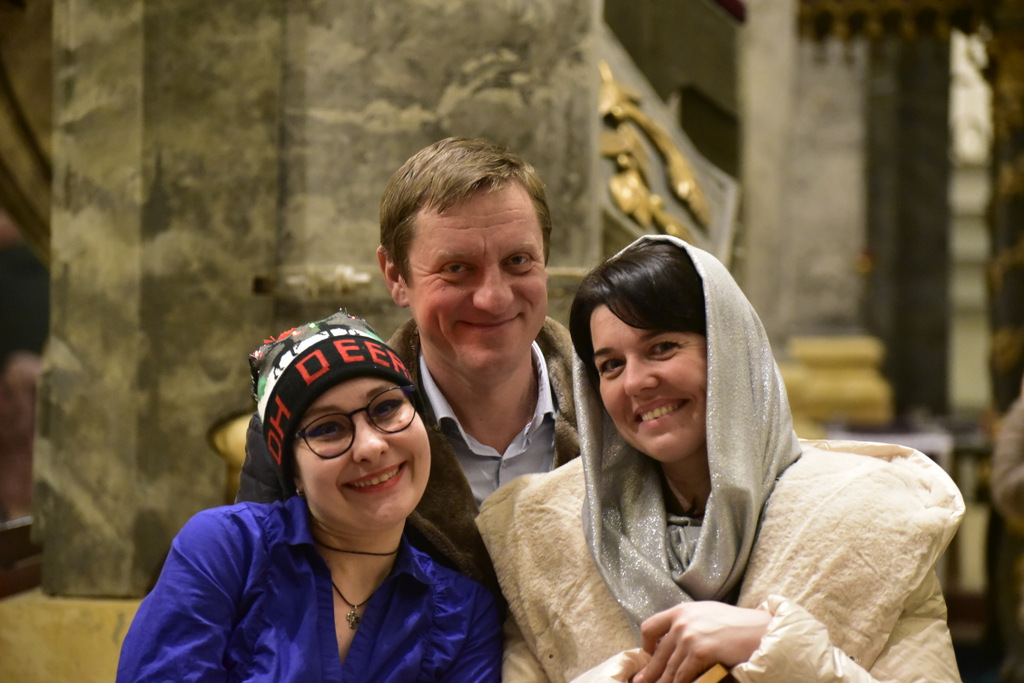 Молитвенные песнопения церковного торжества, своим содержанием свидетельствующие о том радостном чувстве, что охватило с Рождением Господа Иисуса Христа весь мир – и небесный, и земной, исполнили певчие Свято-Троицкого прихода под управлением Евы Гволик.