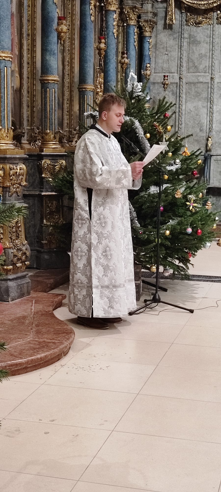Перед выносом Святых Даров было прочитано Рождественское приветствие Святейшего Патриарха Московского и всея Руси Кирилла, содержащее сердечные поздравления с великим, радостным и мироспасительным праздником Рождества Христова, а также Рождественское приветствие правящего архиерея Венгерской епархии митрополита Илариона.